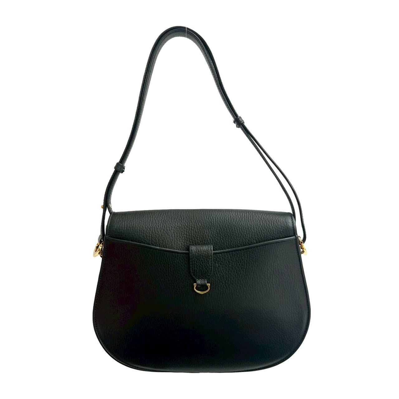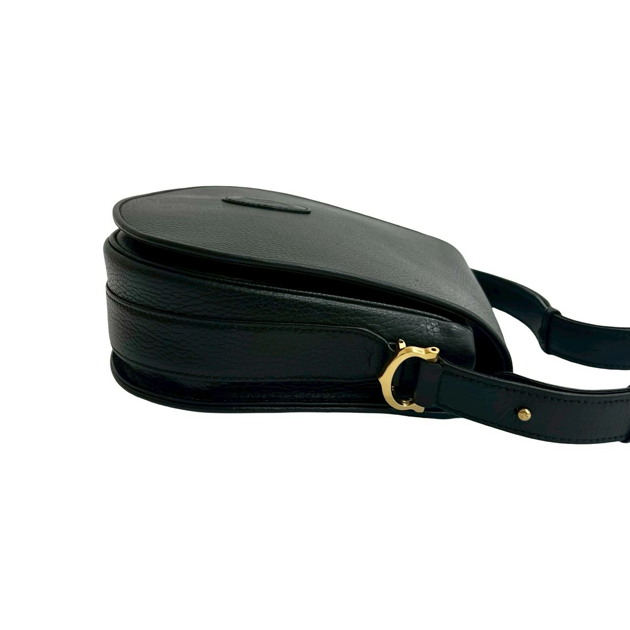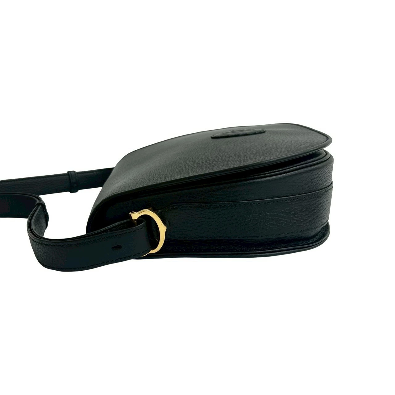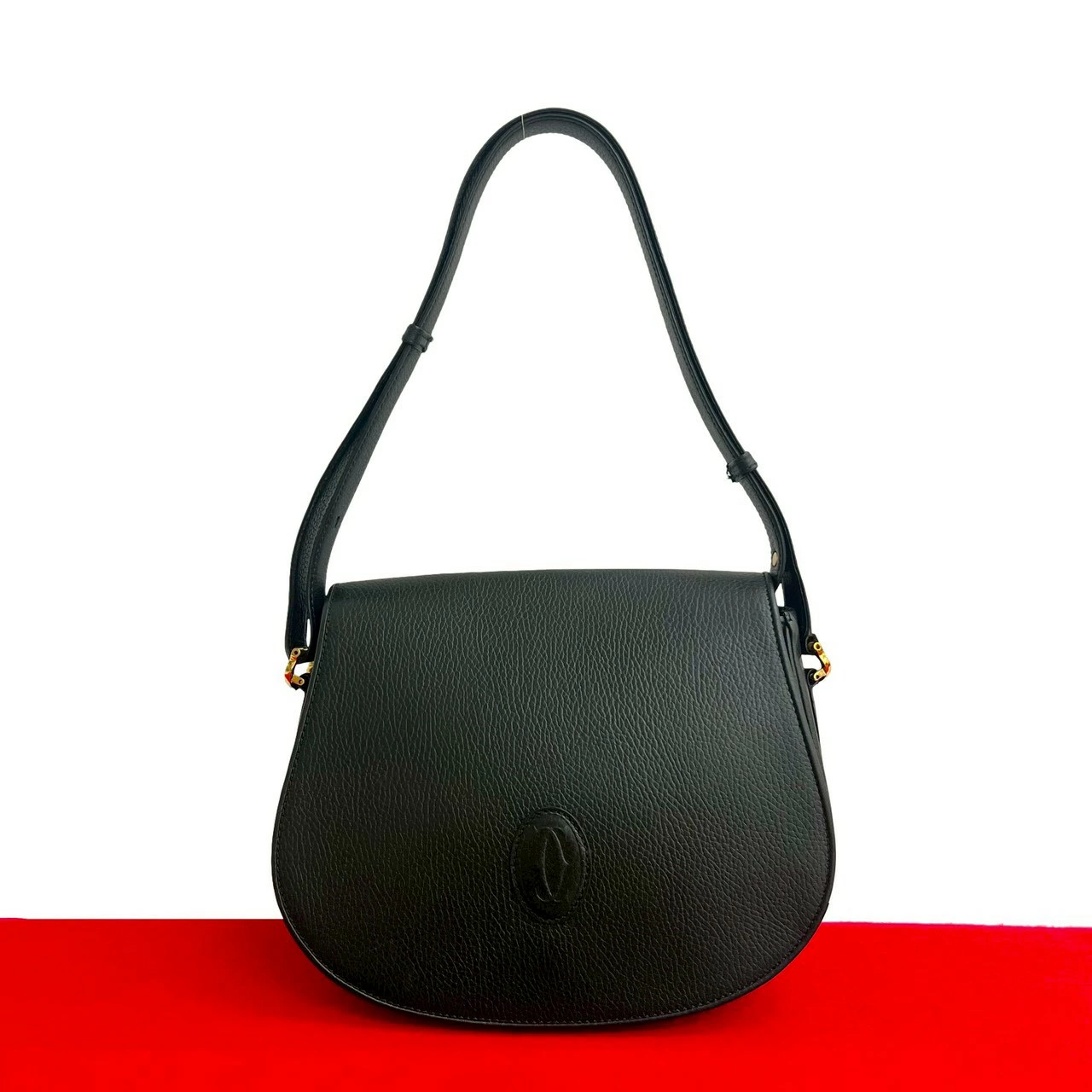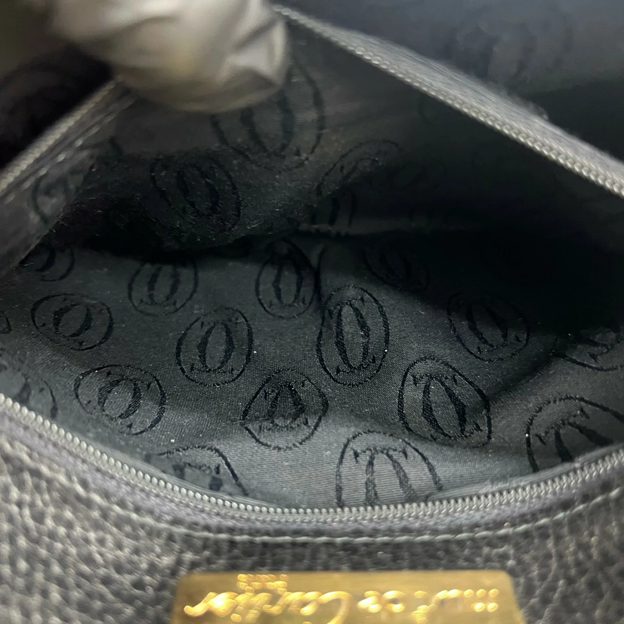 Earn double points! Excellent condition CARTIER Vintage Must Line logo leather shoulder bag/pouch/sacoche in black (52949) [Pre-owned]