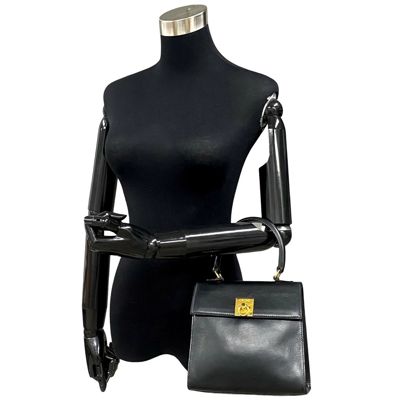 Earn double points! Excellent condition Celine vintage logo ring clasp calfskin leather 2-way handbag/shoulder bag in black (57288) with pouch included. Pre-owned.