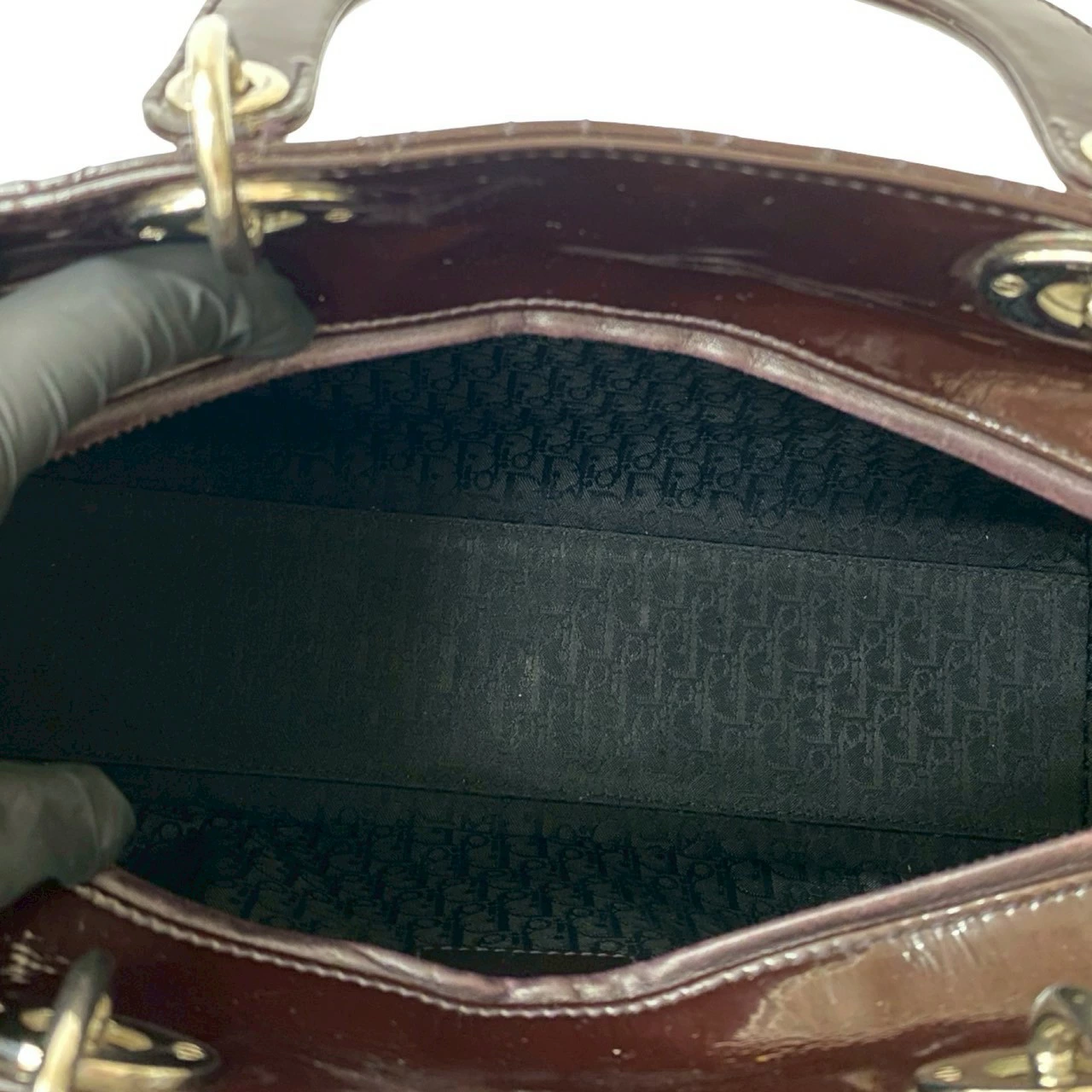 Earn double points! Excellent condition Christian Dior Lady Dior Cannage patent leather 2-way handbag/shoulder bag, brown, 25058 (pre-owned).