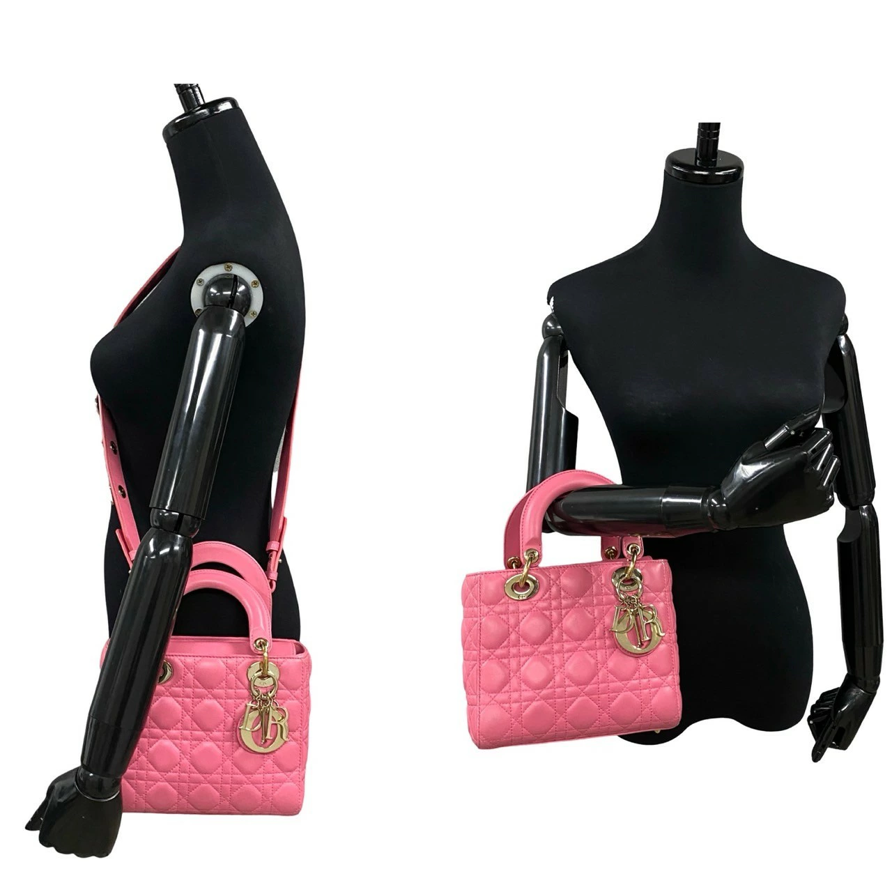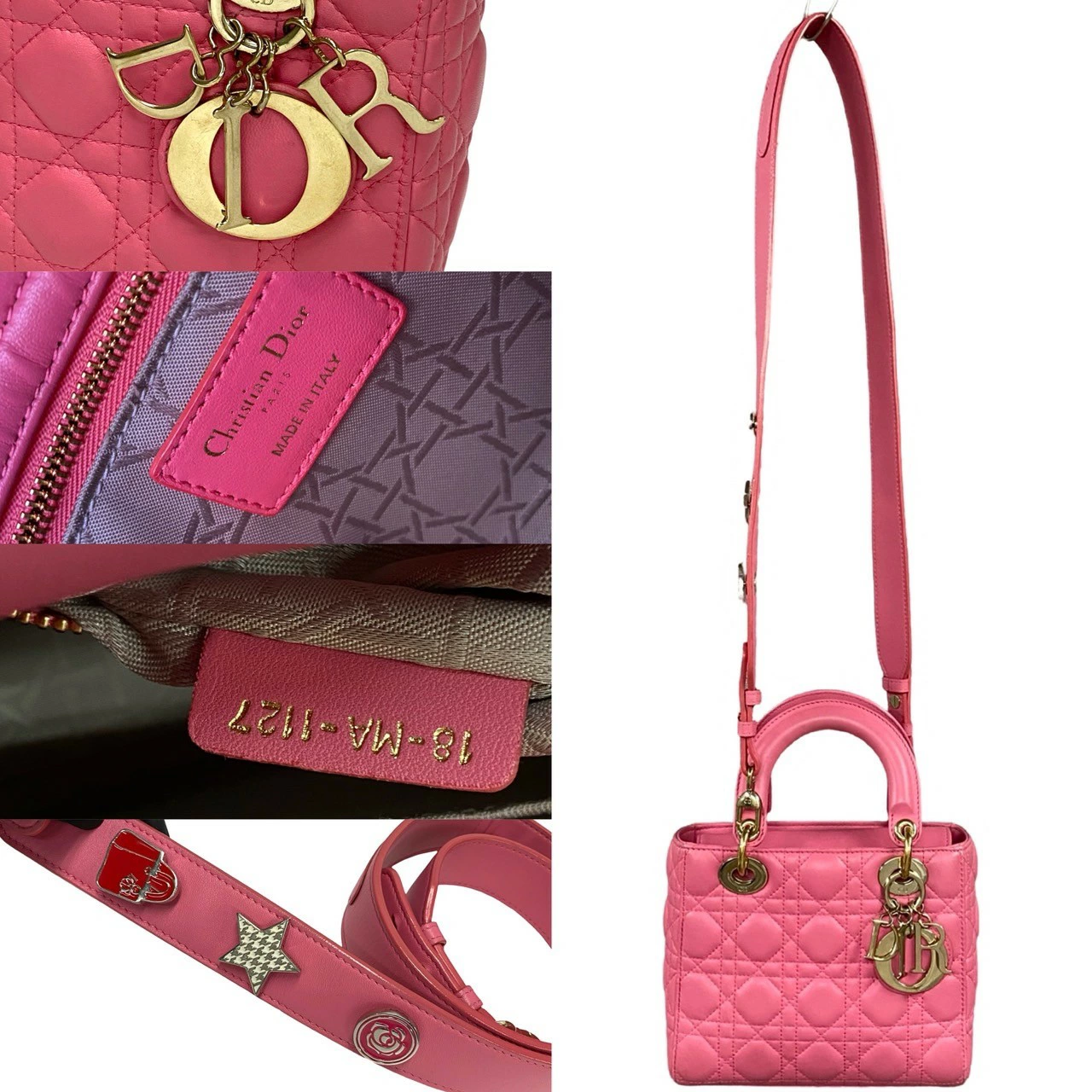 Earn double points! Excellent condition Christian Dior My Lady Dior lambskin leather 2-way handbag/shoulder bag, pink, 35711 (pre-owned).