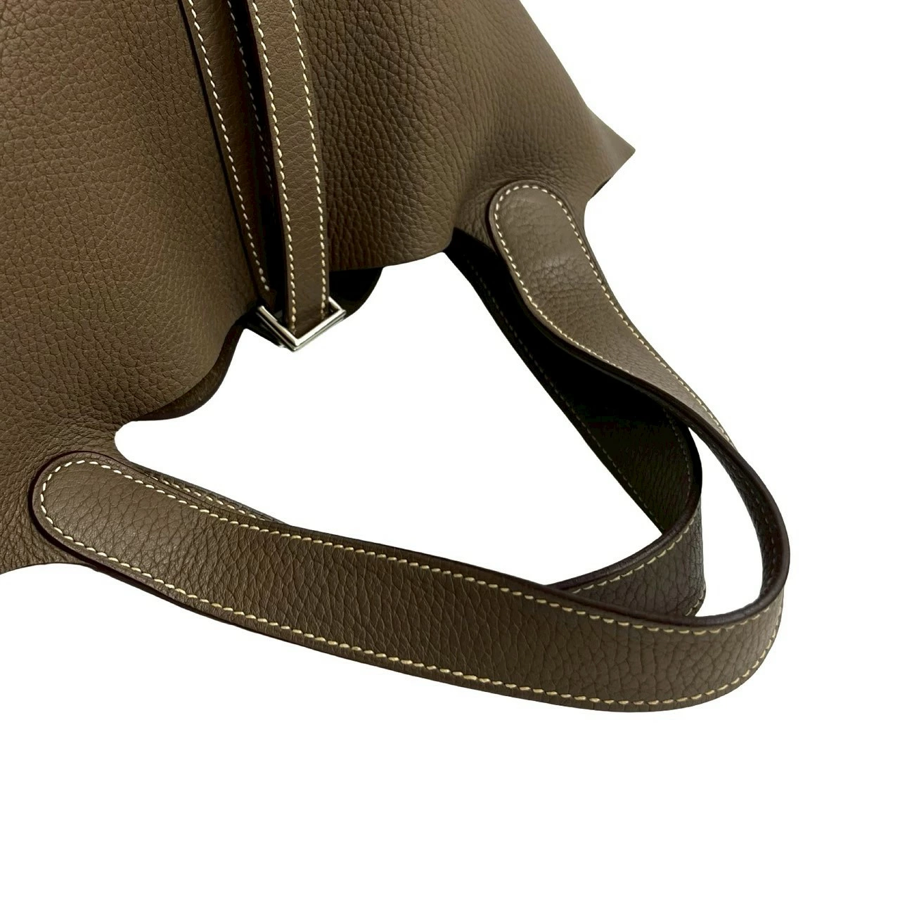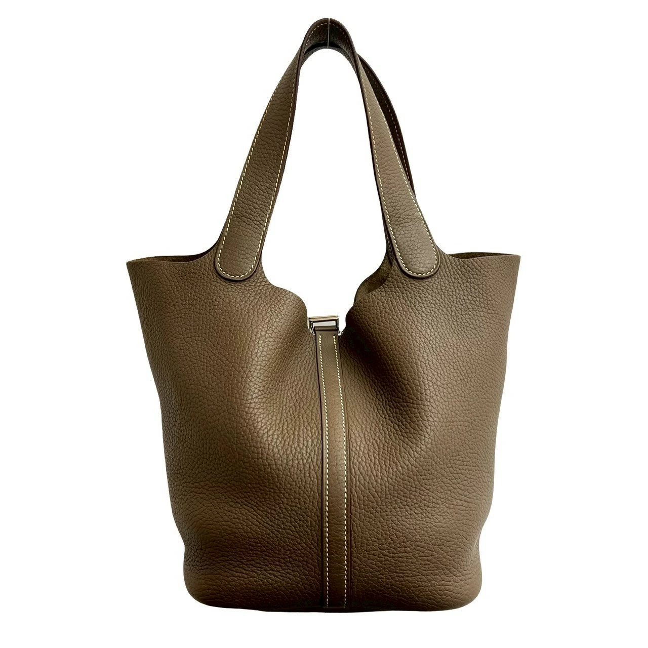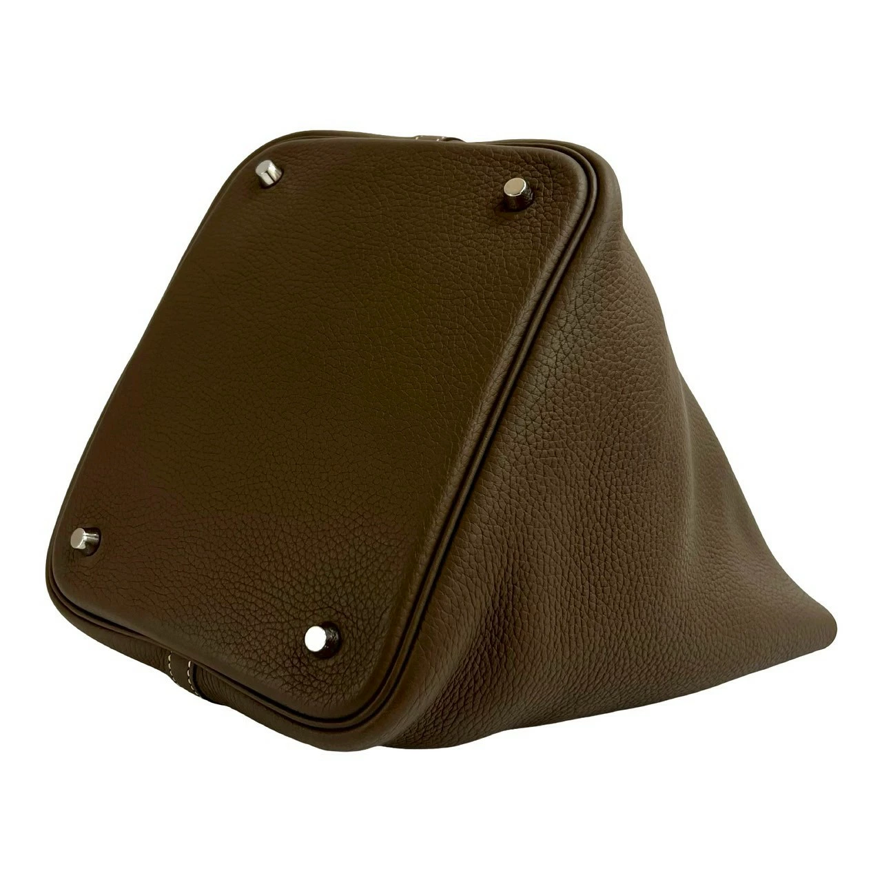 Earn double points! Excellent condition, keyed, X-stamped HERMES Picotin Lock MM Taurillon Clemence leather handbag/mini tote bag, brown, 42782 (pre-owned).