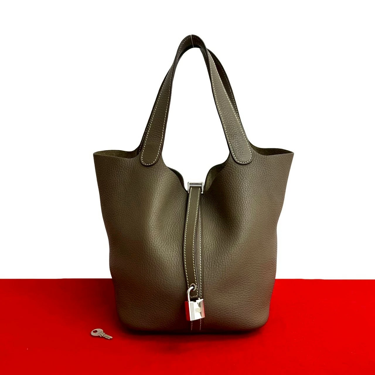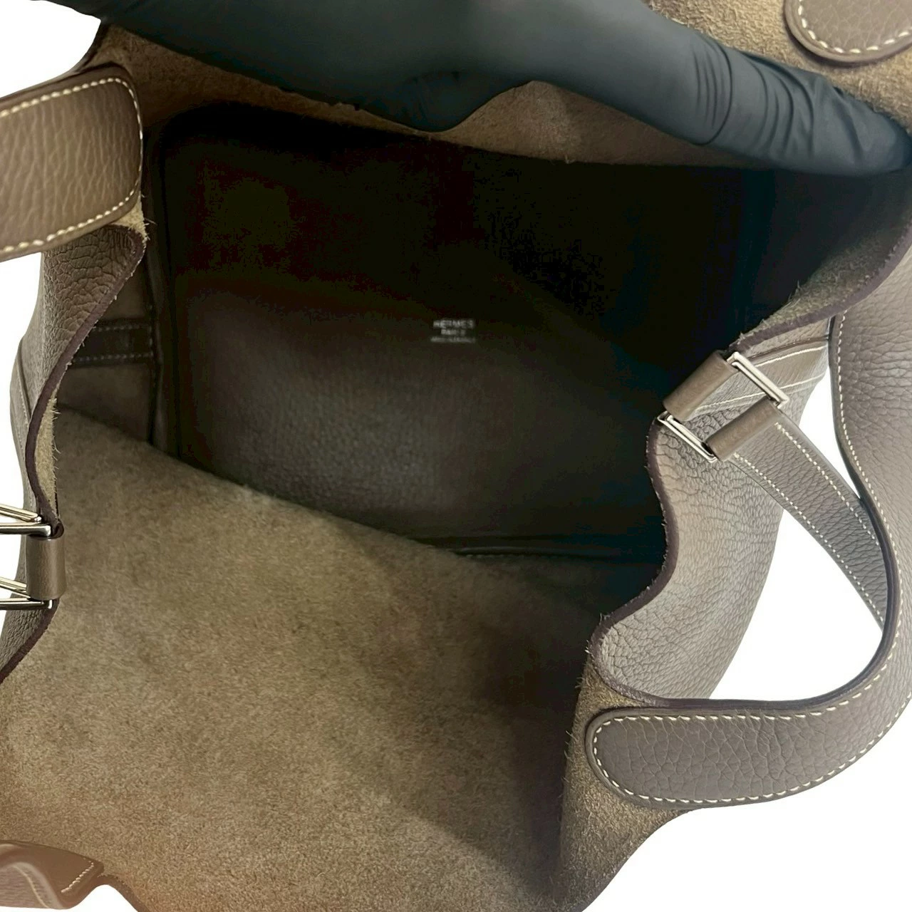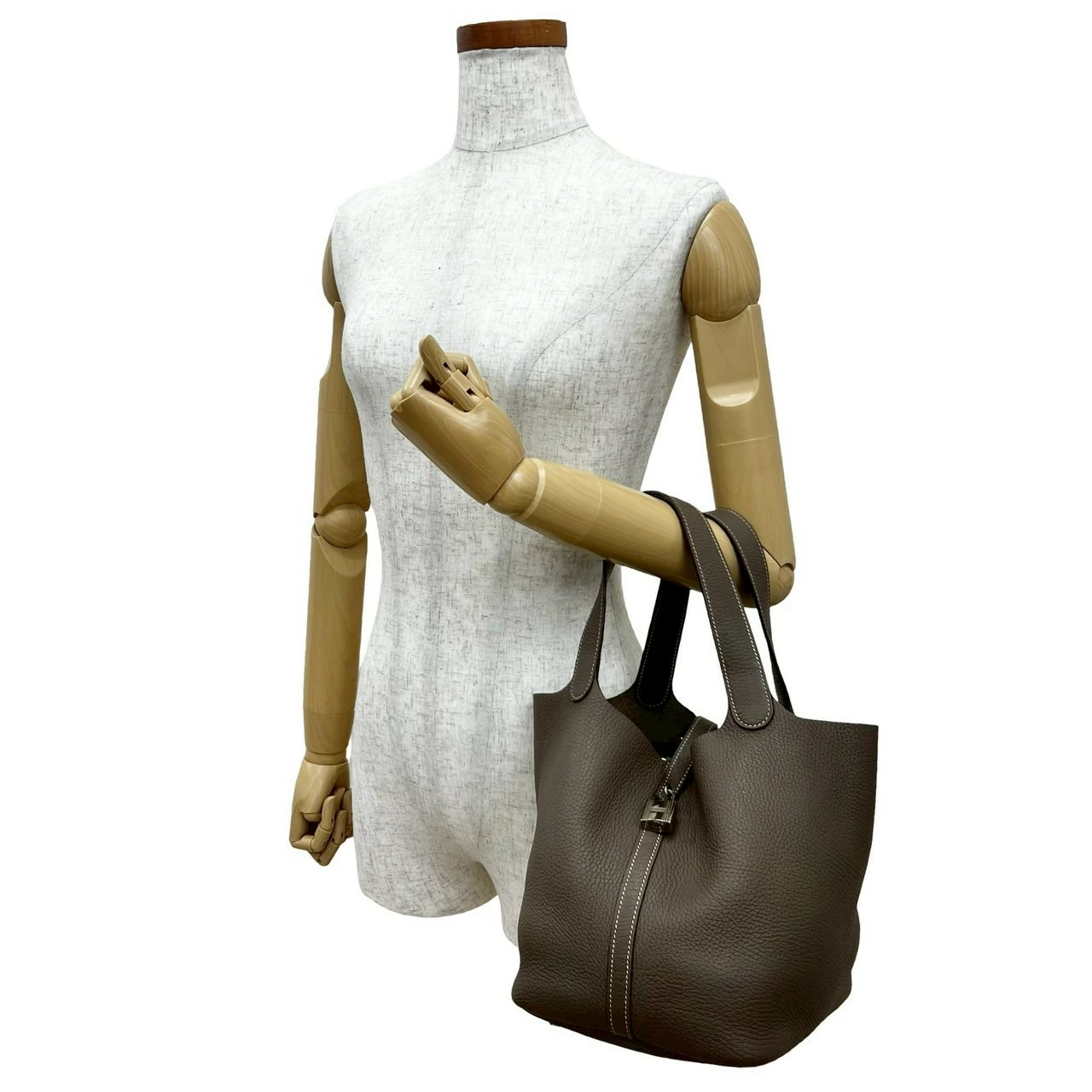 Earn double points! Excellent condition, keyed, X-stamped HERMES Picotin Lock MM Taurillon Clemence leather handbag/mini tote bag, brown, 42782 (pre-owned).