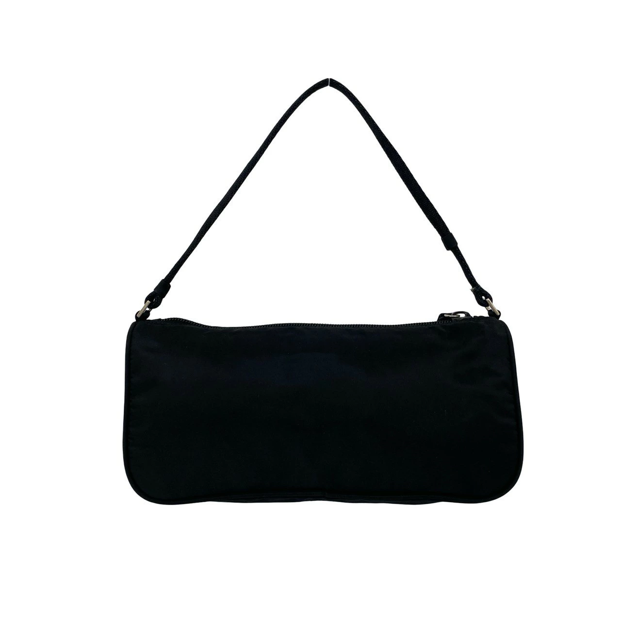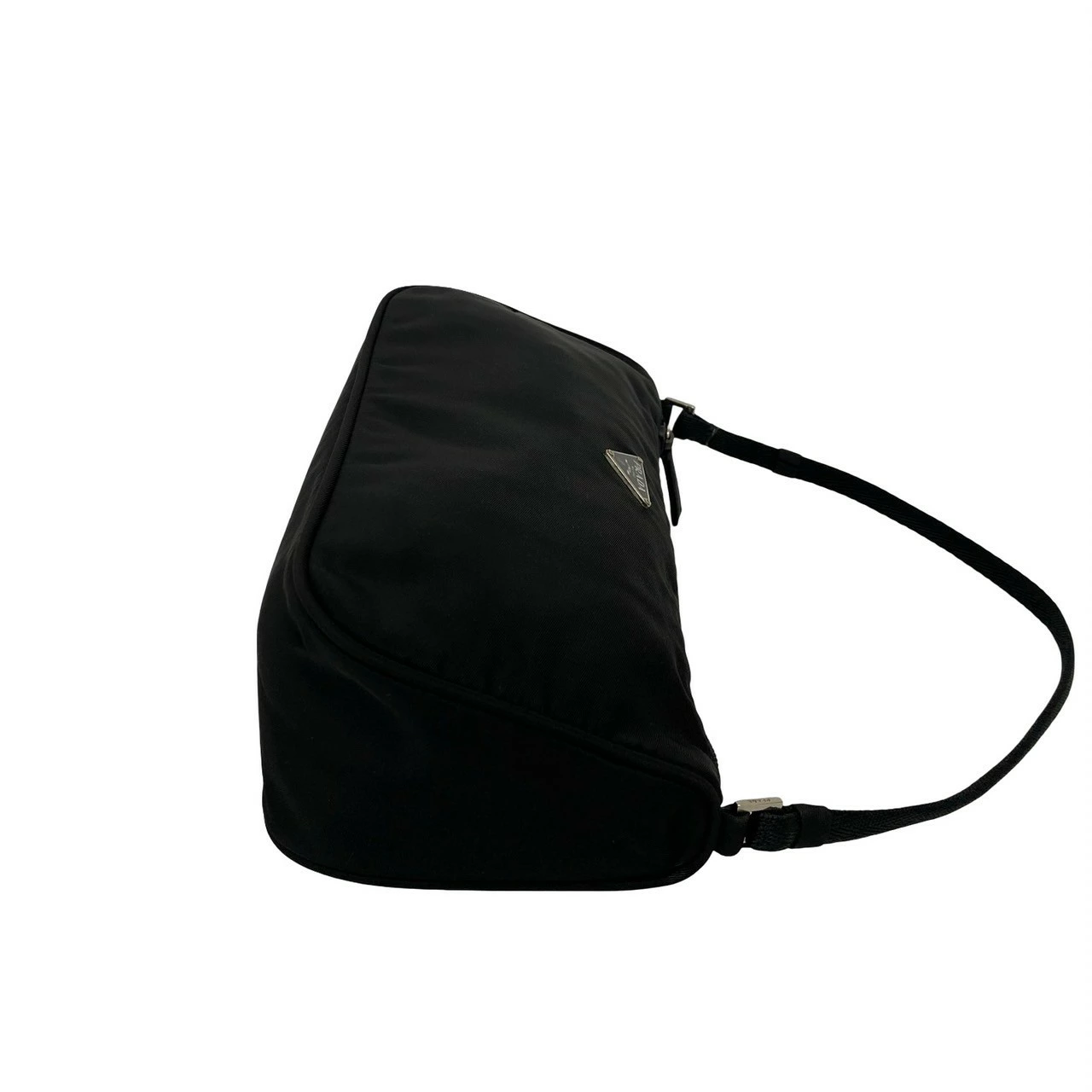 Earn double points! Excellent condition PRADA Tessuto nylon handbag with triangle logo and plated hardware. Mini one-shoulder bag, pouch, and accessory compartment in black. 25290. [Pre-owned]