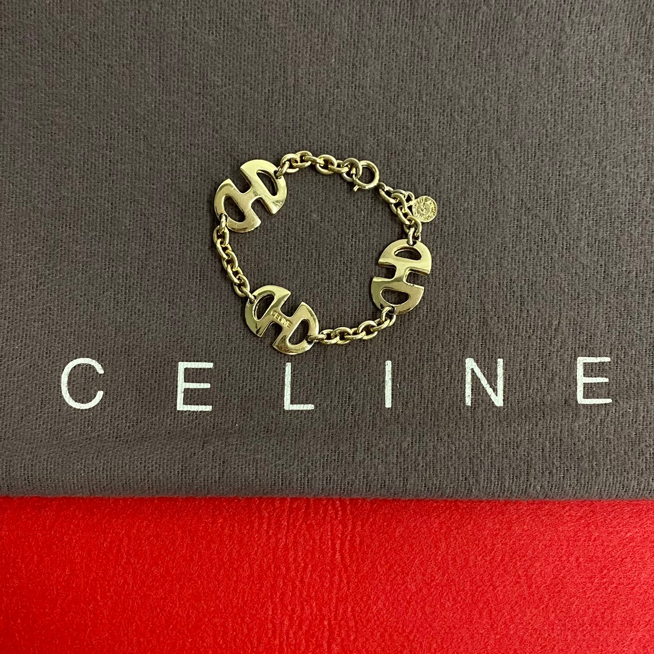 Earn double points! Excellent condition, rare Celine vintage logo motif GP bracelet/bangle, gold, women's, 65996 (pre-owned).