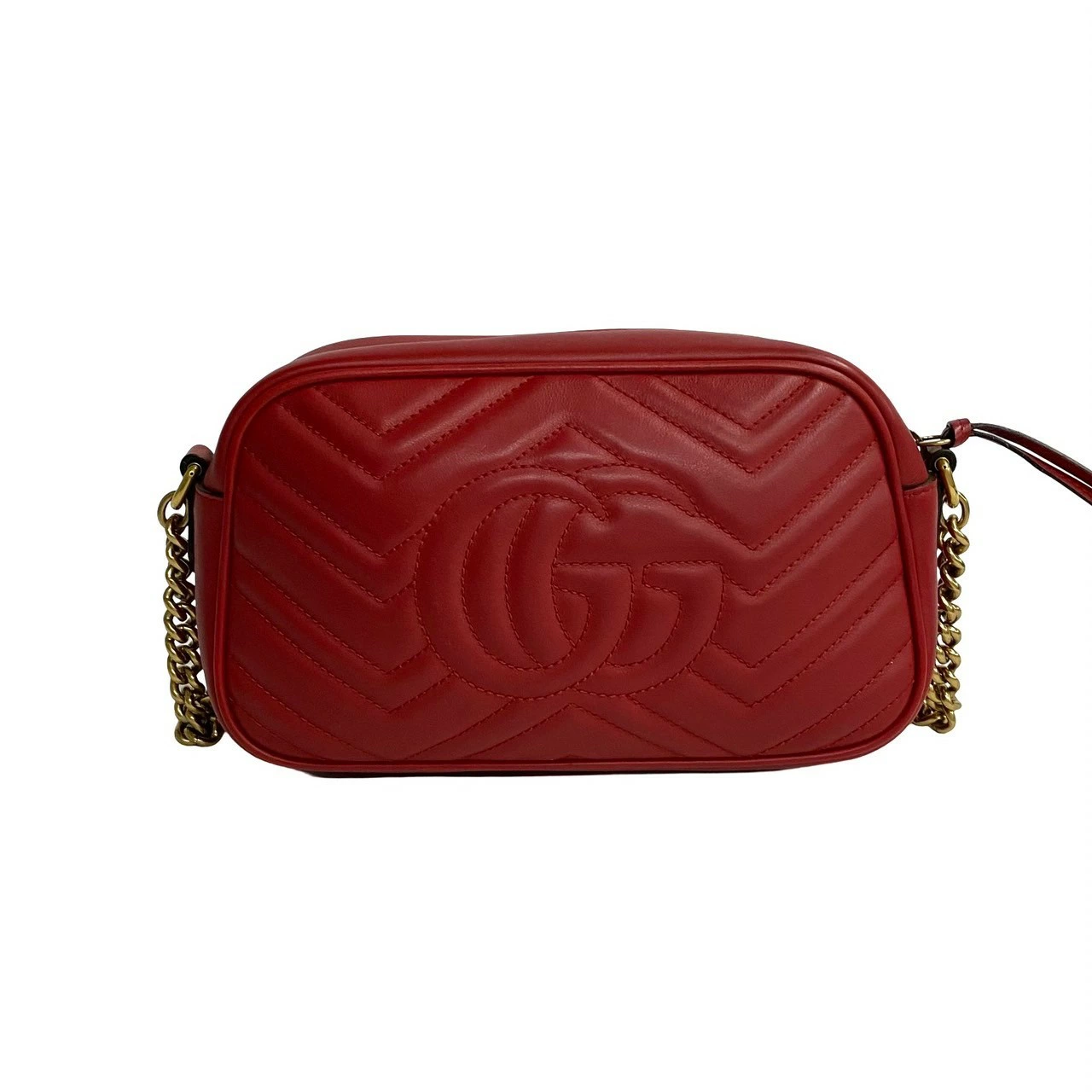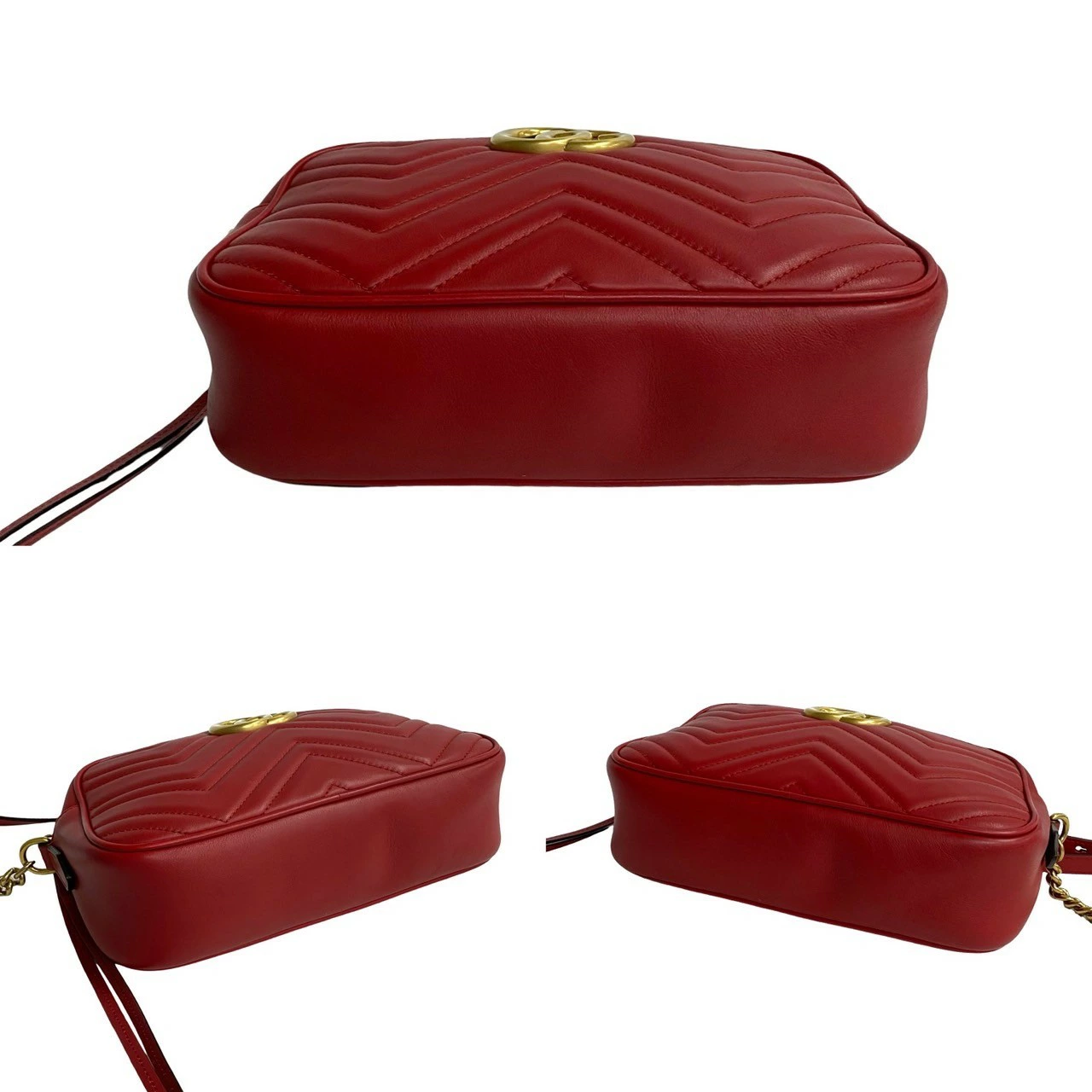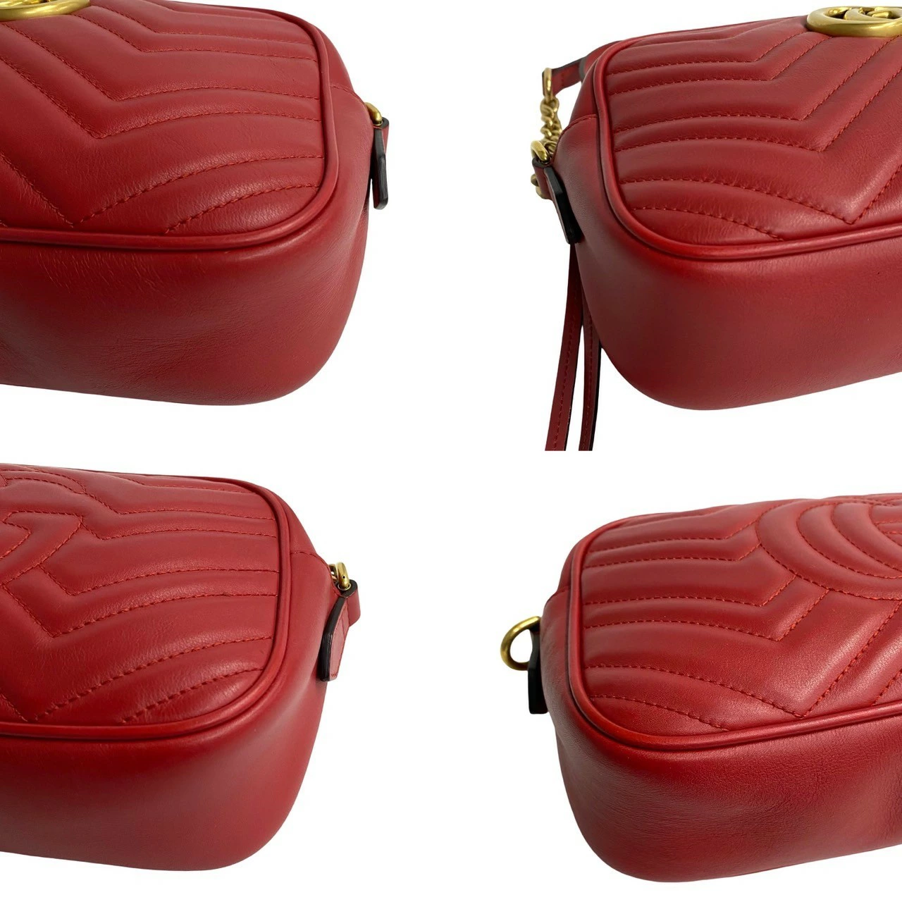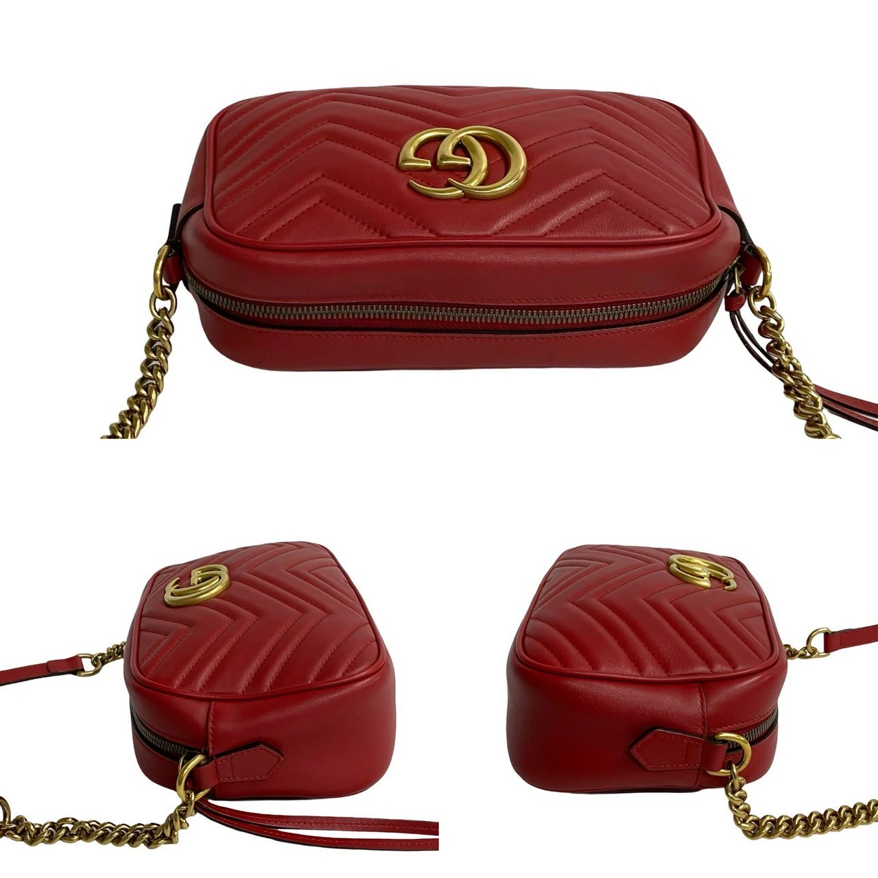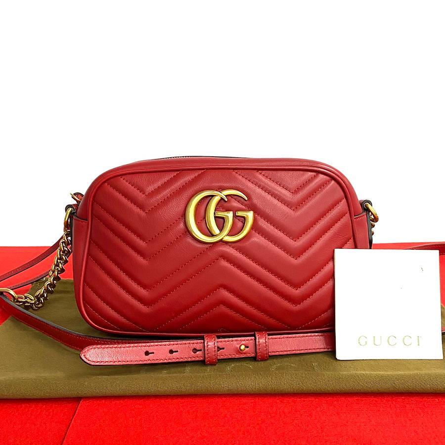 Earn double points! Excellent condition, rare GUCCI GG Marmont logo hardware, genuine leather, chain, mini shoulder bag, pochette, red, size 67--1 [pre-owned]