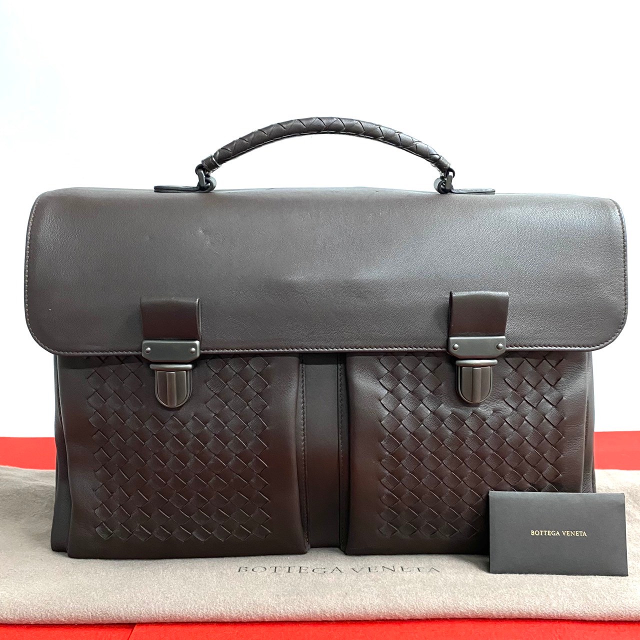 Earn double points! Excellent condition, rare item with bag. BOTTEGA VENETA Intrecciato leather business bag, brown, model 447-2. Pre-owned.
