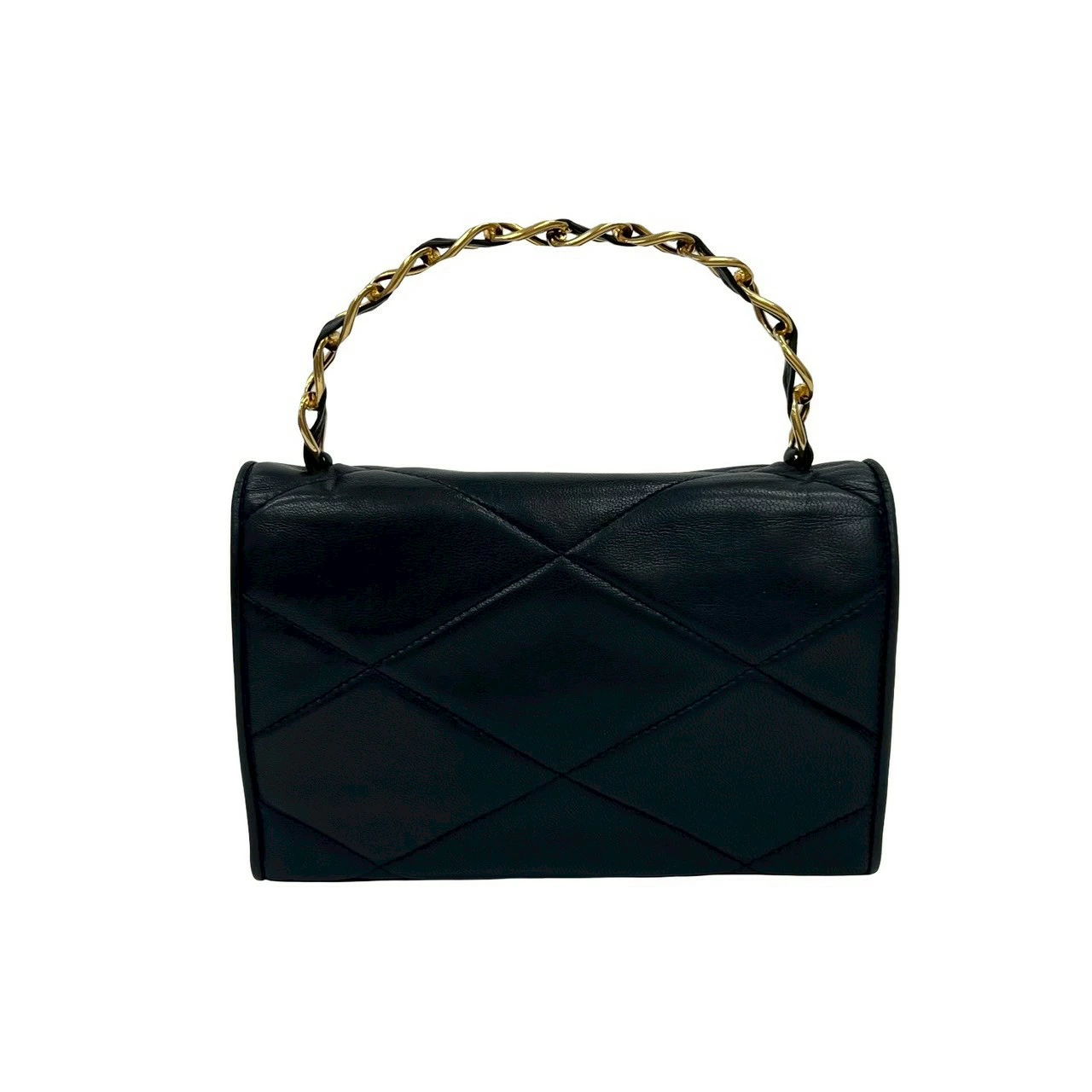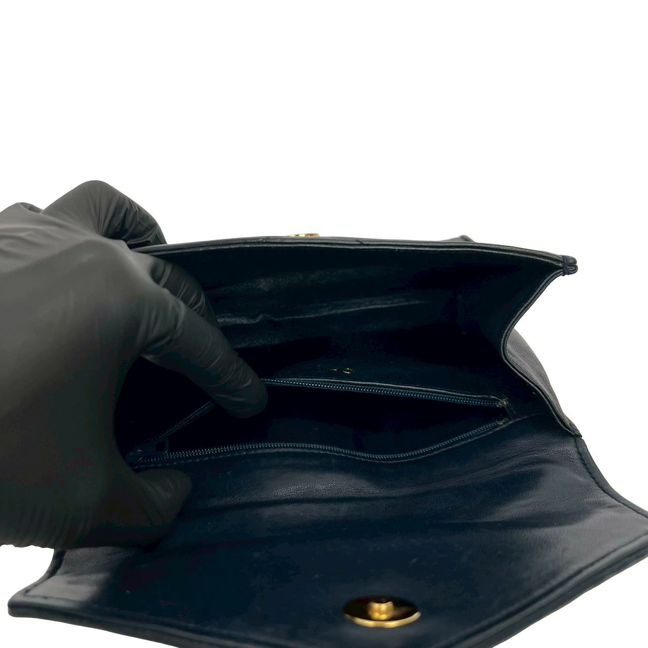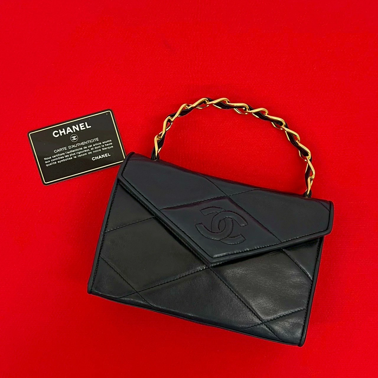 Earn double points! Excellent condition, rare item with card and sticker. Pre-owned CHANEL Matelasse Coco Mark lambskin mini handbag in navy blue (44483).