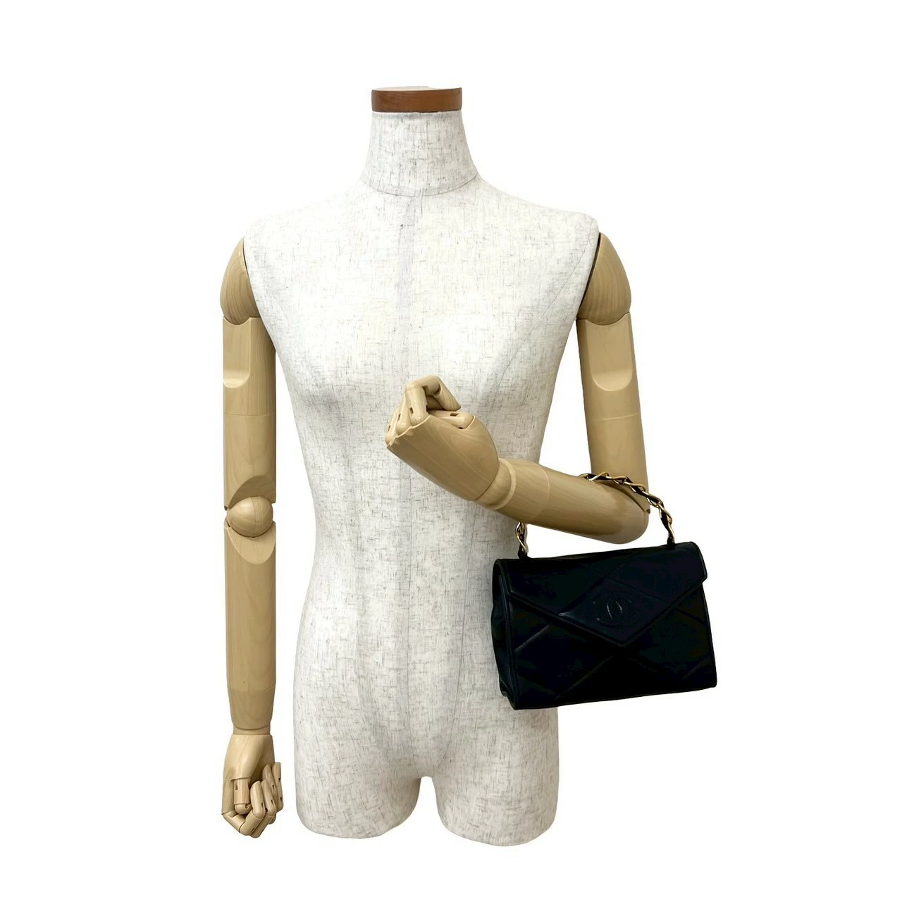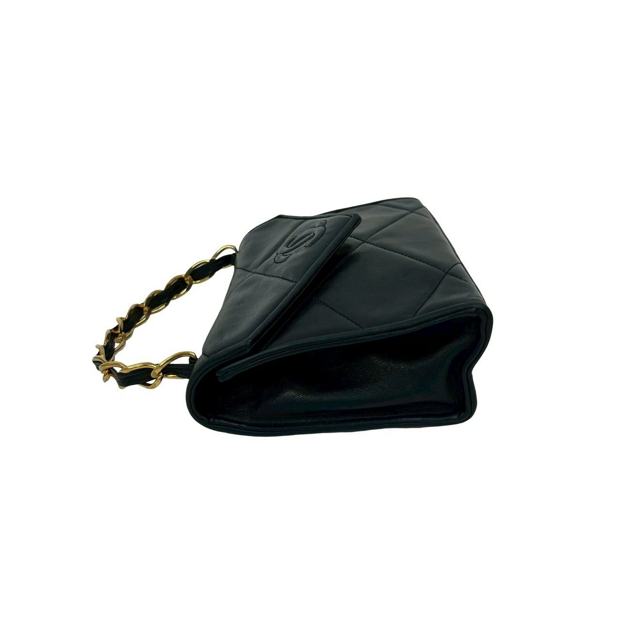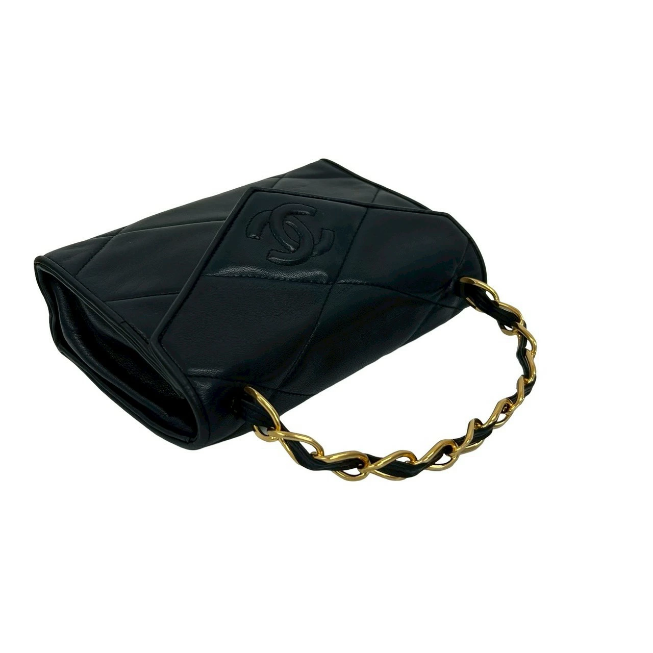 Earn double points! Excellent condition, rare item with card and sticker. Pre-owned CHANEL Matelasse Coco Mark lambskin mini handbag in navy blue (44483).