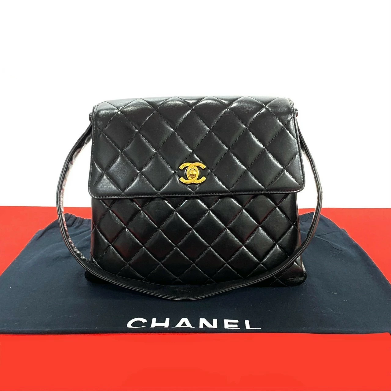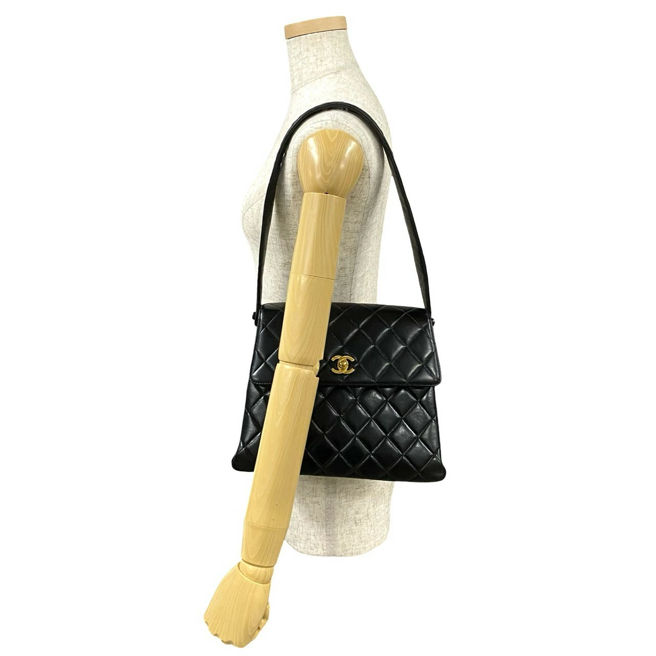 Earn double points! Excellent condition, sticker included, #4 series CHANEL Matelasse Coco lambskin leather turnlock semi-shoulder bag, black, i72-4 [pre-owned]