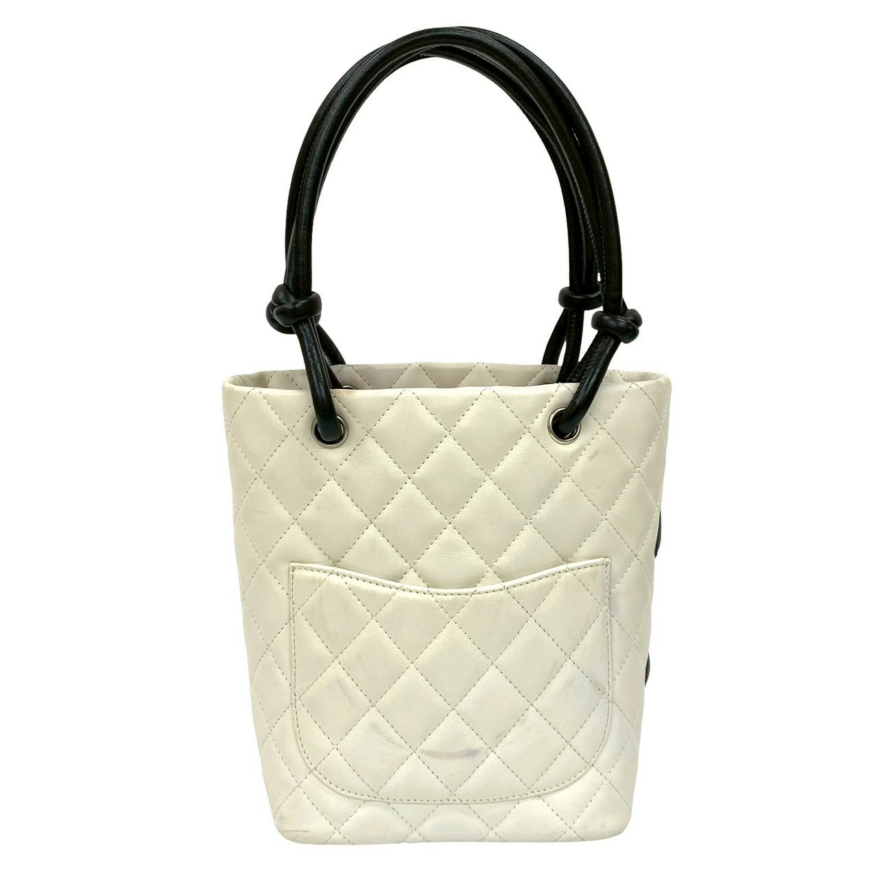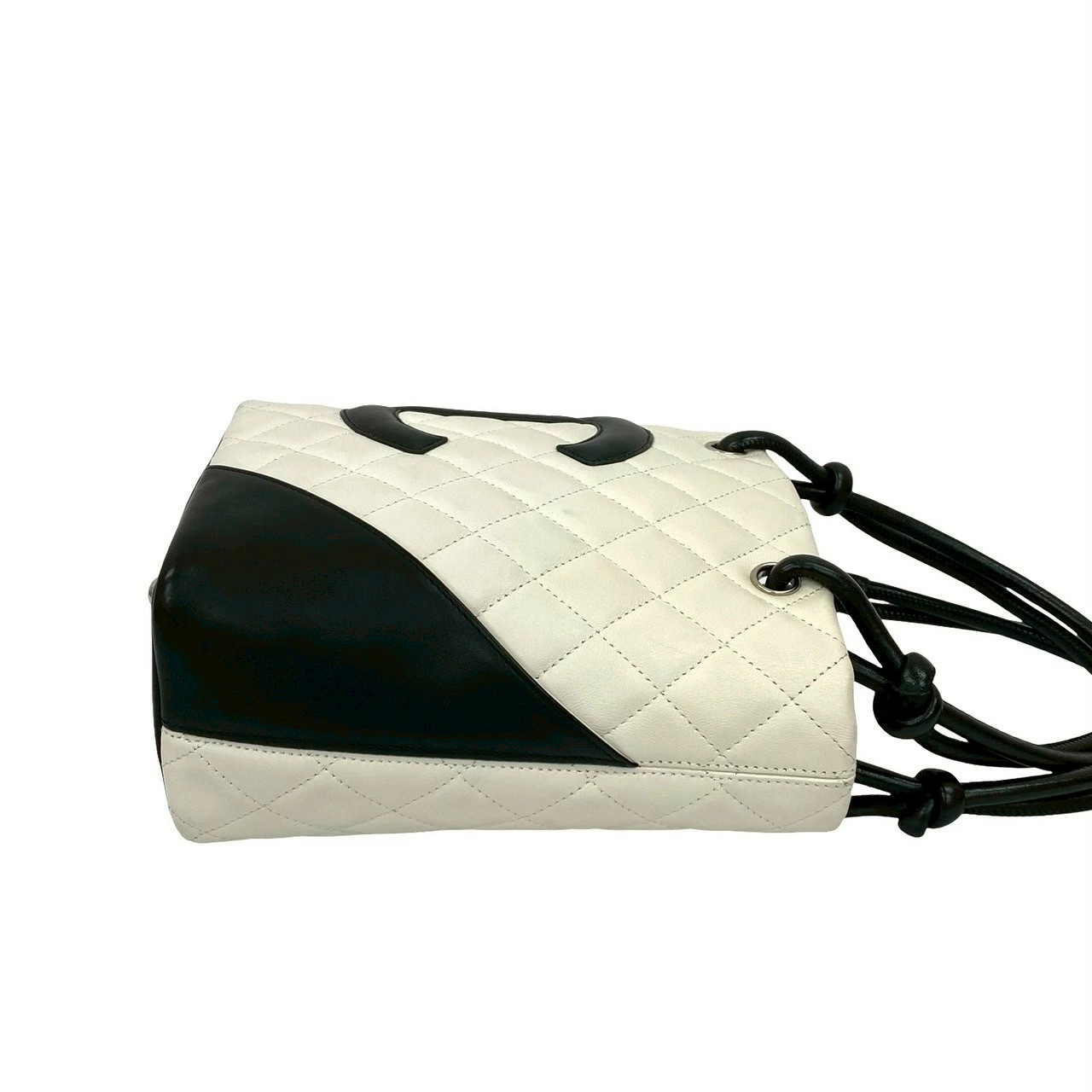 Earn double points! Excellent condition, with bag, card, and sticker. CHANEL Cambon line small Coco leather mini handbag, white and black, 731-8. Pre-owned.