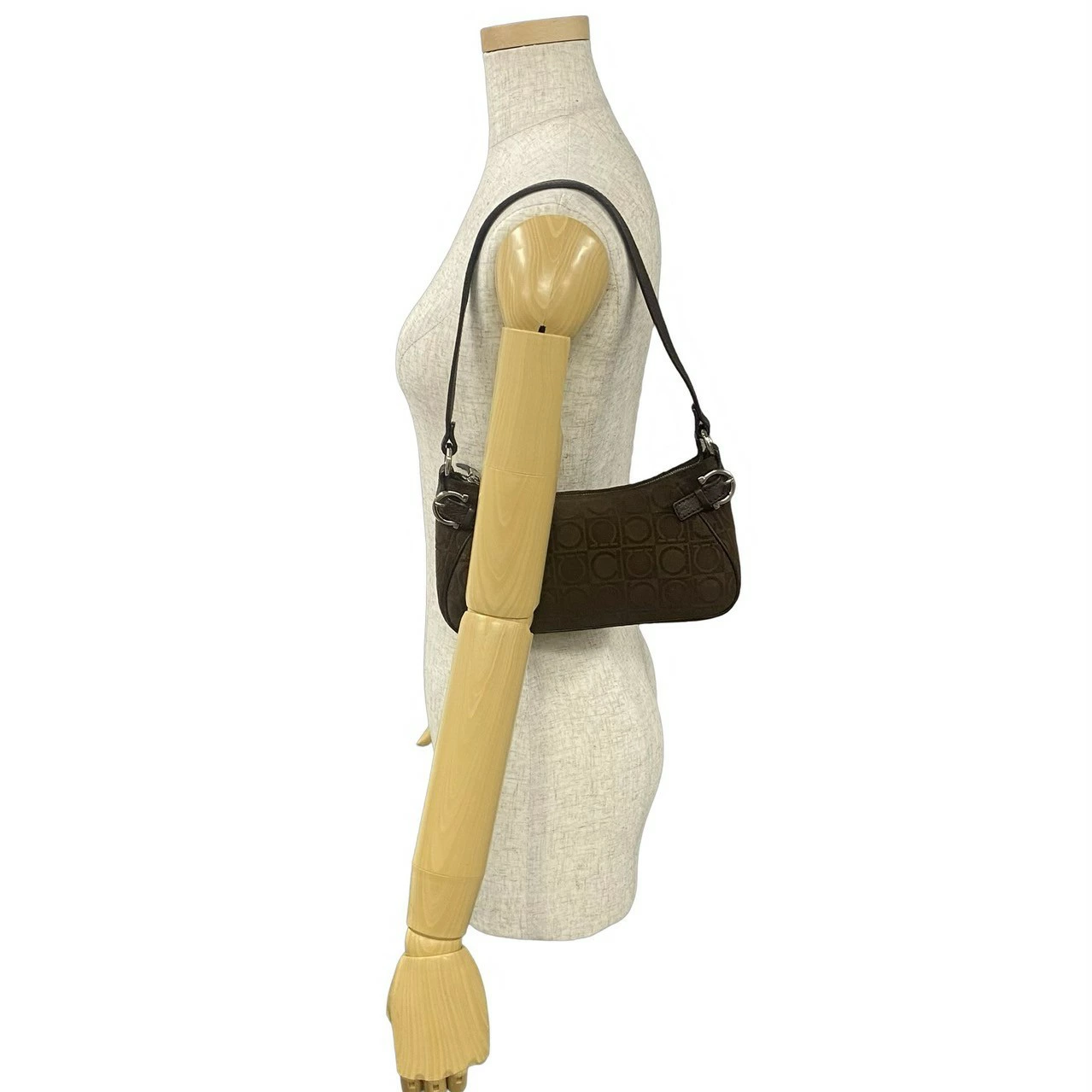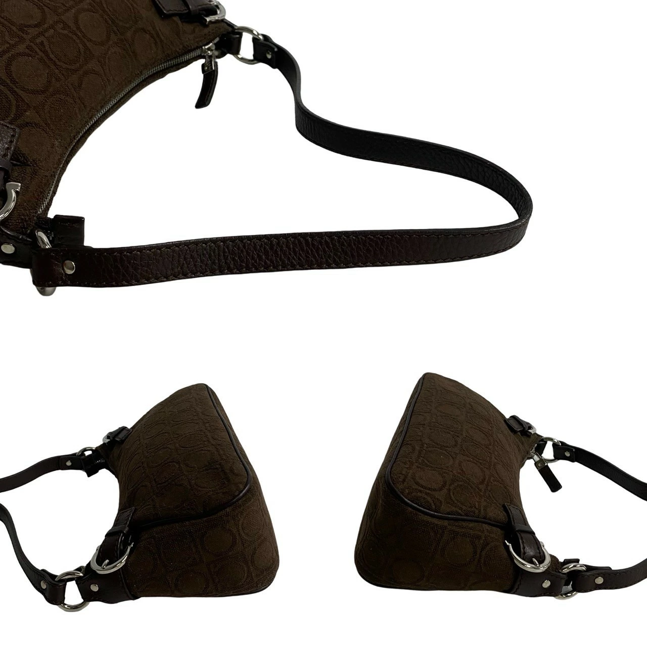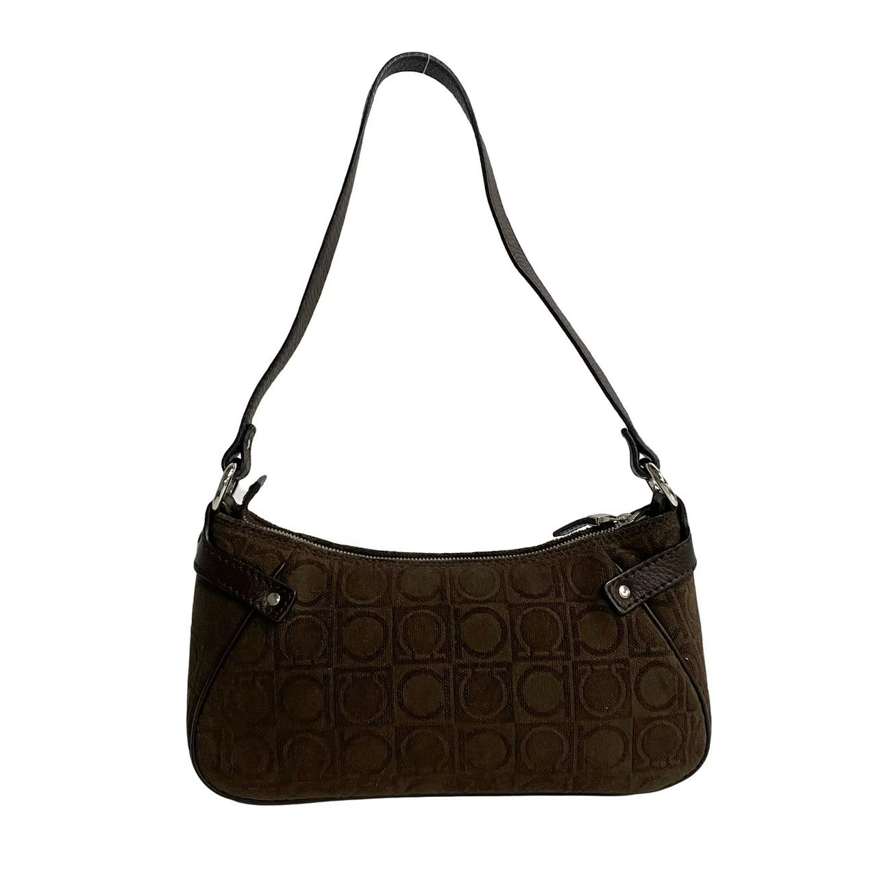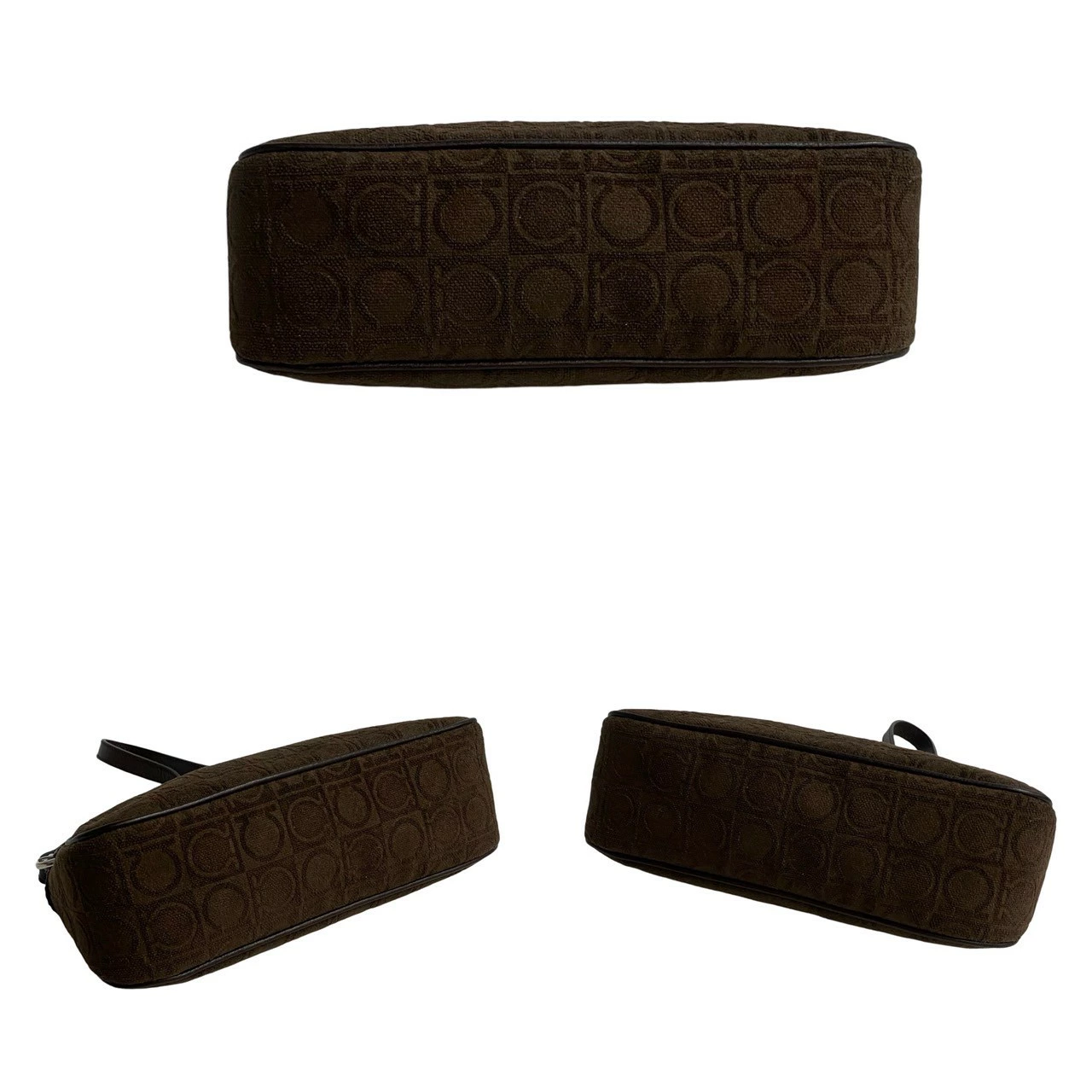 Earn double points! Pre-owned, unused Salvatore Ferragamo Gancini all-over pile leather semi-shoulder bag in brown (57196) with box and bag.