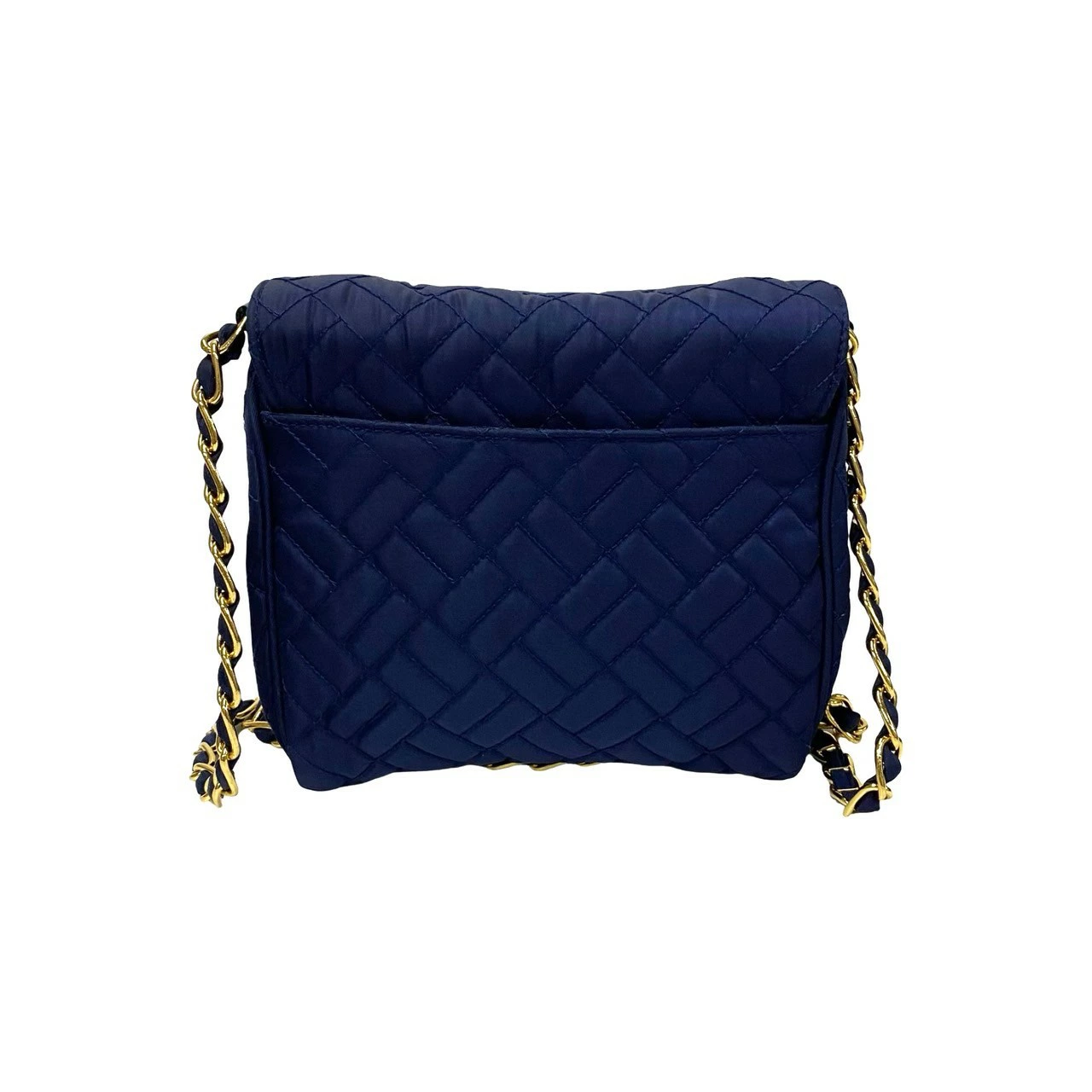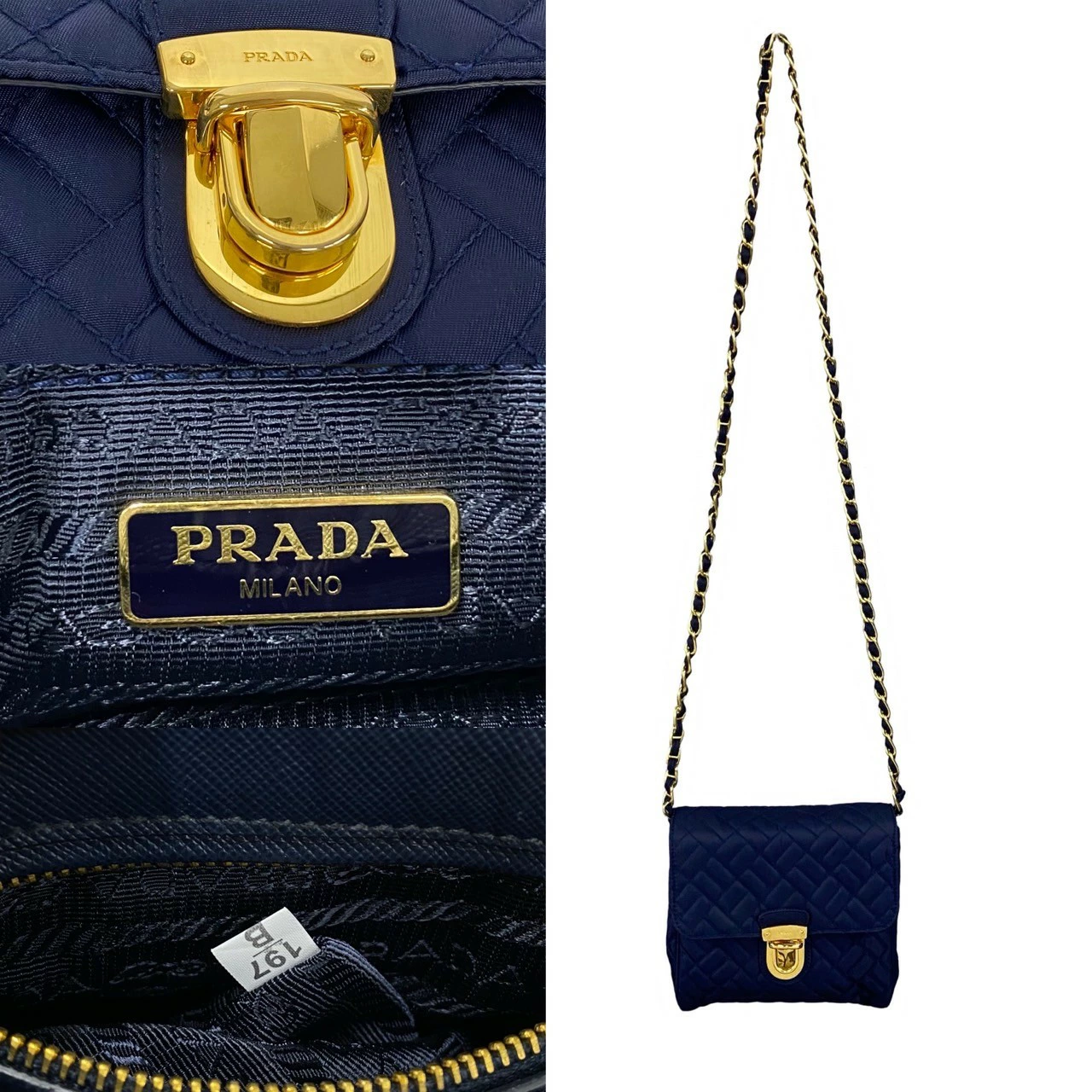 Earn double points! Rare, almost new PRADA Prada logo hardware, quilted nylon and Saffiano leather chain shoulder bag in navy (90595) [Pre-owned]