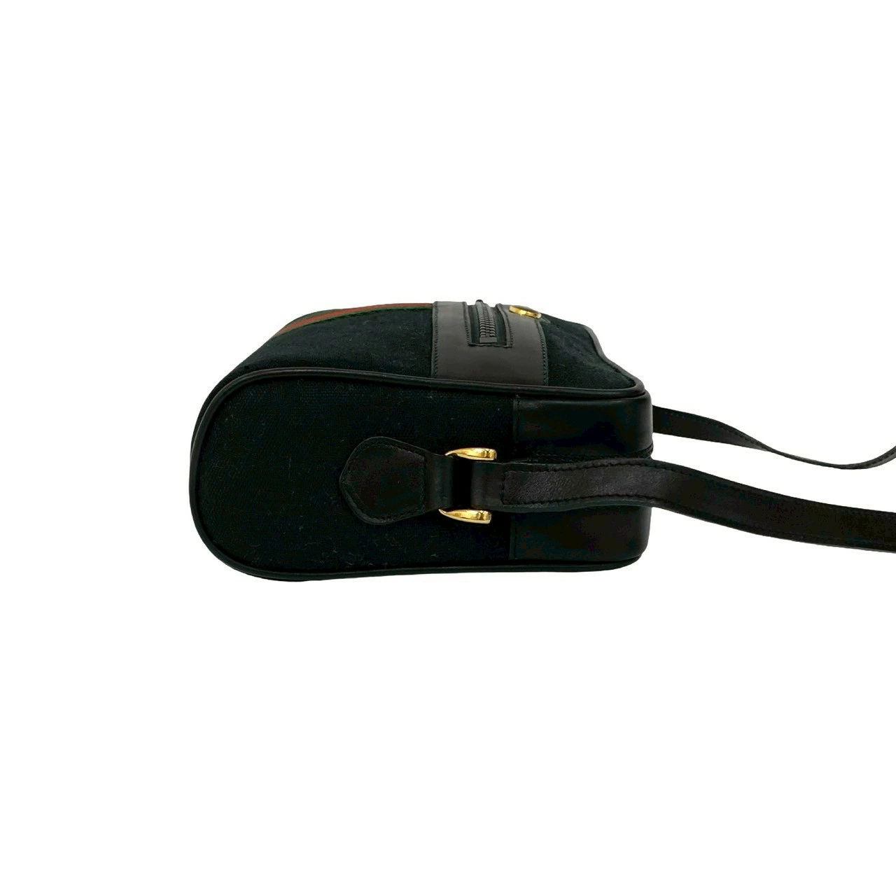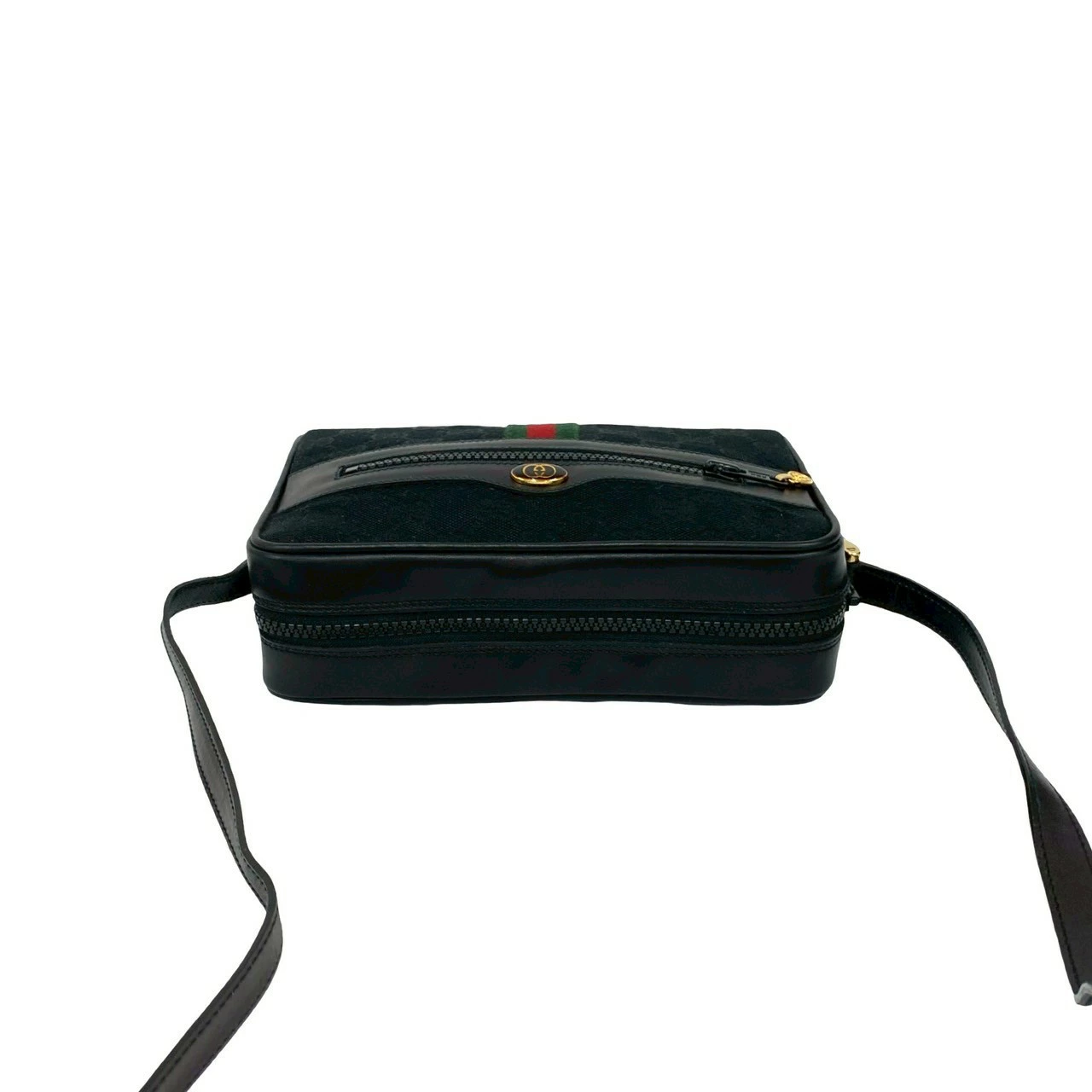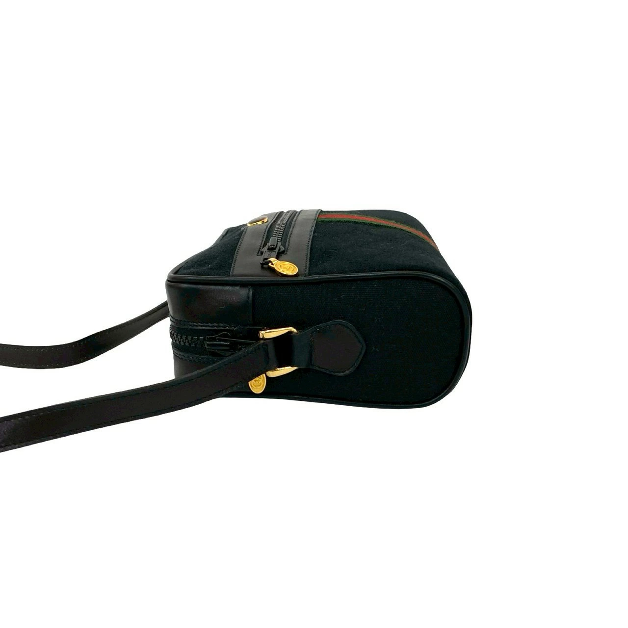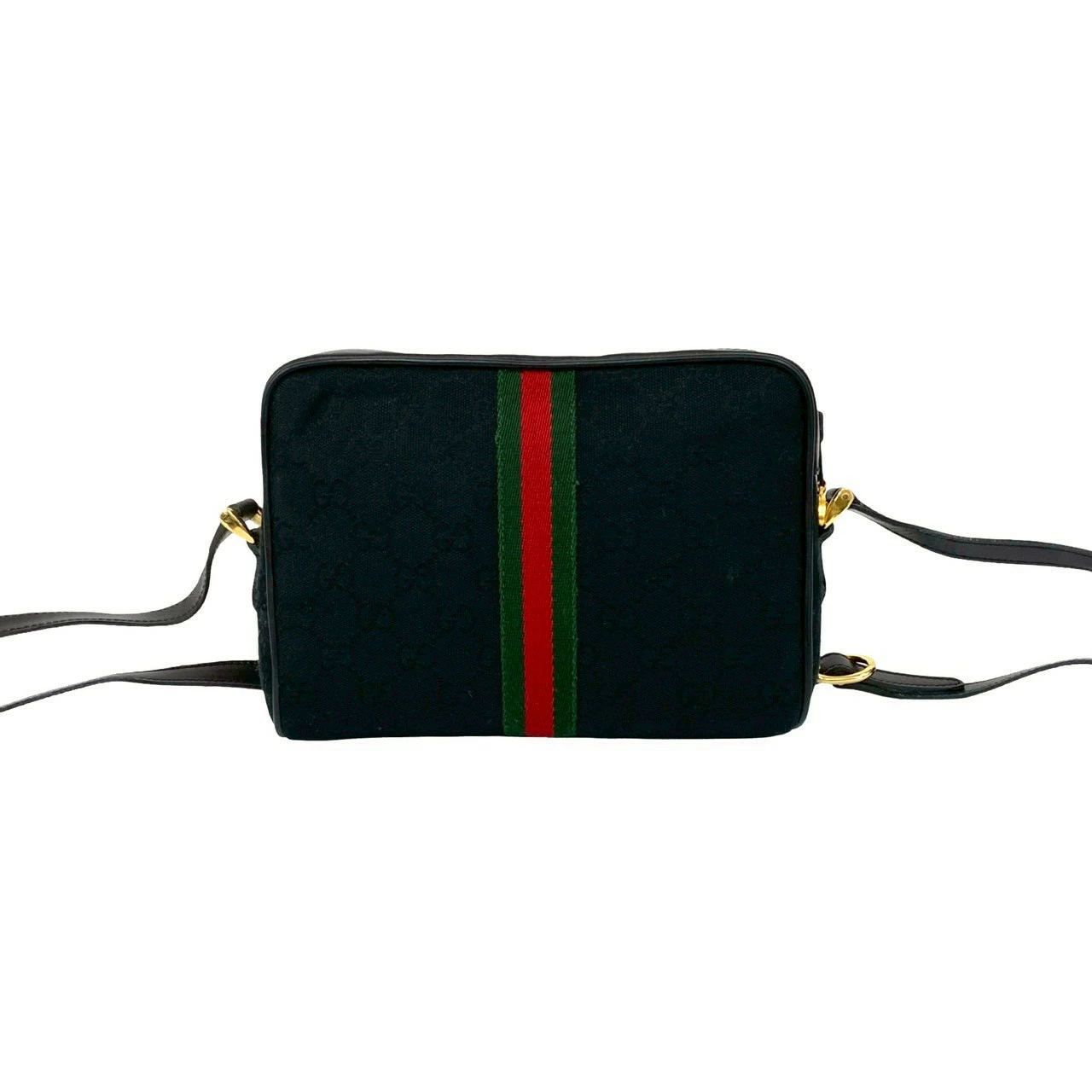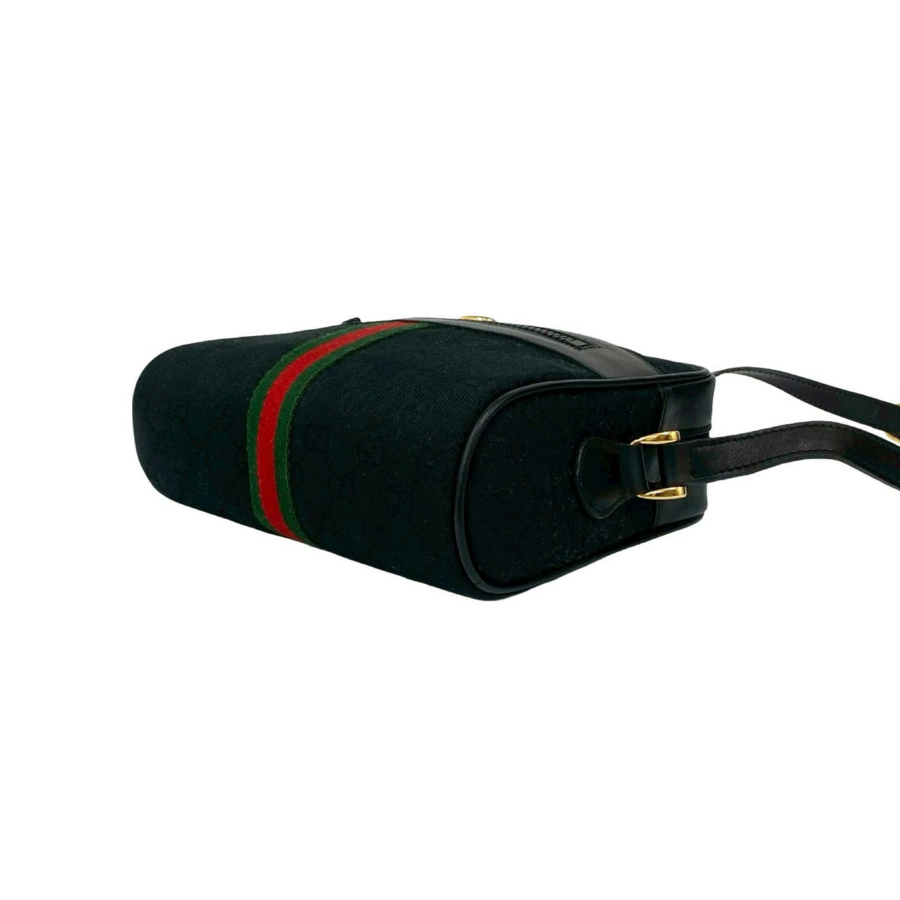 Earn double points! Unused, stored, boxed GUCCI Vintage Sherry Line GG logo hardware canvas and leather shoulder bag, black, 88582 (pre-owned).
