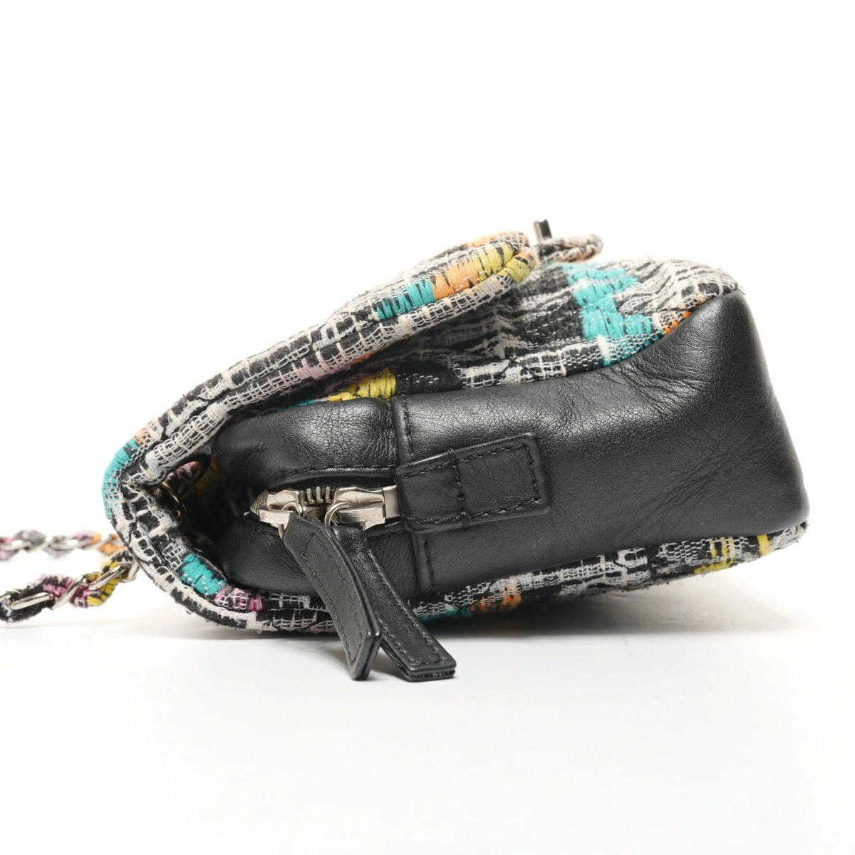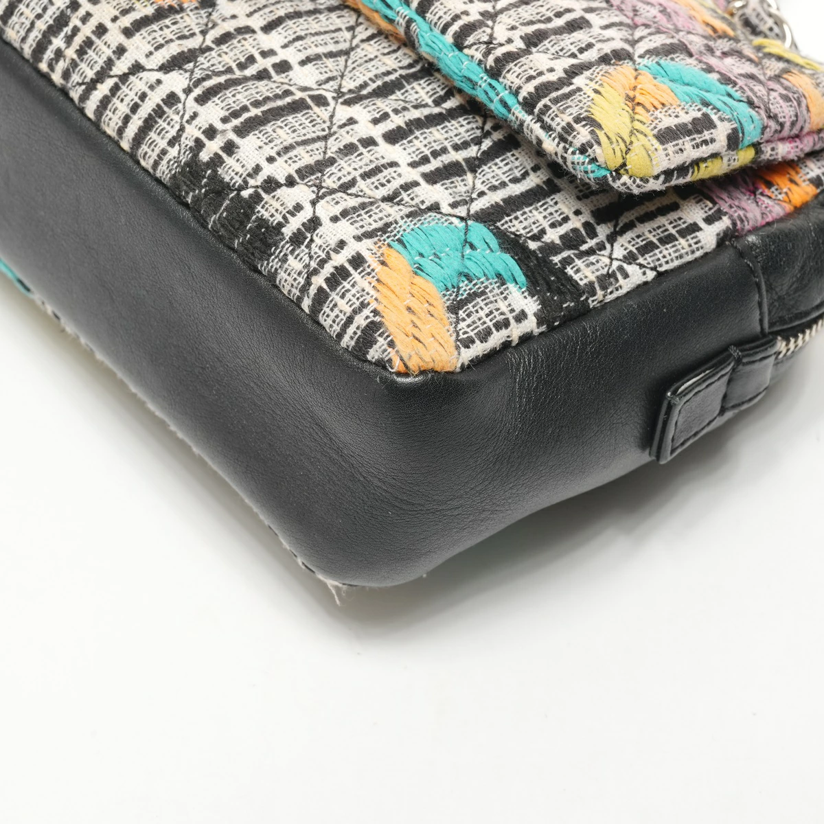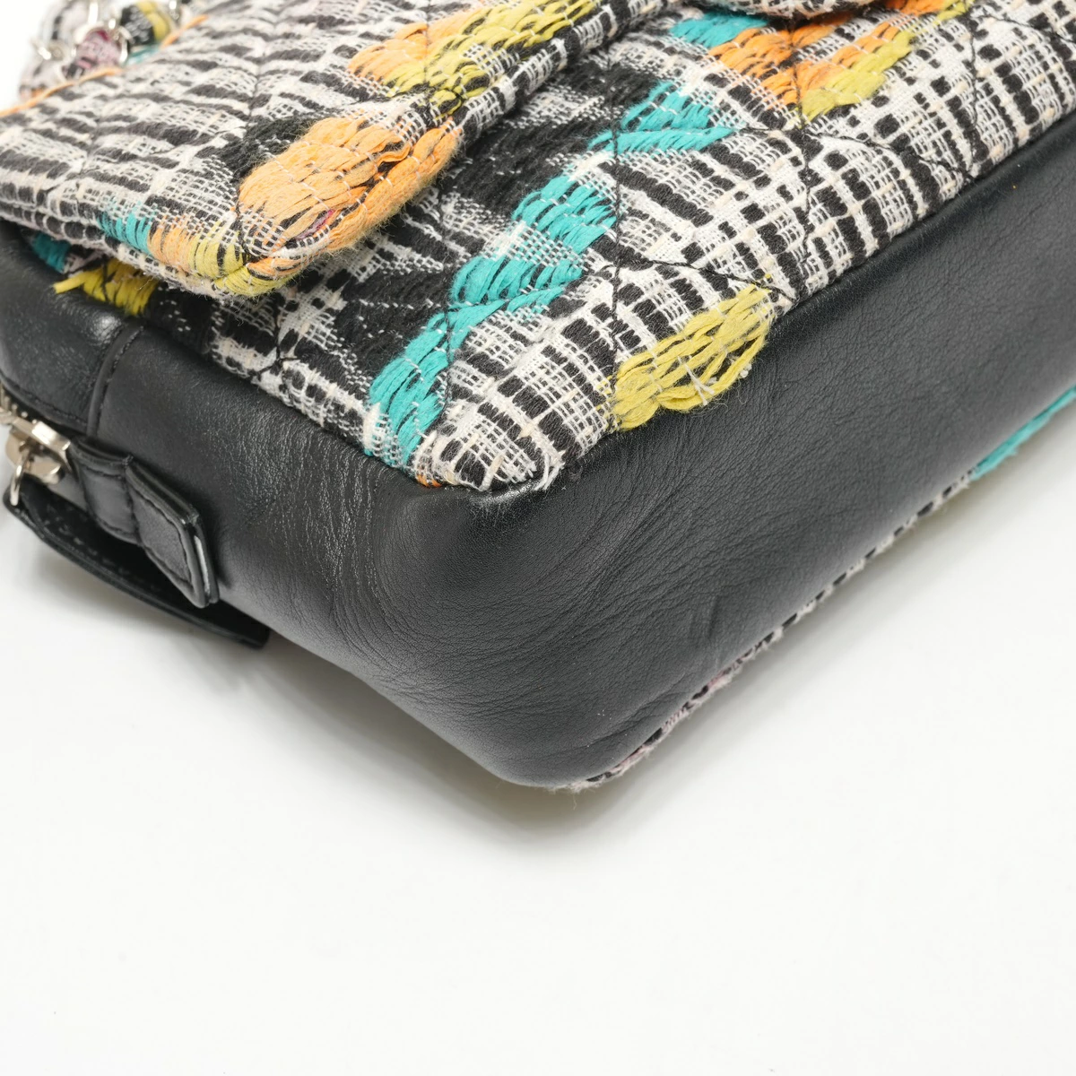 外側:シワ ファスナープル:レザースレ ツイード:ほつれている箇所あり フラップ付け根:ほつれあり 内側:使用感あり 色落ち 汚れ 目立つ