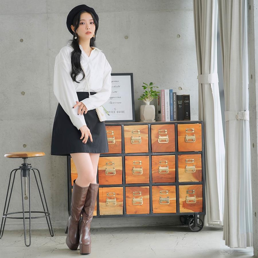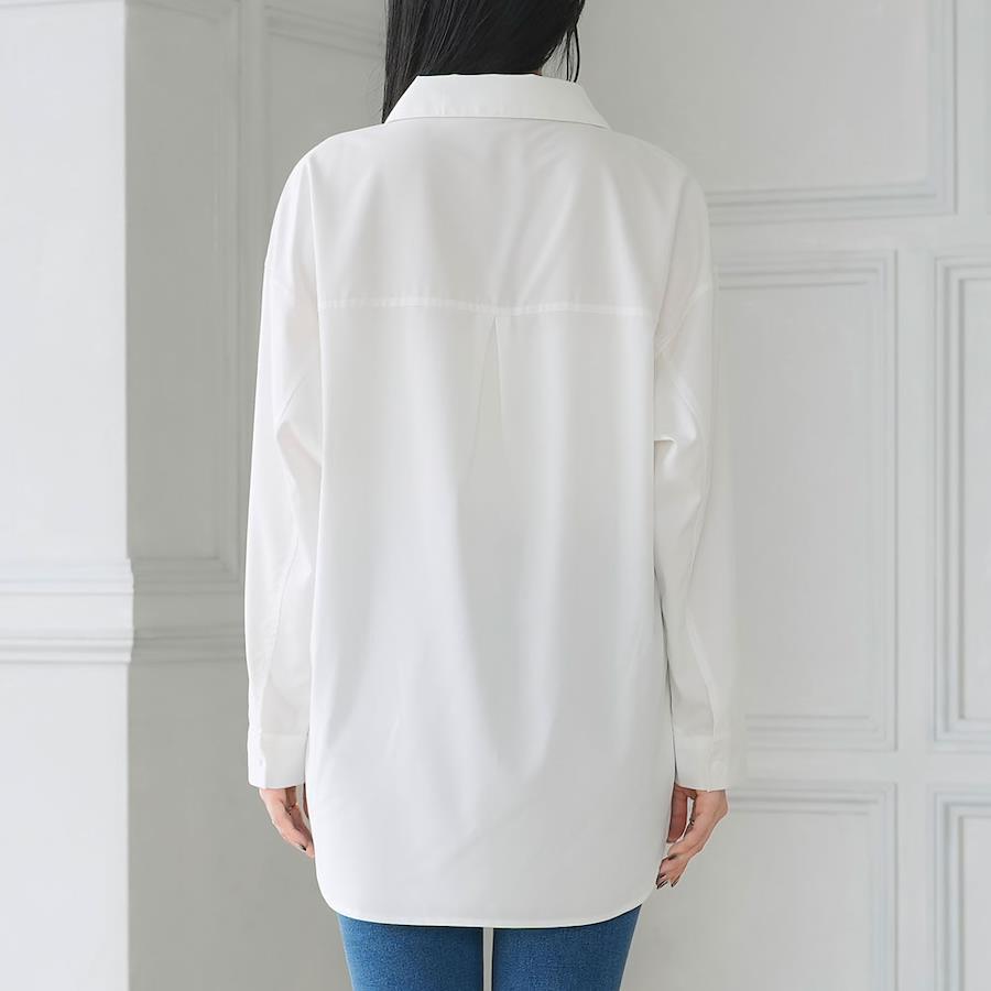 【デザイン】ベーシックでどんなシーンにも活躍するスキッパーブラウス。衿ぐりが開きすぎていないシャープなデザインは顔周りをすっきり見せて小顔効果抜群◎ゆったり余裕のあるサイズ感なので、ボディラインを拾わずさらっと着こなせます。後ろ丈は長めになっており、ヒップ周りまで綺麗にカバー。抜け感のある、大人カジュアルなアイテムです。