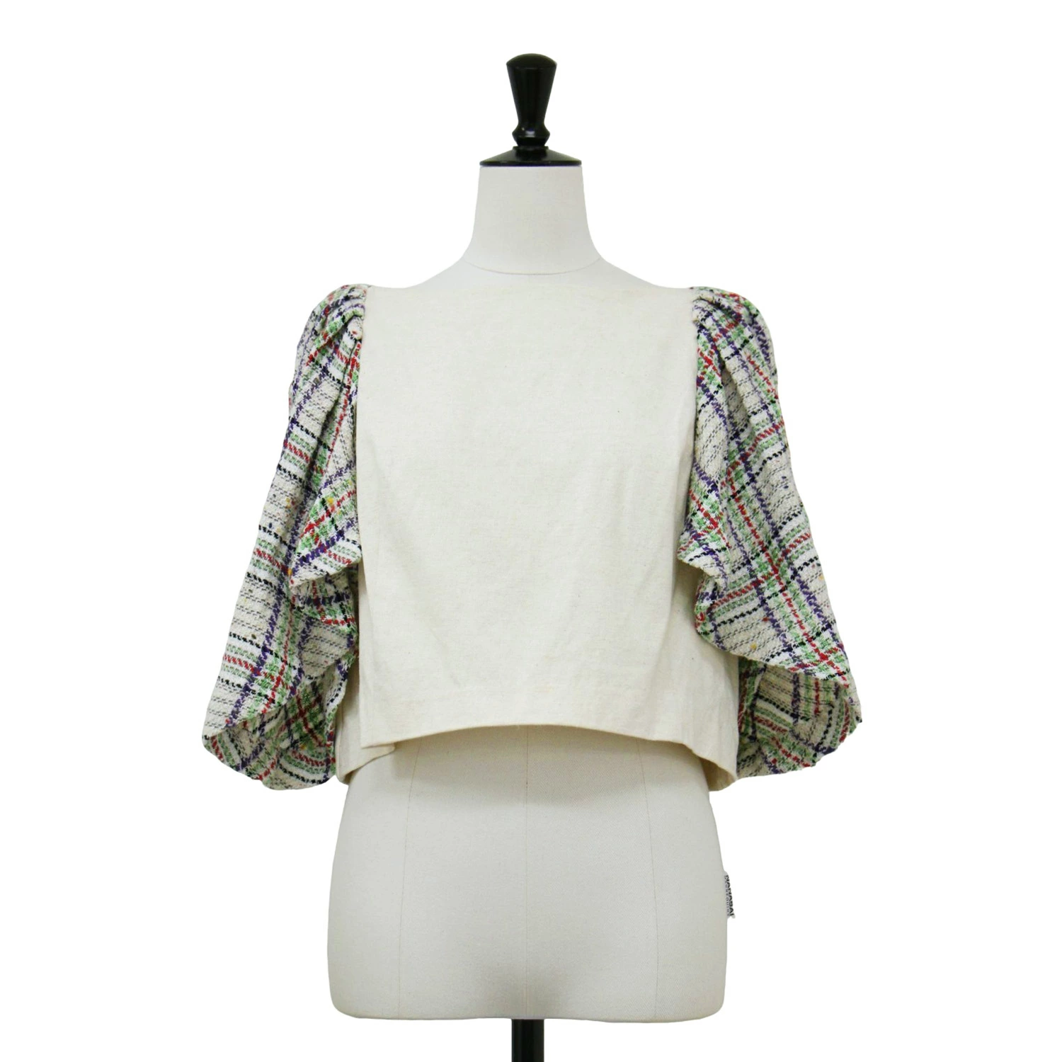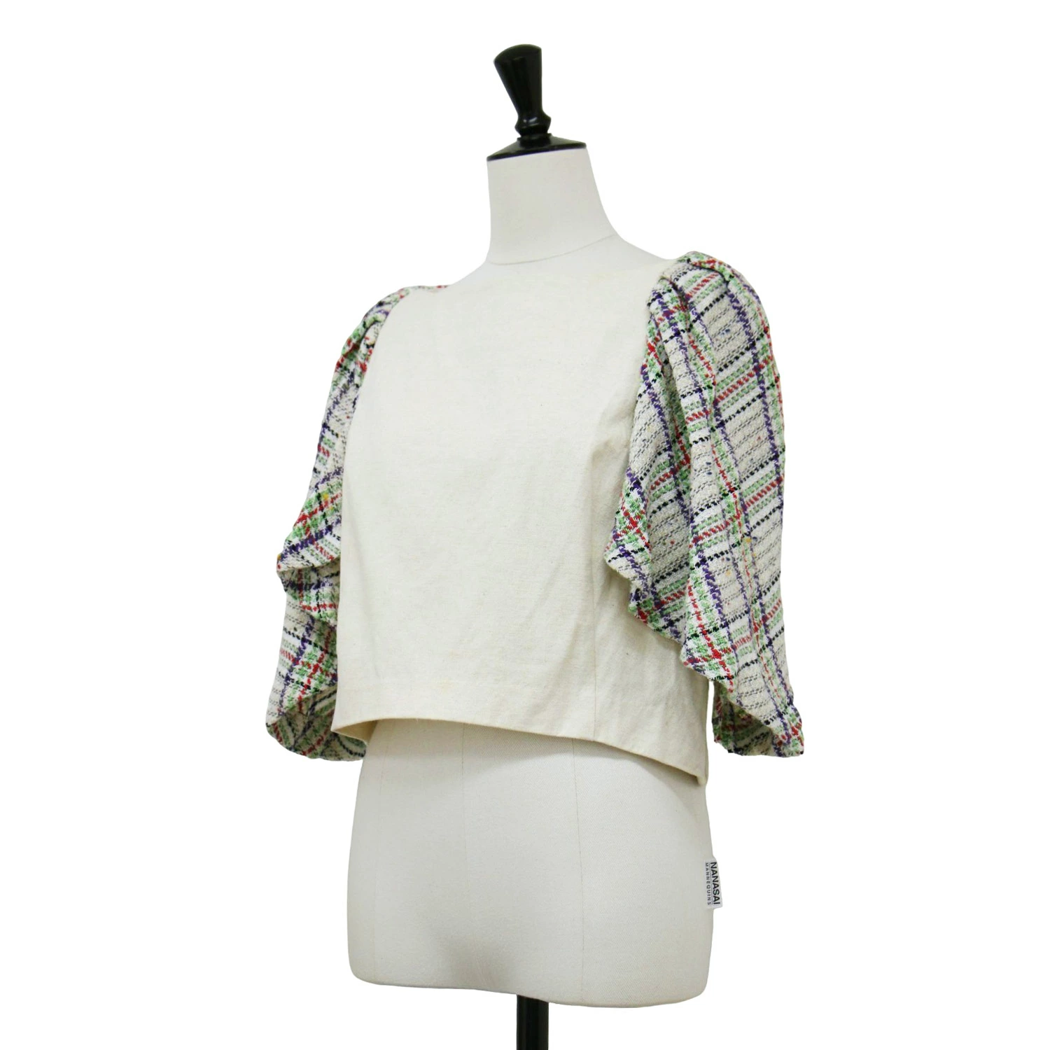| 商品説明 | ・異素材コンビデザイン ・ショルダーギャザー ・ツイードチェック |