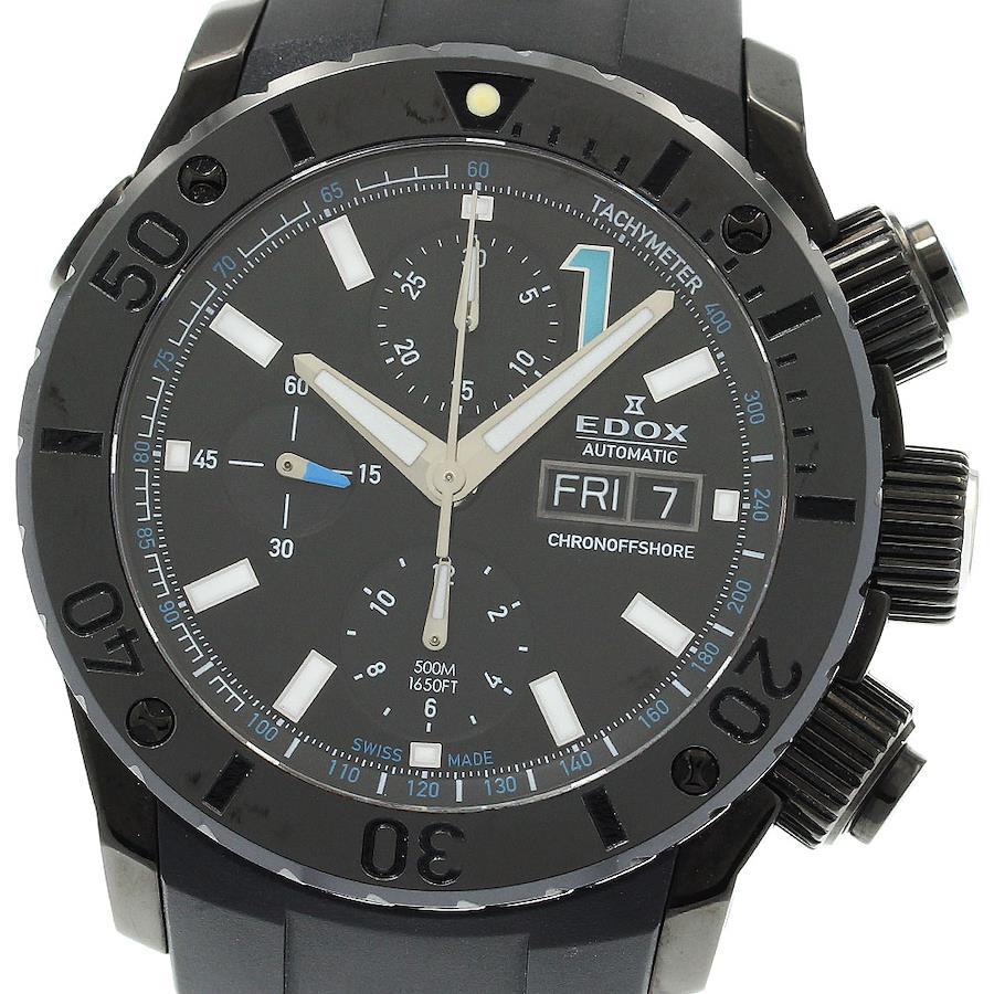 ■商品情報ブランド: エドックス/EDOXモデル名: クラスワン対象: メンズ素材: SS × ラバー文字盤色: ブラックムーブメント:自動巻きRef.No: 01111-37N-NINシリアル:1**/250機能・特徴:デイデイト,クロノグラフ付属品:外箱,内箱,保証書(カード),取扱説明書ケースサイズ(w):約 43mmベルトサイズ:約 20.5cm※ベルトサイズとは、ケース部分も含めた総腕回りのサイズになります。ラグ幅: 24mm日差: +2秒/日 ※参考値OH歴: 弊社では実施しておりません。保証書の情報: 2011/02/11