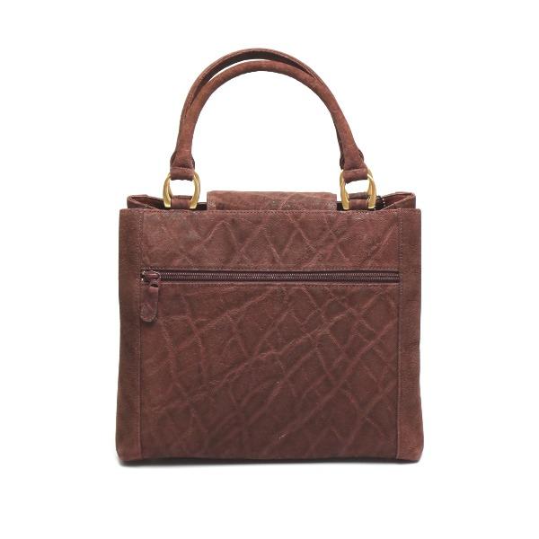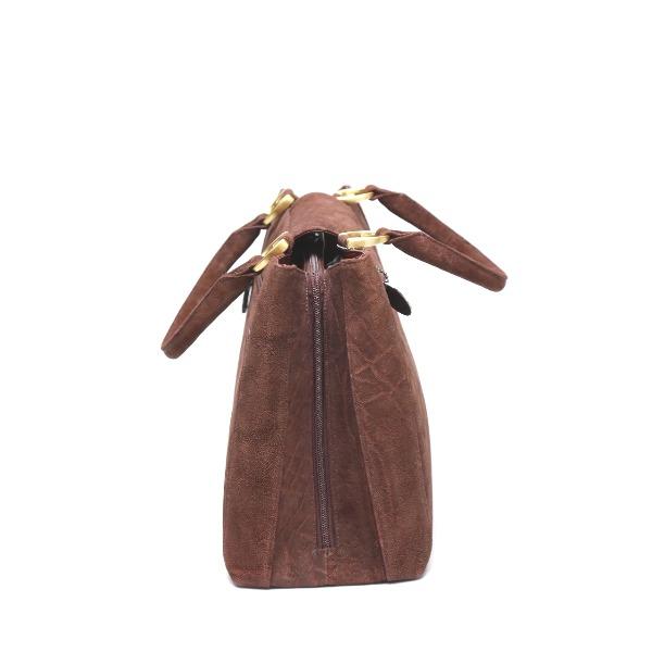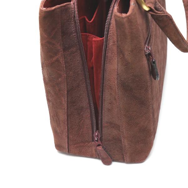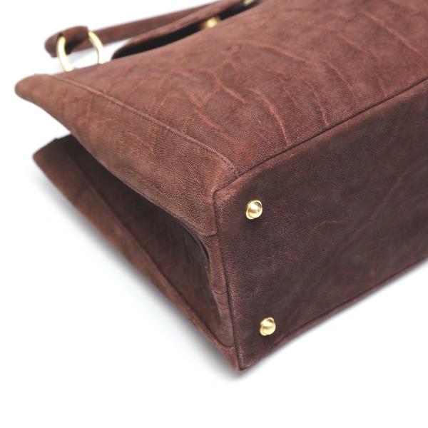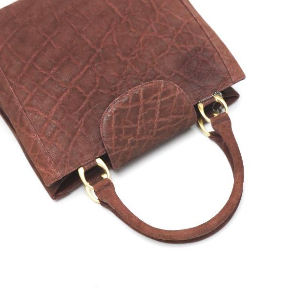 [サイズ]W約29cm x H約24cm x D約14cm外側:ファスナーポケット x 1内側:オープンポケット x 3、ファスナーポケット x 2[付属品]なし[商品説明]★商品画像はデジタルカメラで撮影しておりますのでモニターやインターネット環境の違いにより、多少色合いが違うことがございます。何卒ご容赦願います。[状態・コンディション]ランク SA全体コンディション詳細:大変、珍しいエレファント革使用のハンドバッグです。金属部分には小傷がございます。真ん中にファスナーポケットで区切られているので荷物を分けることができ大変使いやすいデザインです♪お買い物やお出かけにオススメの逸品です♪[外側]ランク SA表面:小キズ