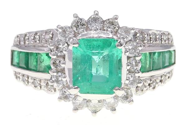 | 状態 | 【商品状態】 金属部分に微細な小キズ、薄スレがありますが、目につくものではありません。 【石の評価】 中石のエメラルドはやや薄いグリーンで、肉眼でも確認できる内包物がございます。脇石のエメラルドは中石よりはやや濃いですが、内包物によってやや濁っている印象です。ダイヤモンドはおおよそI〜SIクラスで、やや色味のバラつきがございます。 |