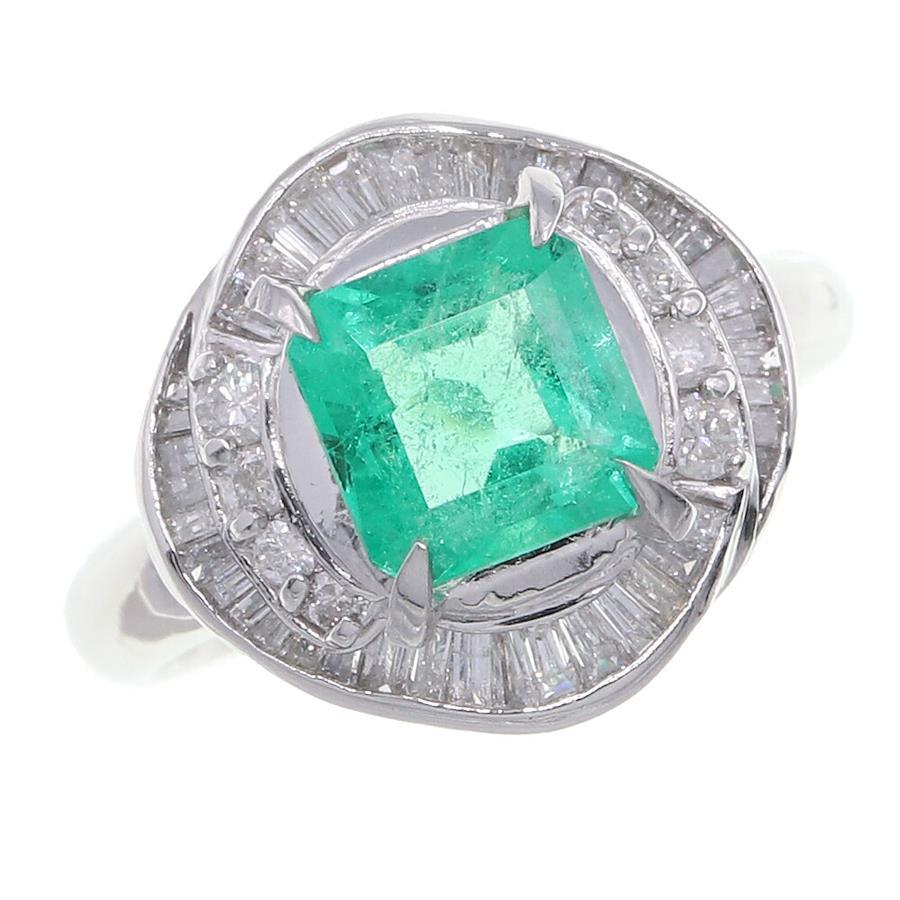 エメラルドダイヤモンドリングE1.36ctD0.73ctPt90012号中古指輪アクセサリージュエリー宝石ストーンレディースEmeraldDiamond