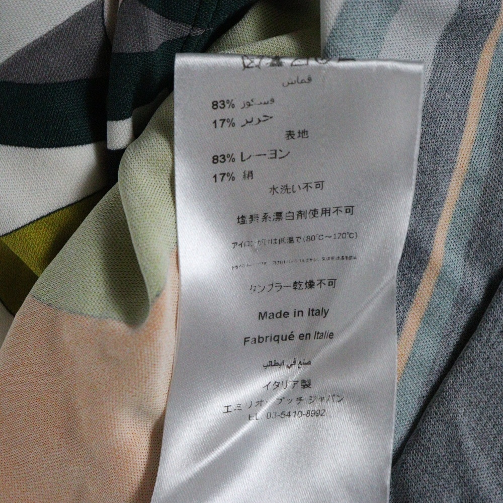 ■商品情報[商品番号]3825I090034[ブランド]EMILIO PUCCI(エミリオプッチ)[モデル]総柄 アシメントリー 長袖ワンピース マルチ レディース[サイズ]平置き採寸 着丈:69センチ 身幅:45センチ 肩幅:42センチ 袖丈:66センチ 裾幅:43センチ表記サイズ:40■状態・コンディション[状態ランク]ランク B使用感有り全体的にスレ有り襟周りにほつれ有り