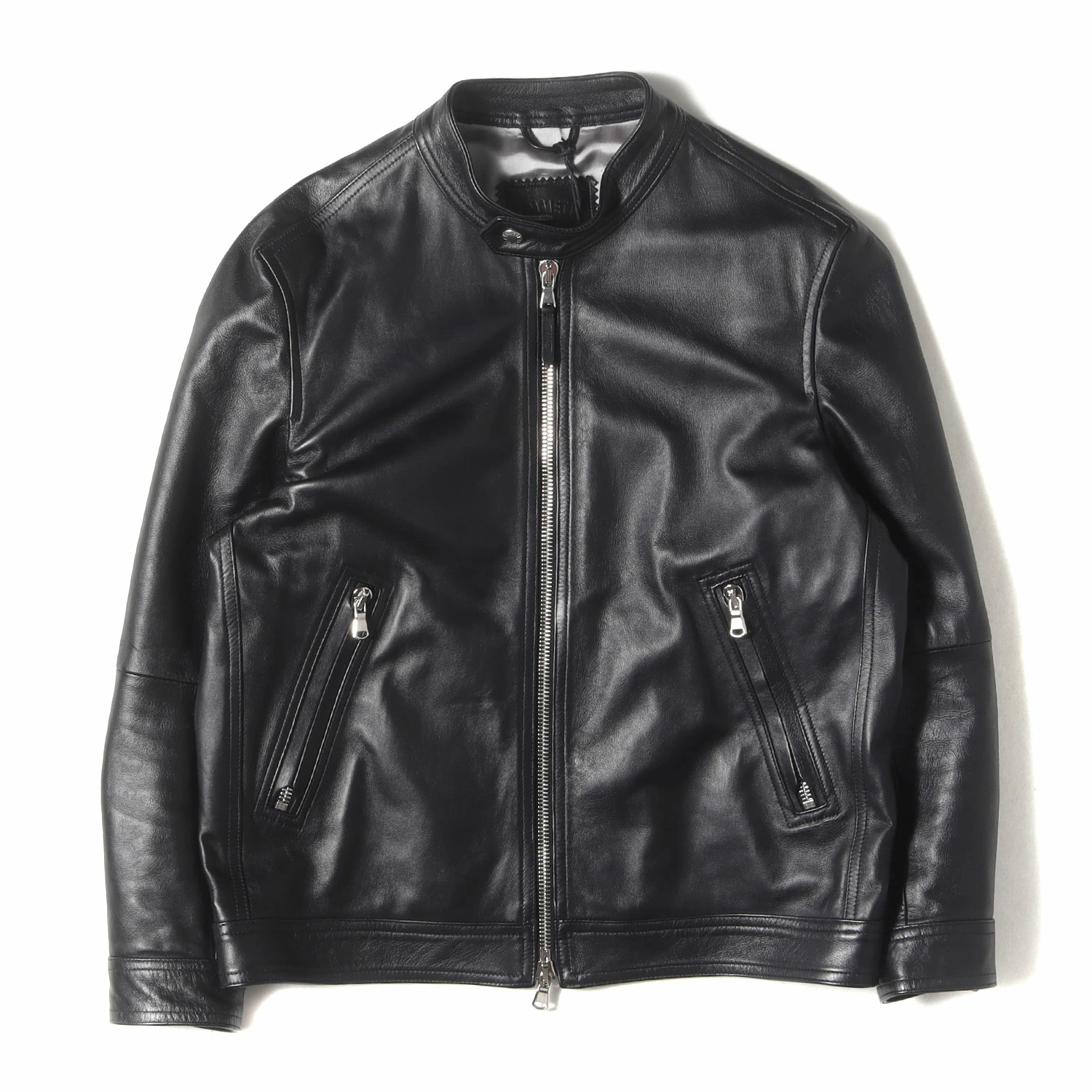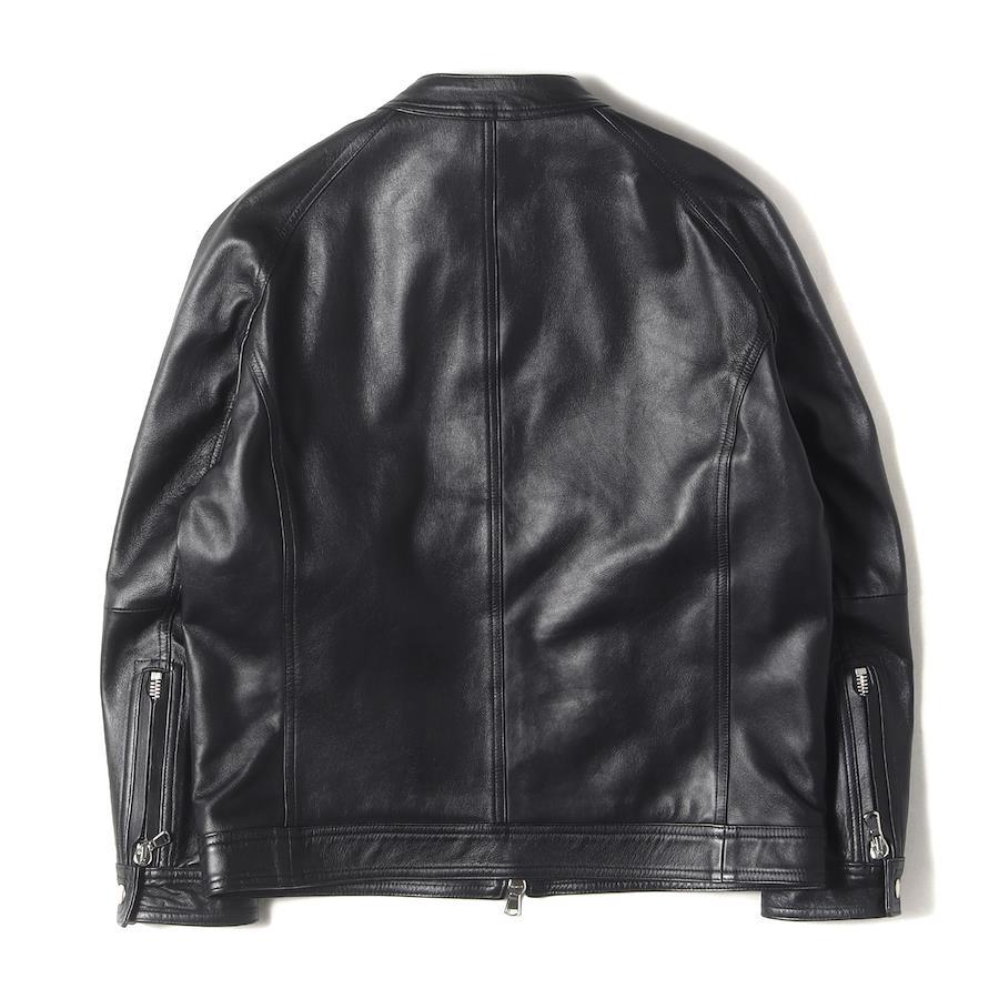 | 商品説明 | ・ほどよく艶やかな光沢感のある0.7mm厚のラムレザー"ナッパチェラータ" ・首元スナップボタン留めスタンドカラー ・フロントダブルジップ仕様 ・ブランドオリジナルジップ ・タイトで細身のシルエット |