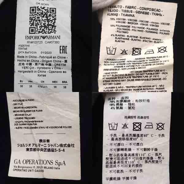 ・メーカー :EMPORIO ARMANI / エンポリオアルマーニ・製品型番 :6H2AT2 2M18Z・サイズ :表記サイズ:38,肩幅 (約cm):30,身幅 (約cm):29,着丈 (約cm):86,袖丈 (約cm):17,・色(柄)の系統:ブラック・デザイン :(レディース)ボトムス/ワンピース・素材 :ビスコース78% ポリアミド18% エラスタン4%