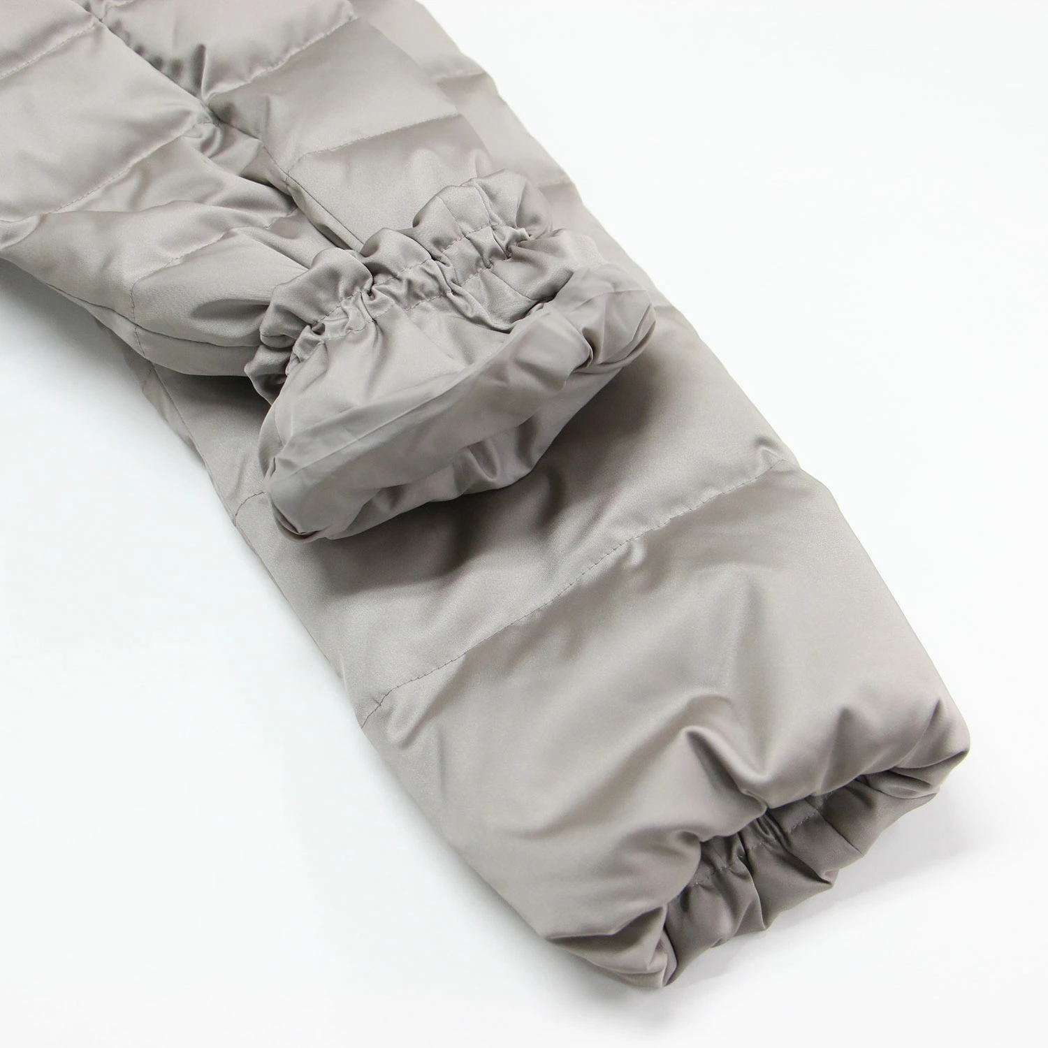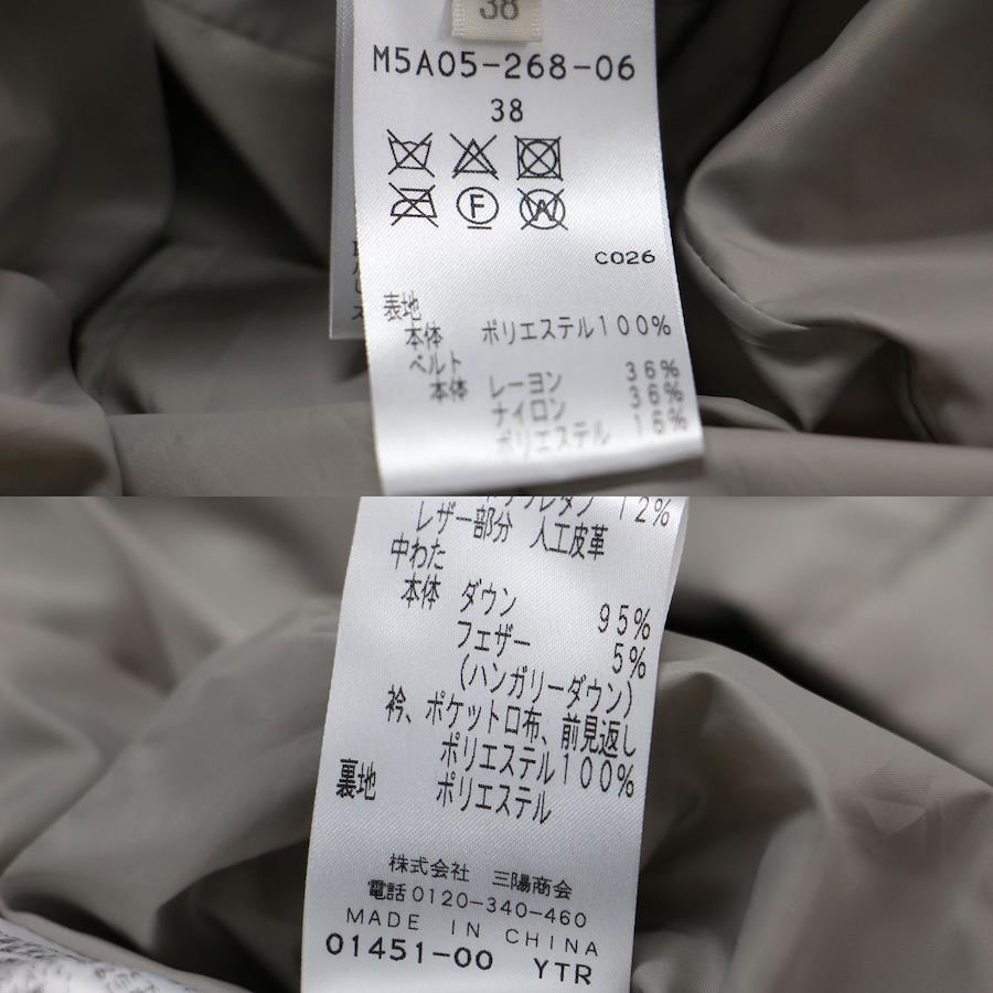 | 素材 | 表地 本体 ポリエステル 100% ベルト 本体 レーヨン 36% ナイロン 36% ポリエステル 16% ポリウレタン 12% レザー部分 人工皮革 中わた 本体 ダウン 95% フェザー 5% (ハンガリーダウン) 衿、ポケット口布、前見返し ポリエステル 100% 裏地 ポリエステル |
