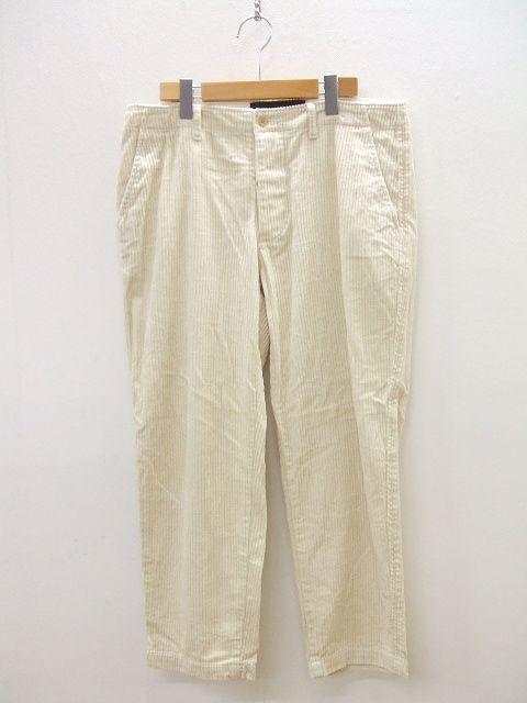 | 実寸サイズ | ウエスト:約88cm 股上:約27cm 股下:約64.5cm ワタリ幅:約33.5cm 裾幅:約19cm ※記載以外のサイズが合わないことを理由とした返品はできませんので、 記載部分以外で実寸サイズの気になる箇所があれば必ず購入前にご質問ください。 |