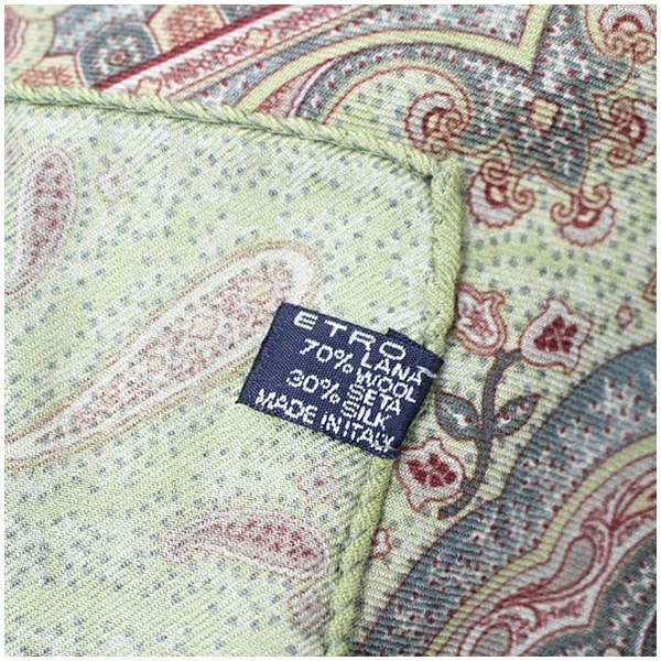 | 商品名 | エトロ 未使用 ウール シルク 大判スカーフ ストール カーキ×グリーン 中古 Sランク ETRO |