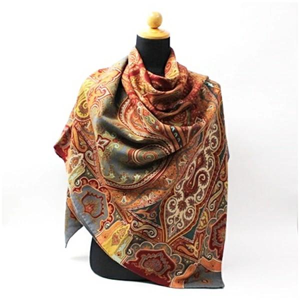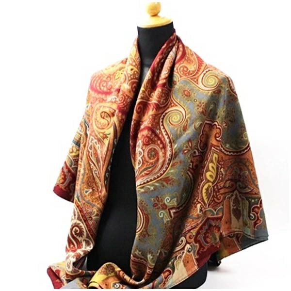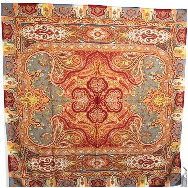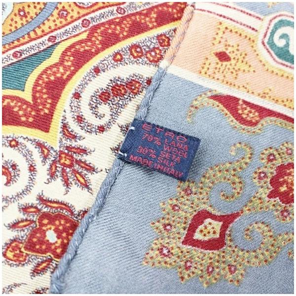 状態柔らかな手触りのウール・シルクスカーフです。落ち着いた色とエトロらしいオリエンタルな柄で高級感のあるアイテムです。肩や背中をすっぽり覆ってくれるので夏場の冷房対策にも役立ちます。
