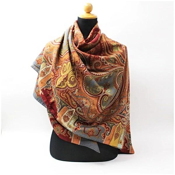 商品名エトロ ウール シルク 大判スカーフ ワインレッド×グレー 中古 Aランク ETRO