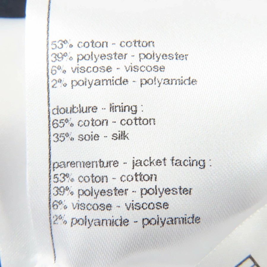 | 素材 (material) | 本体:コットン53% :ポリエステル39% :ビスコース6% :ポリアミド2% 裏地:コットン65% :シルク35% | ||||||||||||||||