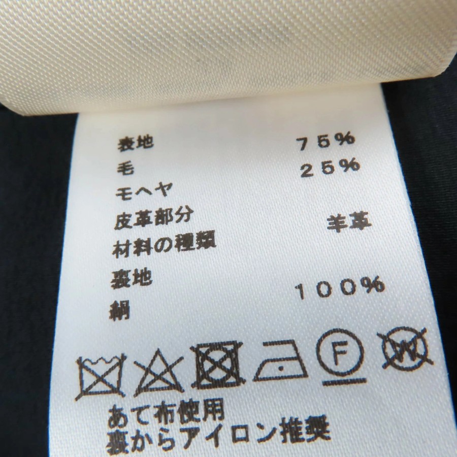 | 素材 (material) | 本体:ウール75% :モヘア25% 一部:羊革 裏地:シルク100% | ||||||||||||||||