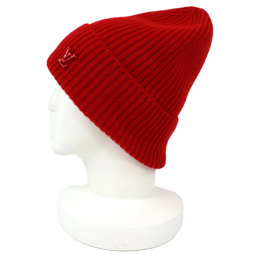 Excellent condition △LOUIS VUITTON MP3249 Bonnet LV Ahead 100% Cashmere Logo Beanie Knit Cap Red Made in Italy Authentic Men's [Used]