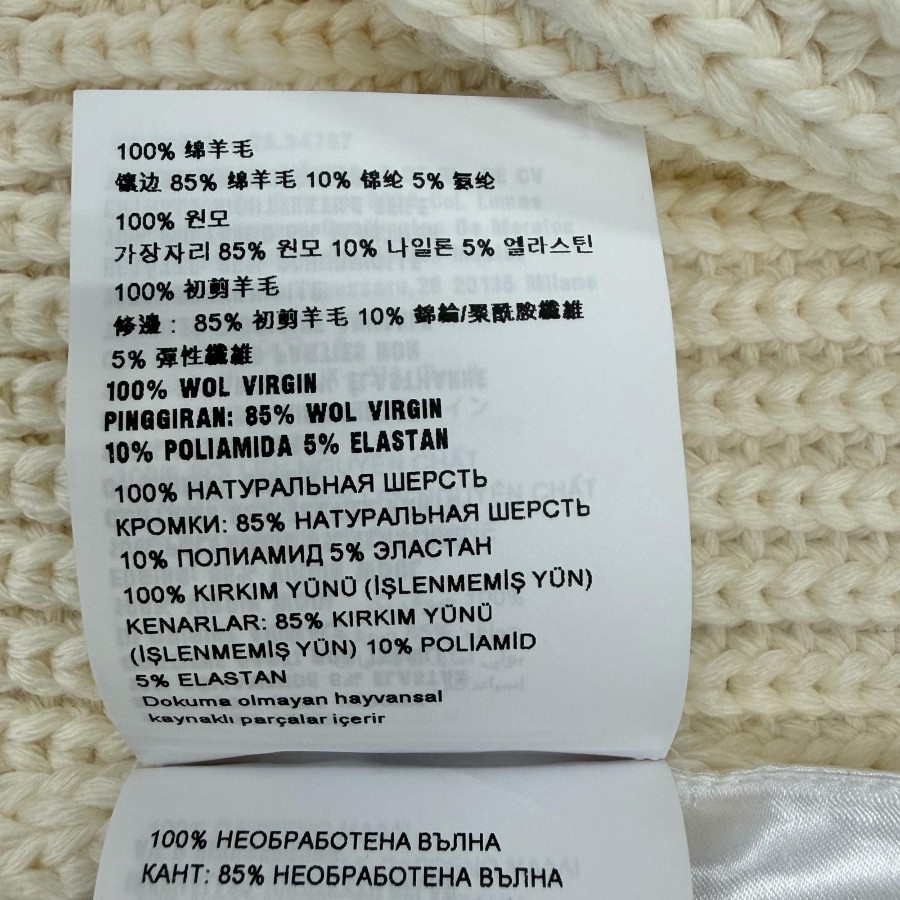 | 素材 (material) | 本体:ウール100% 一部:ウール85% :ポリアミド10% :エラスタン5% | ||||||||||||||||
