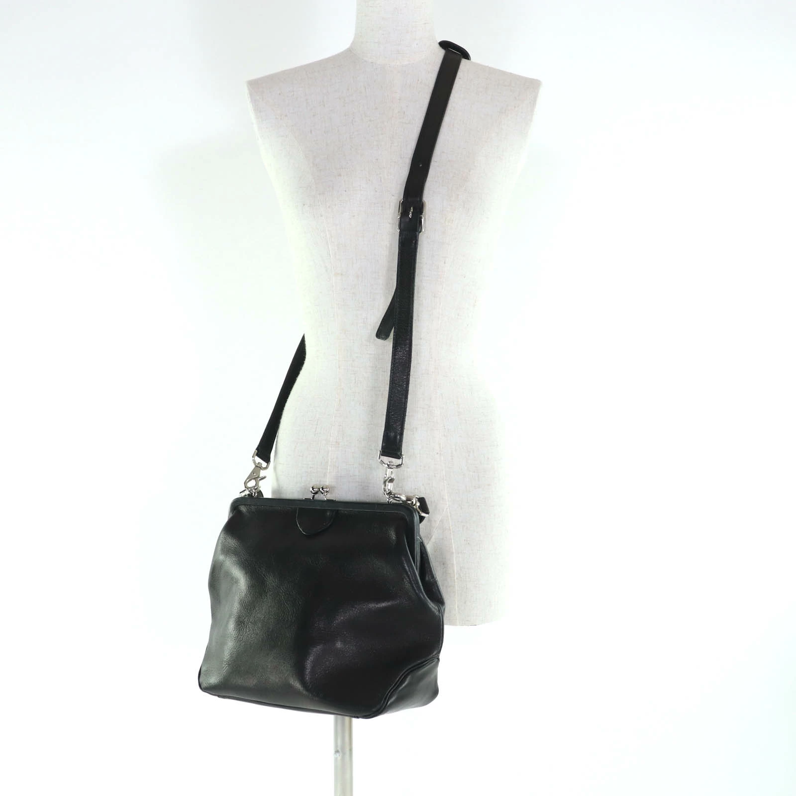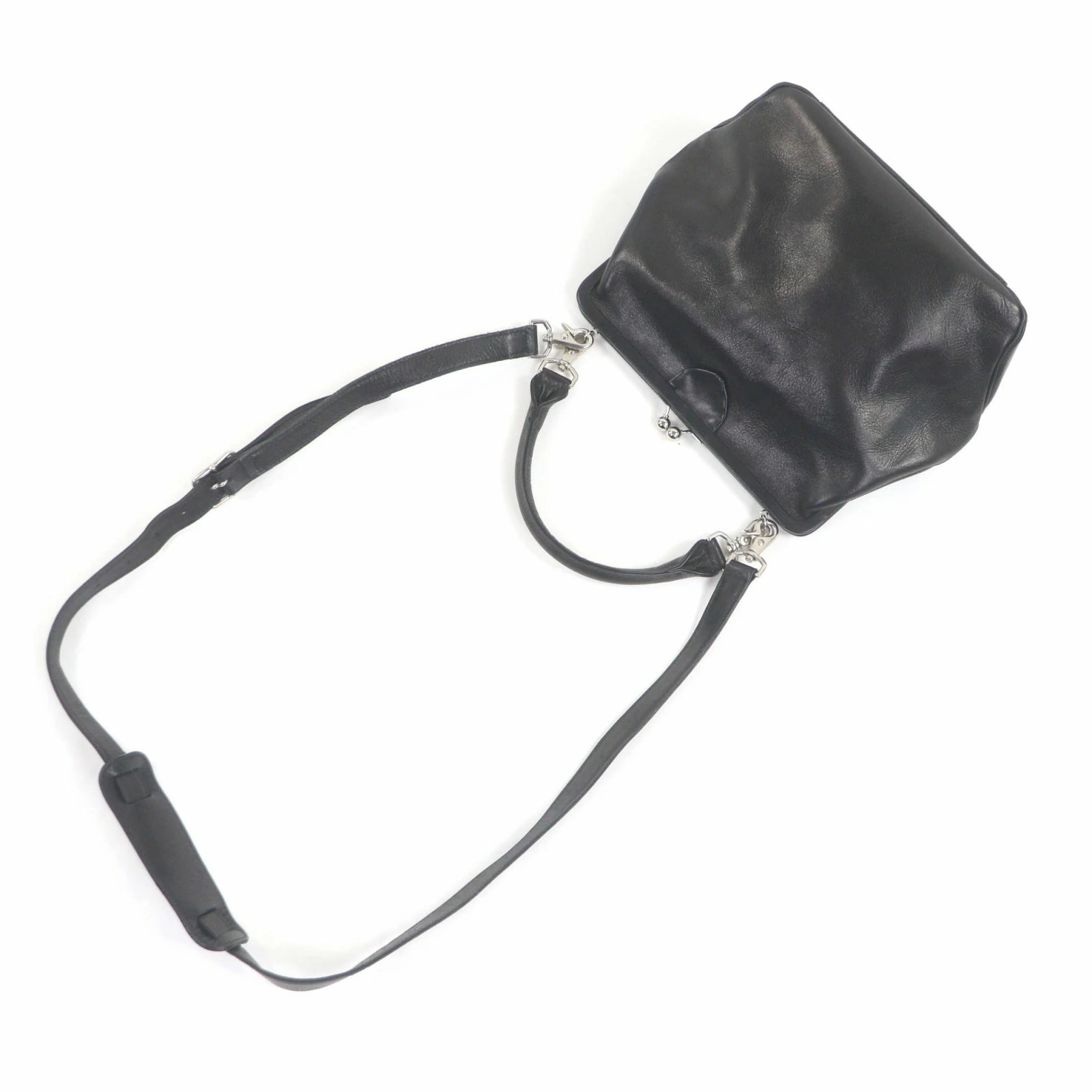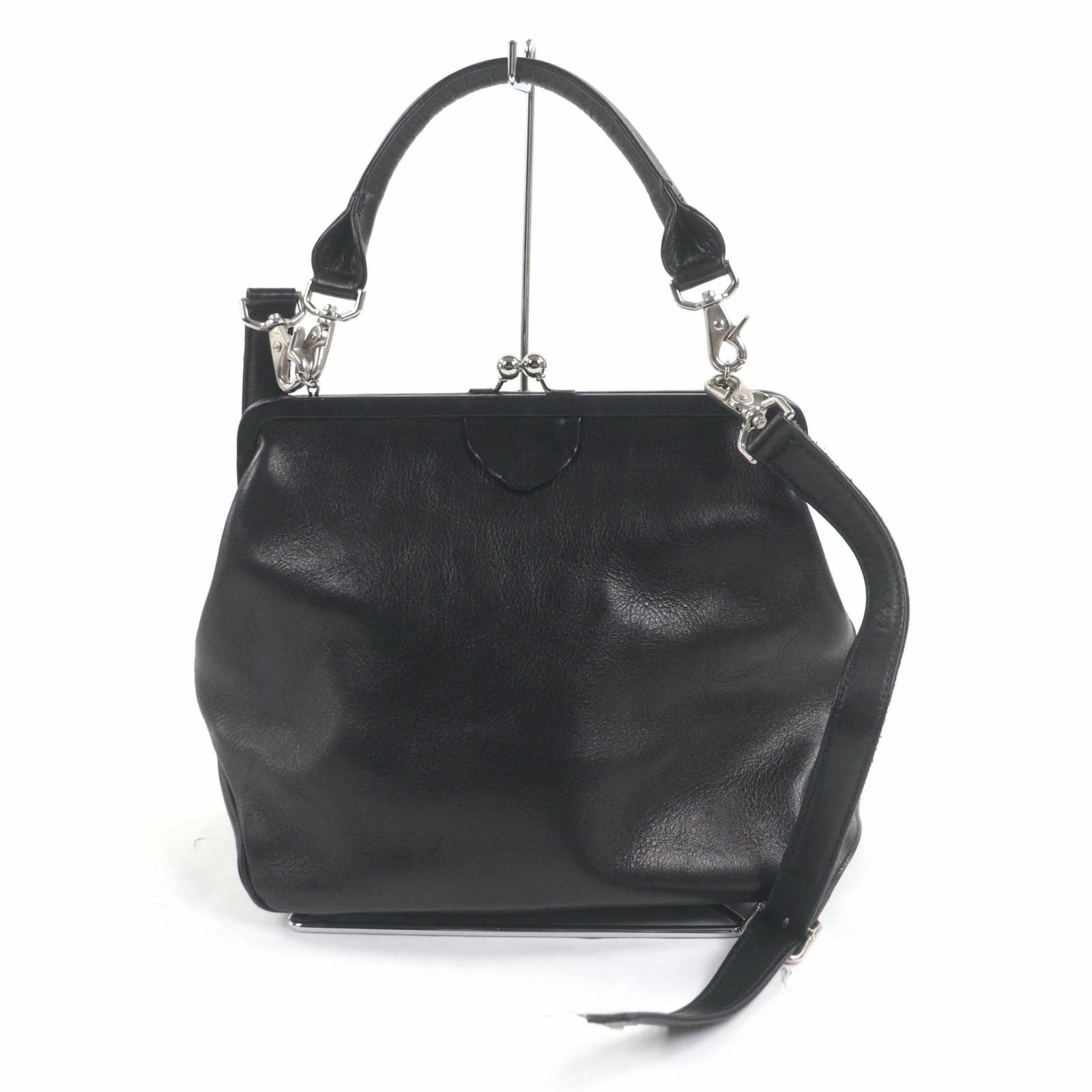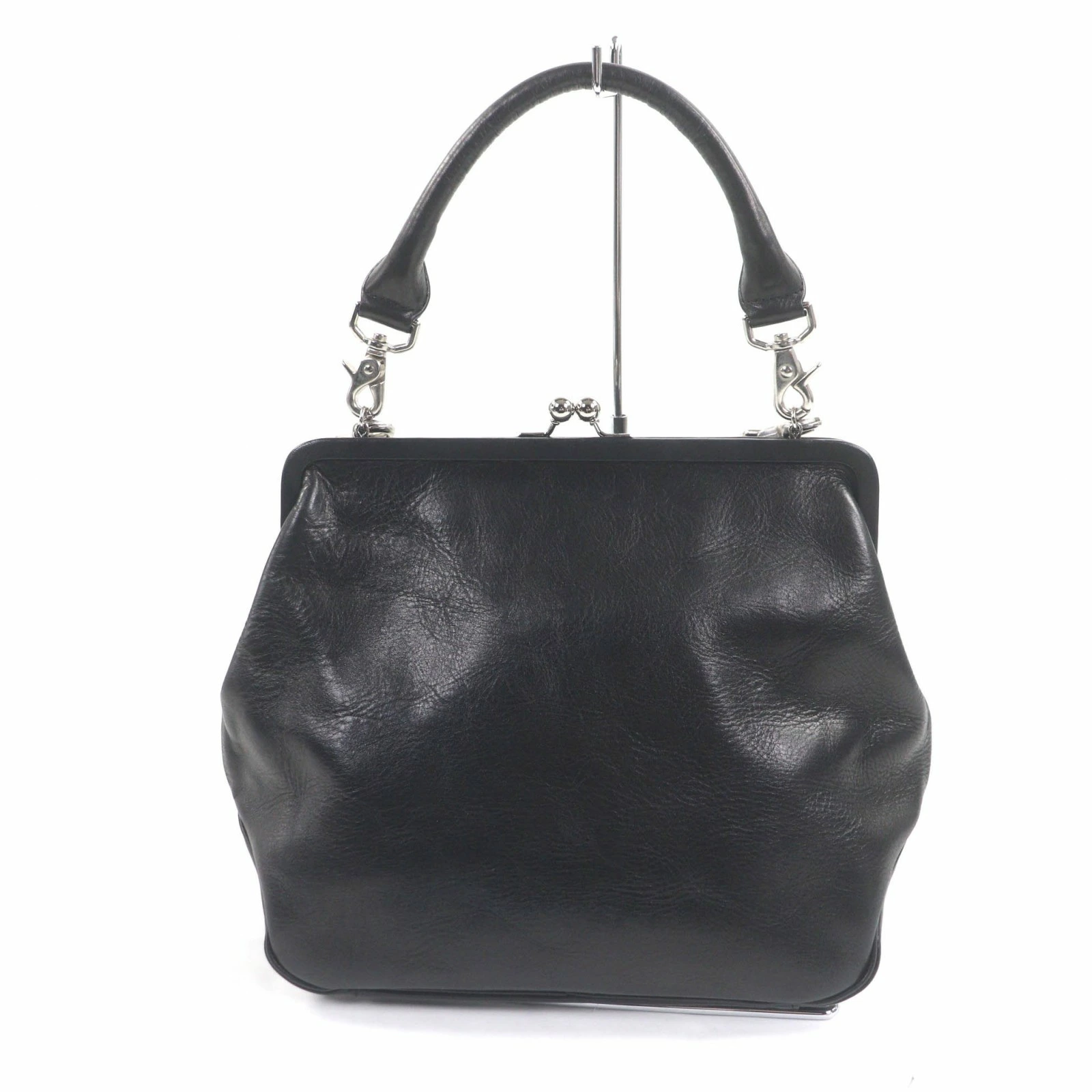 | サイズ (size) | 【実寸】高さ:約22cm 幅:約33cm 奥行:約12cm ハンドル:約36cm ショルダー(最大):約120cm 【仕様】メイン開閉式:ガマ口 メイン収納数:1 内側:オープンポケット2 ファスナーポケット1 | ||||||||||||||||