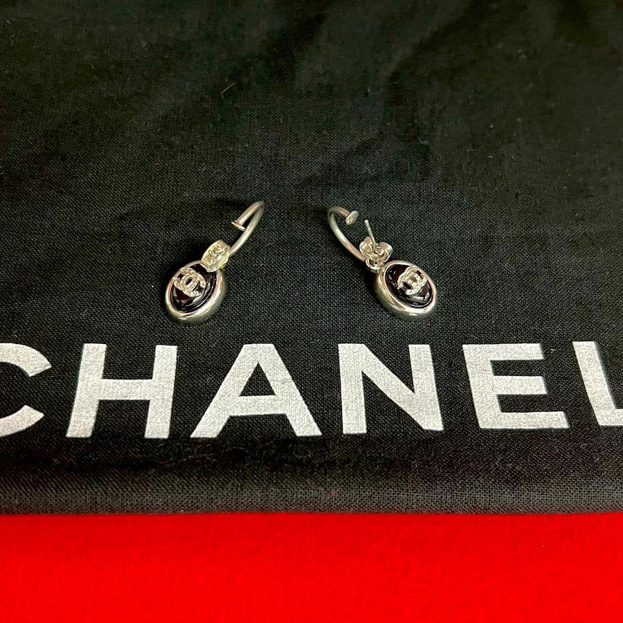 Excellent condition 00A CHANEL Vintage Coco Mark GP Earrings, Women's, Silver and Black, 75139 [Pre-owned]
