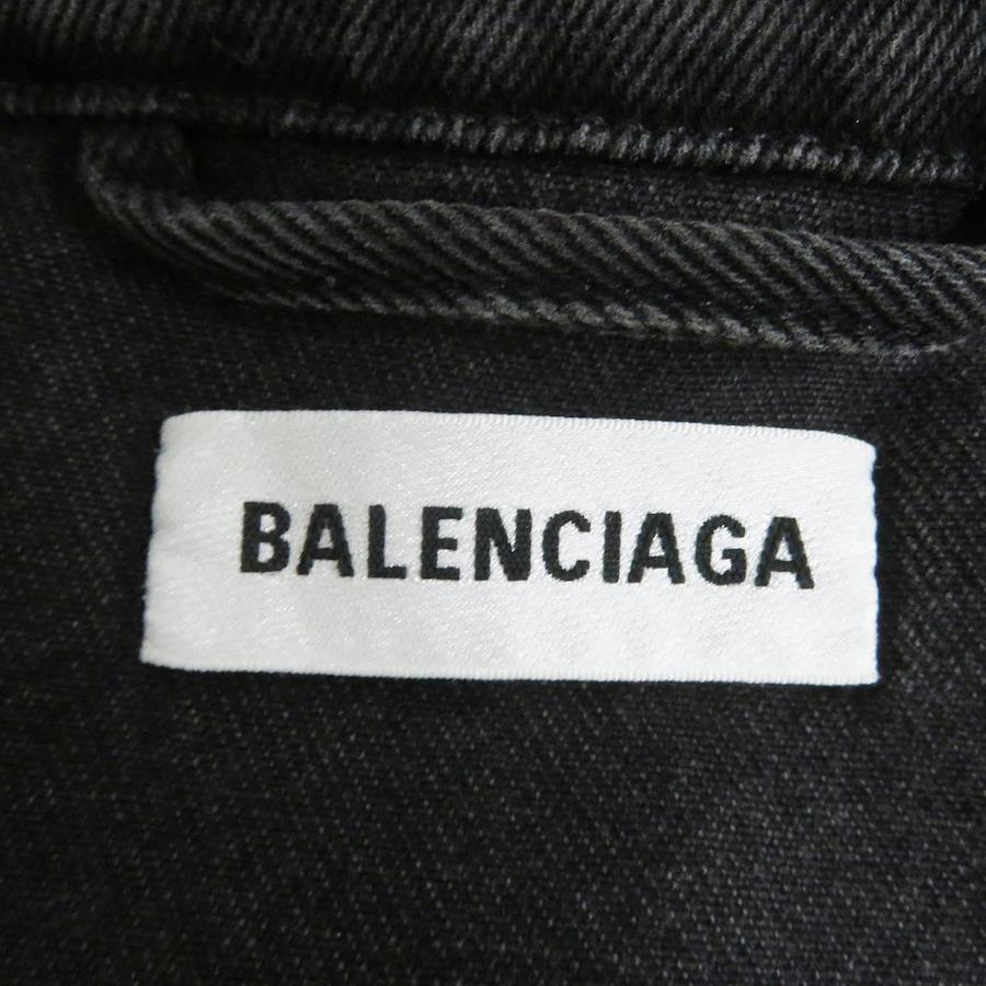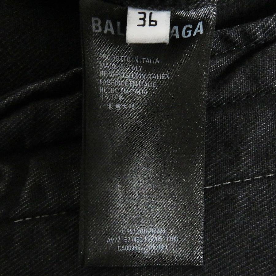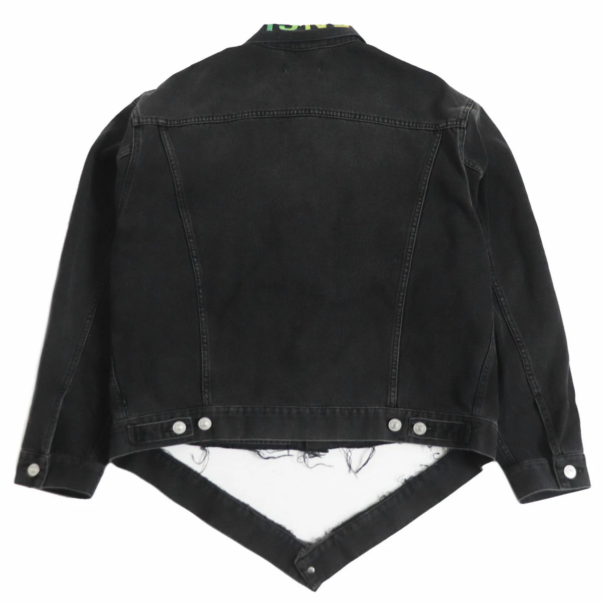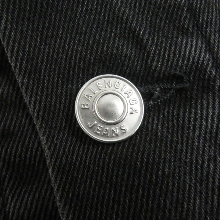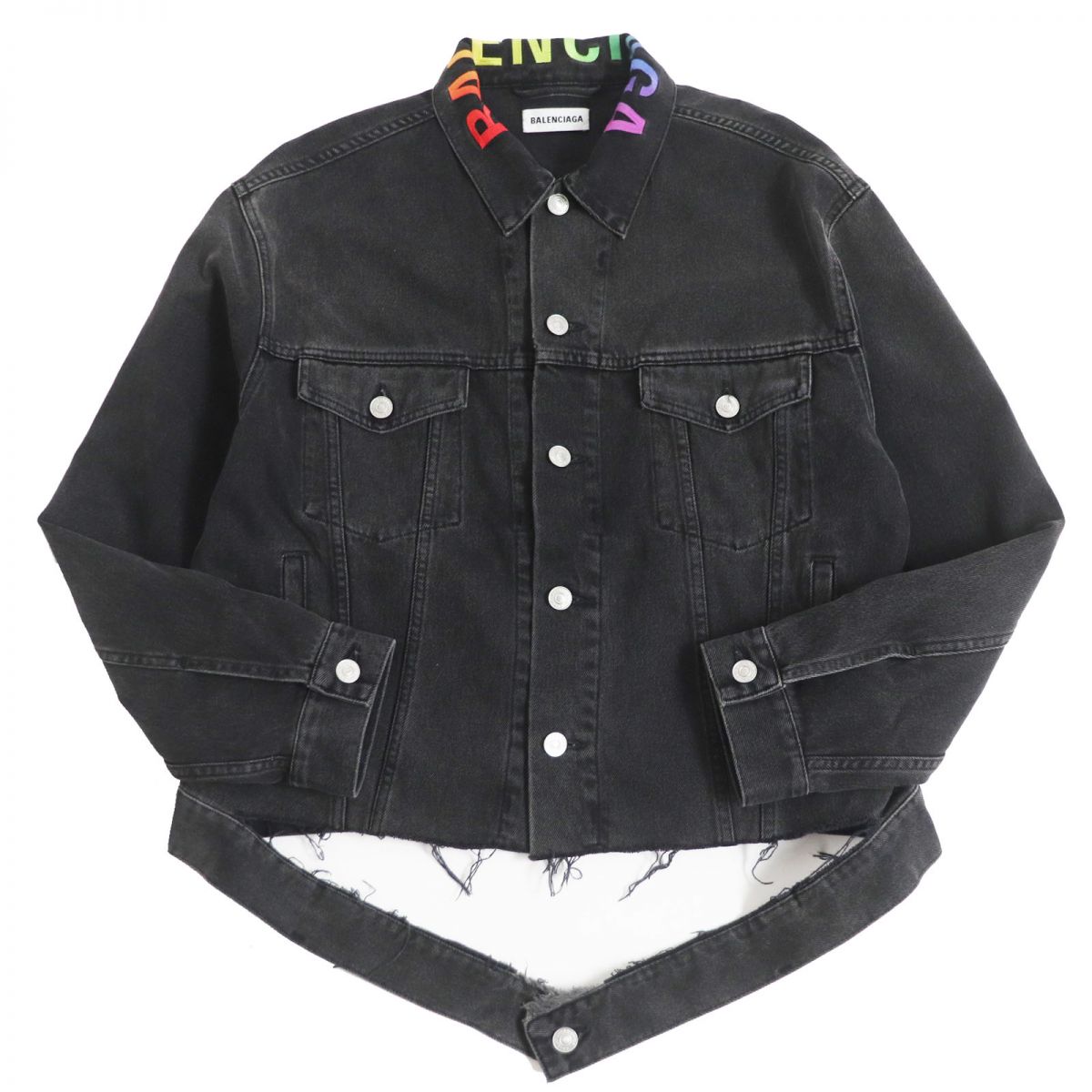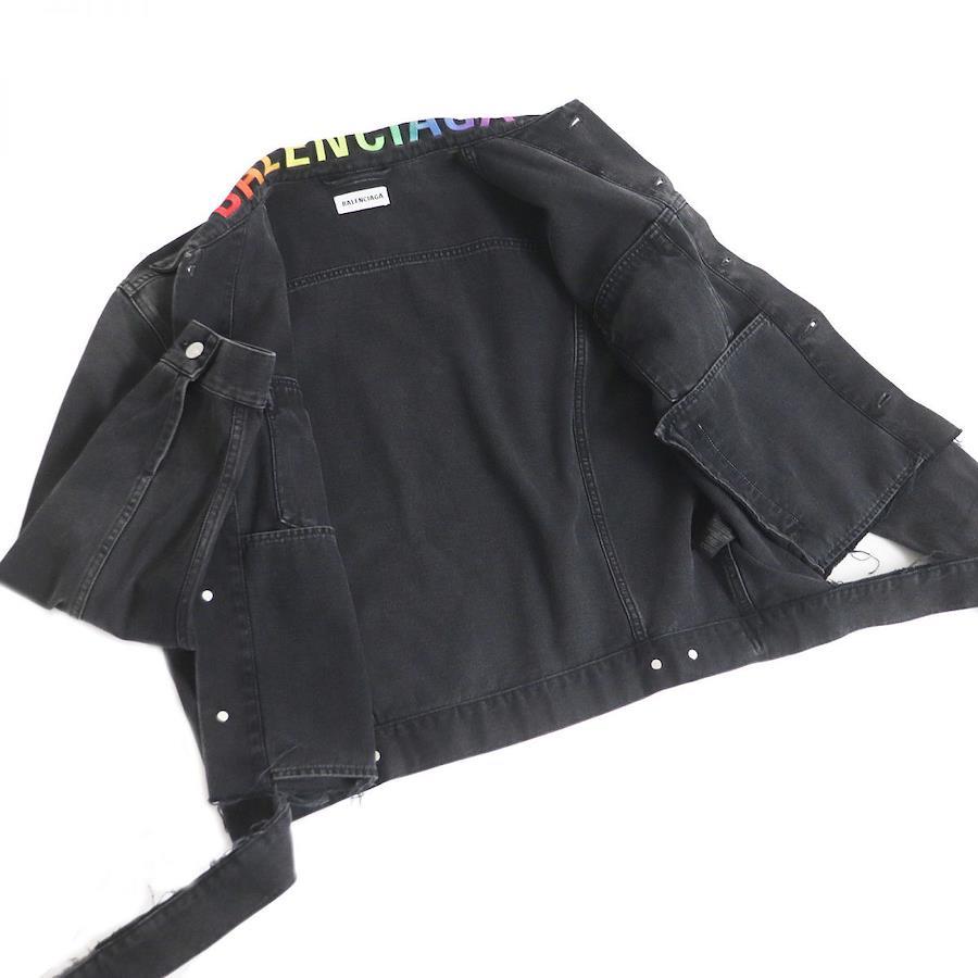 Excellent condition 18AW BALENCIAGA 571450 rainbow logo embroidered denim jacket with logo buttons, cut-off detail, distressed finish, black, size 36, made in Italy, authentic [pre-owned]