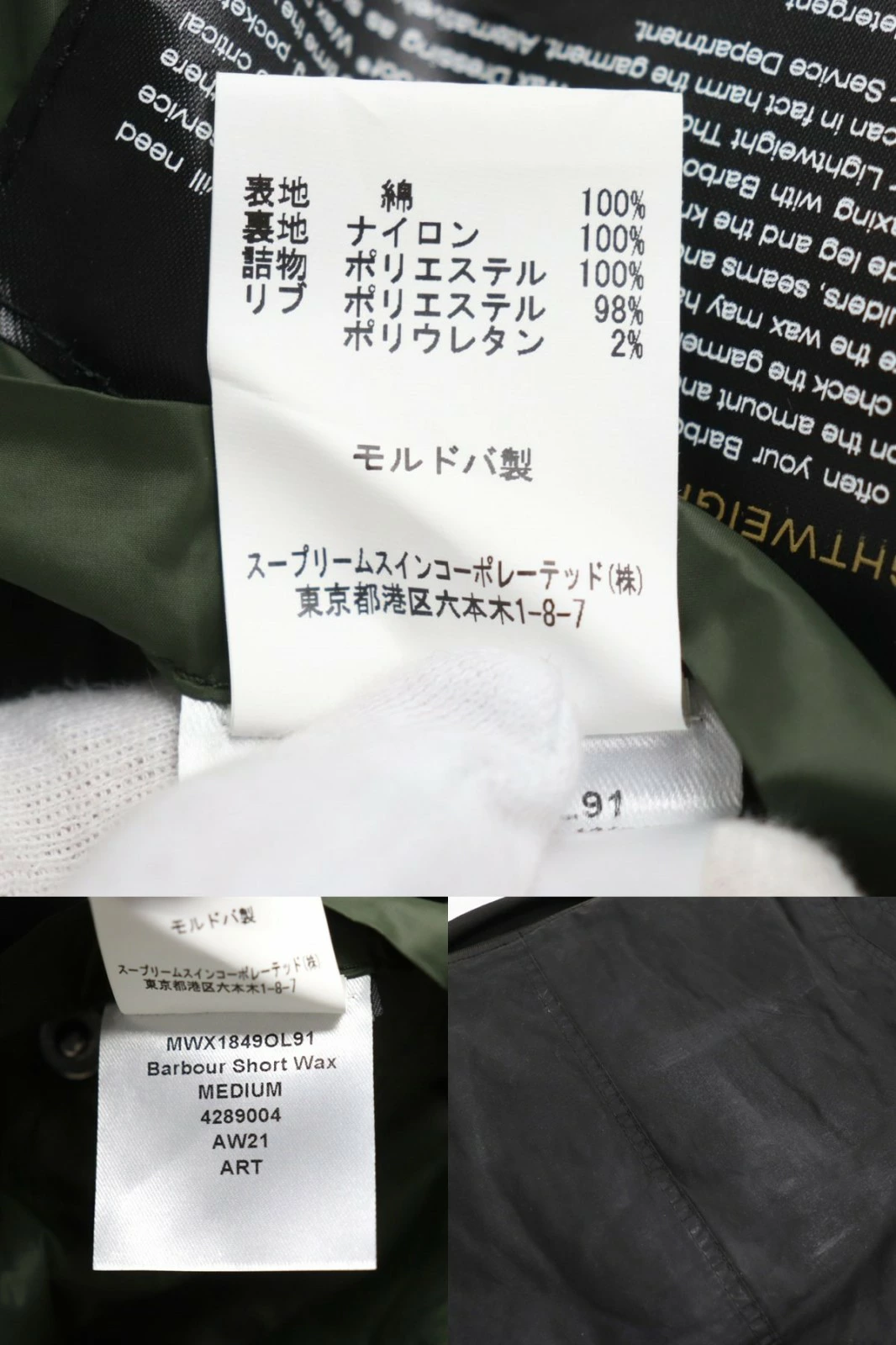 Excellent condition: 2021 AW Barbour Short Wax Gold Standard Thermore padded stand collar W-zip oiled jacket/blouson, khaki, size M. Authentic [Pre-owned]