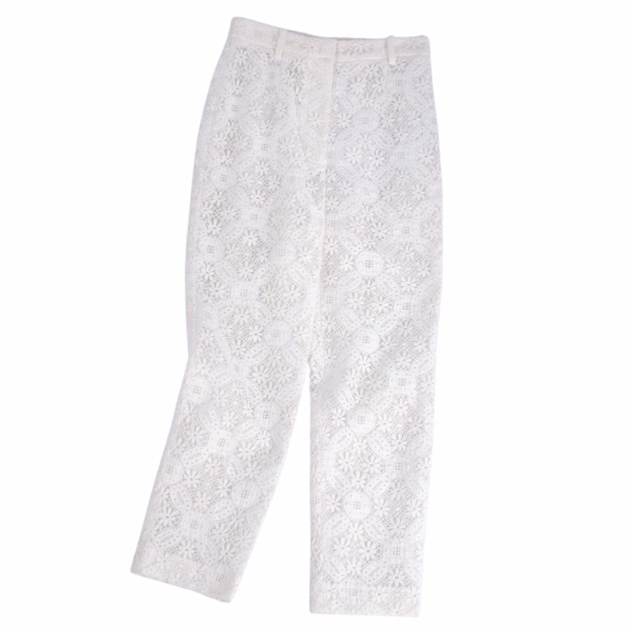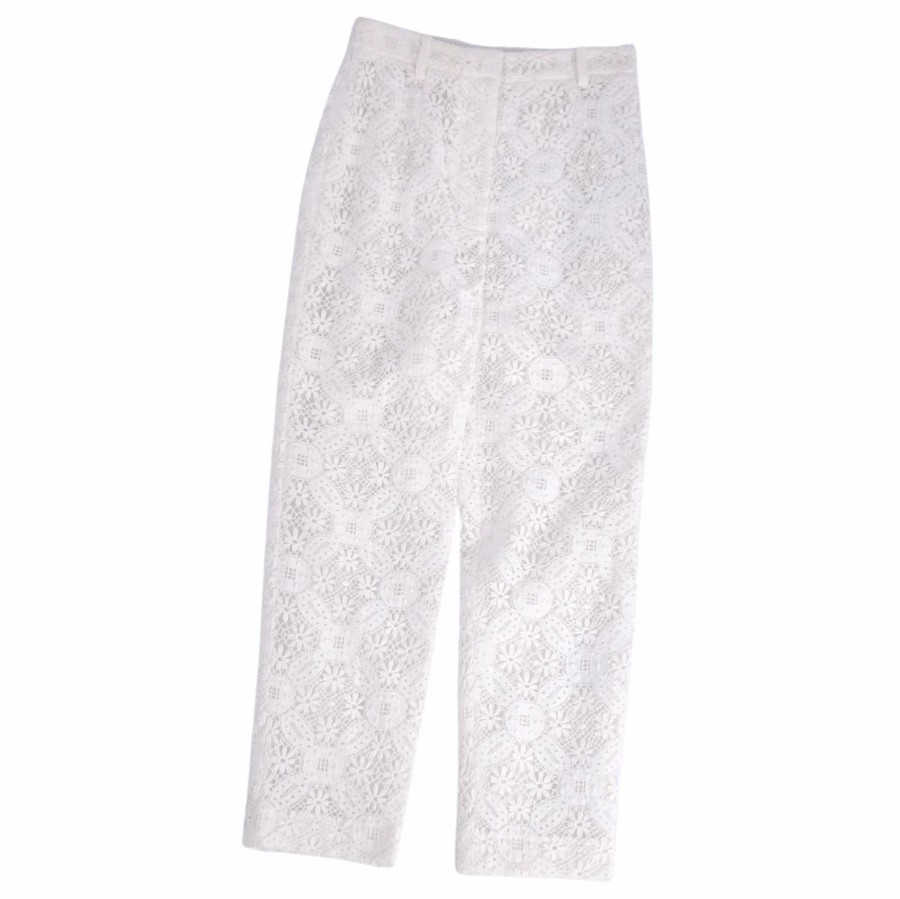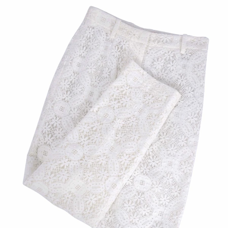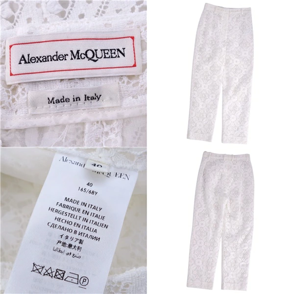 アレキサンダーマックイーン Alexander McQueen パンツ 2019 ロングパンツ 総レース コットン ボトムス レディース イタリア製 ホワイト サイズ40(M相当)