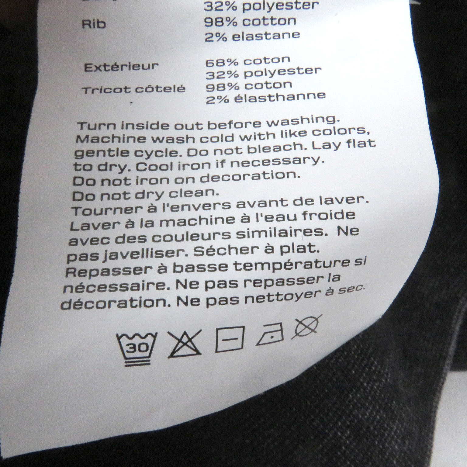 | 素材 (material) | 本体:コットン68% :ポリエステル32% 一部:コットン98% :エラスタン2% | ||||||||||||||||