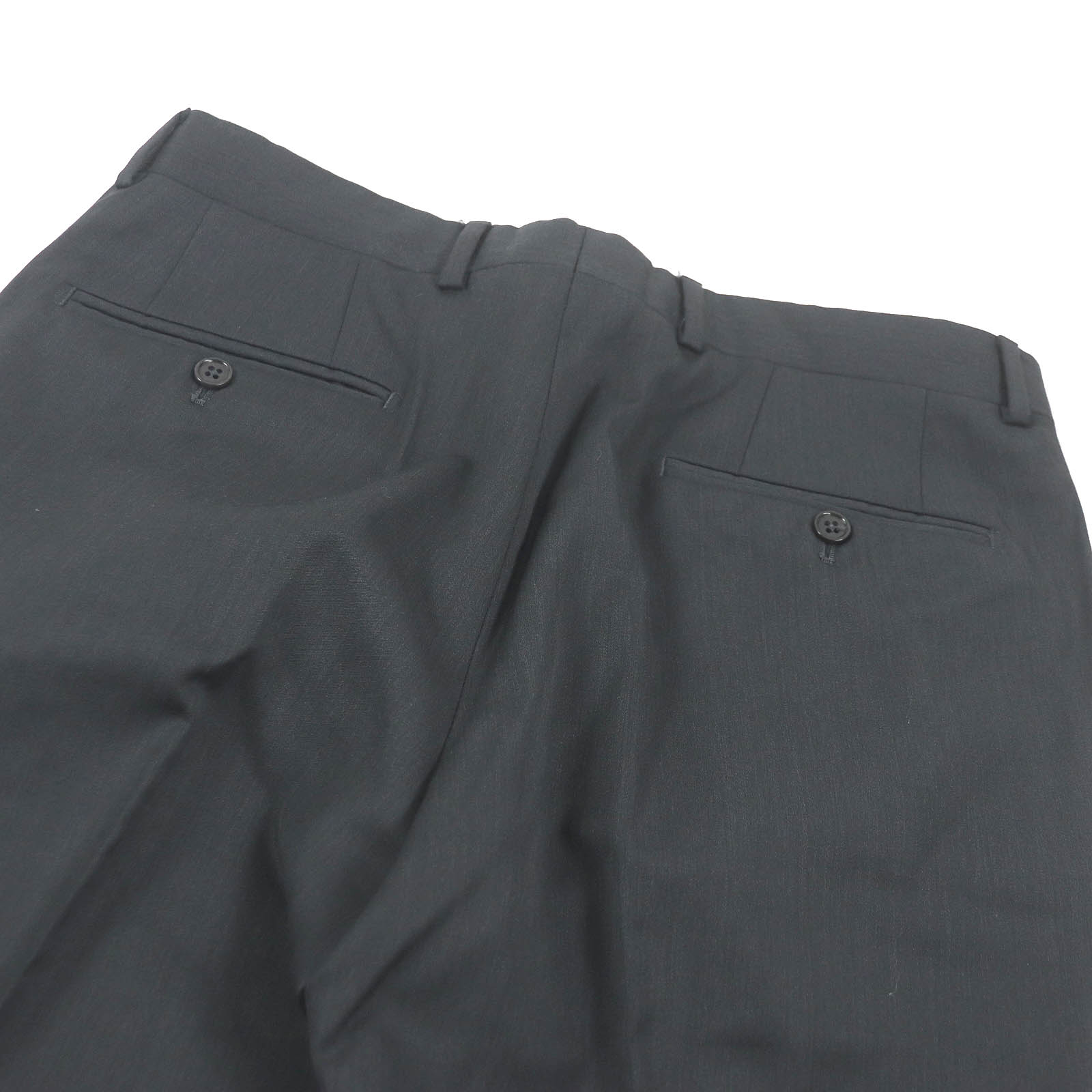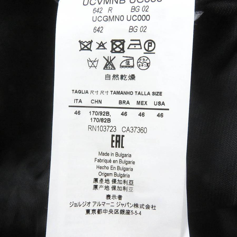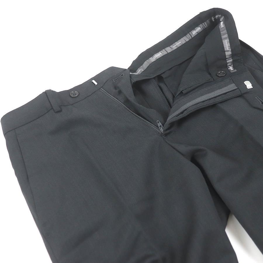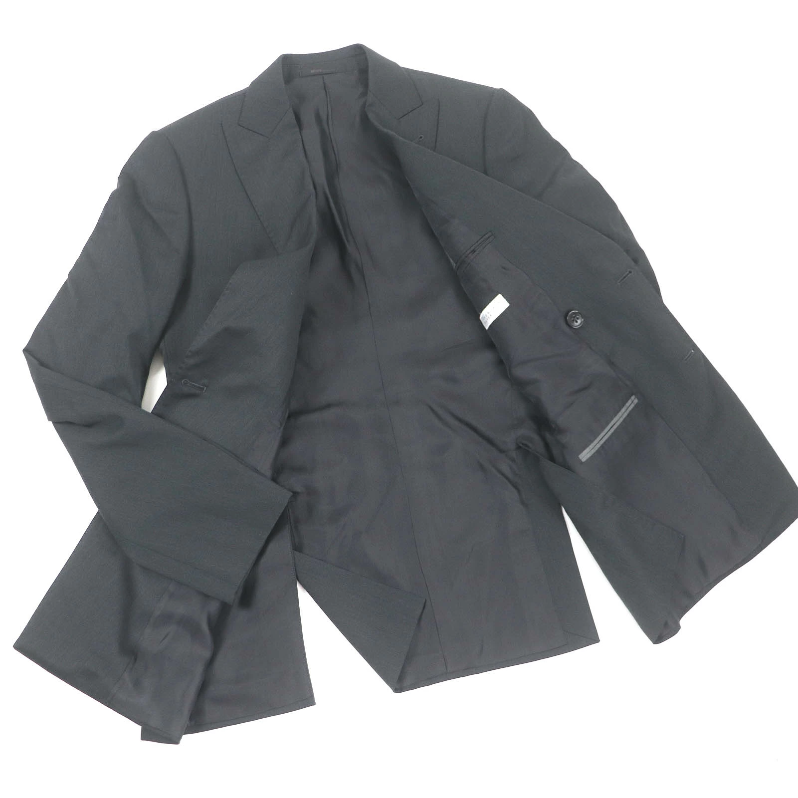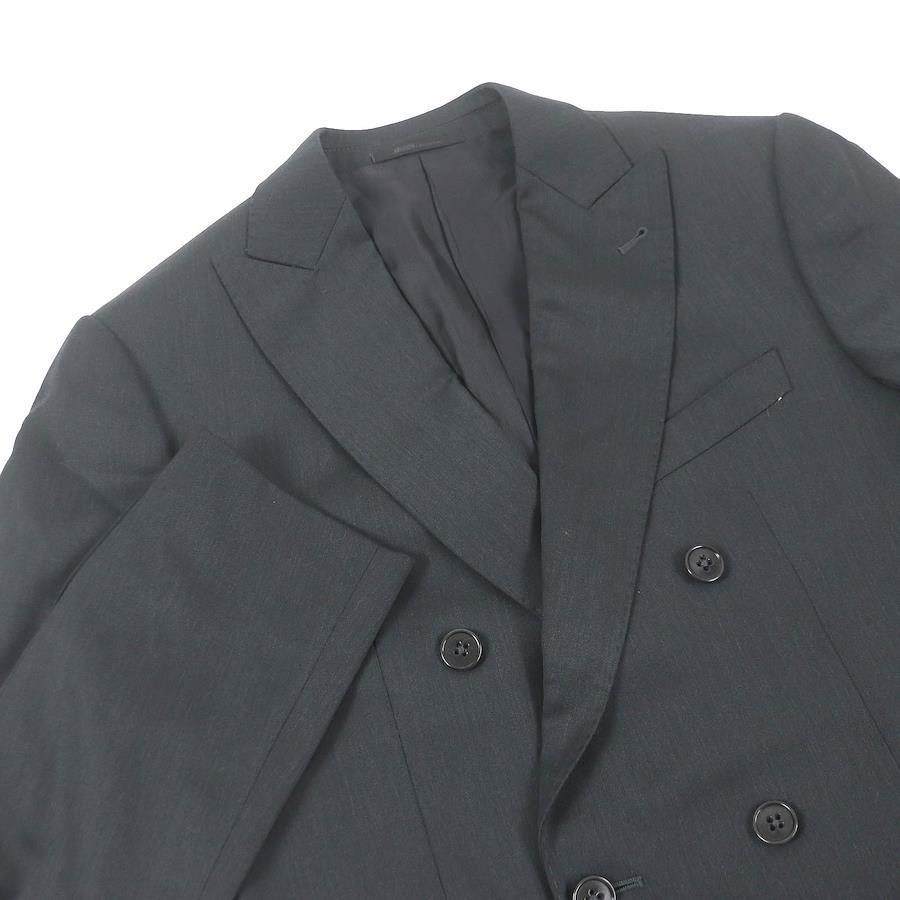 Excellent condition: ARMANI COLLEZIONI M-LINE Super 150s wool peak lapel double-breasted suit, dark gray, size 46, made in Bulgaria. Authentic, pre-owned.