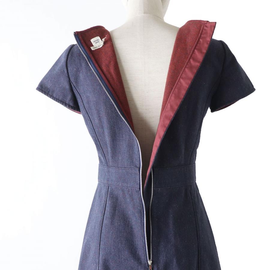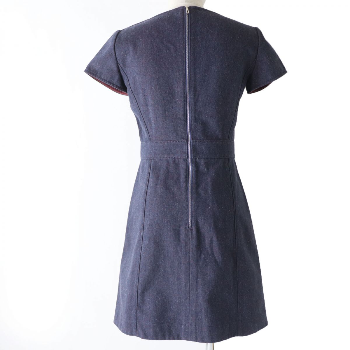 Excellent condition, authentic HERMES charm and leather detailing, knee-length, short-sleeved cotton dress, purple, size 34, women's, made in France [pre-owned]