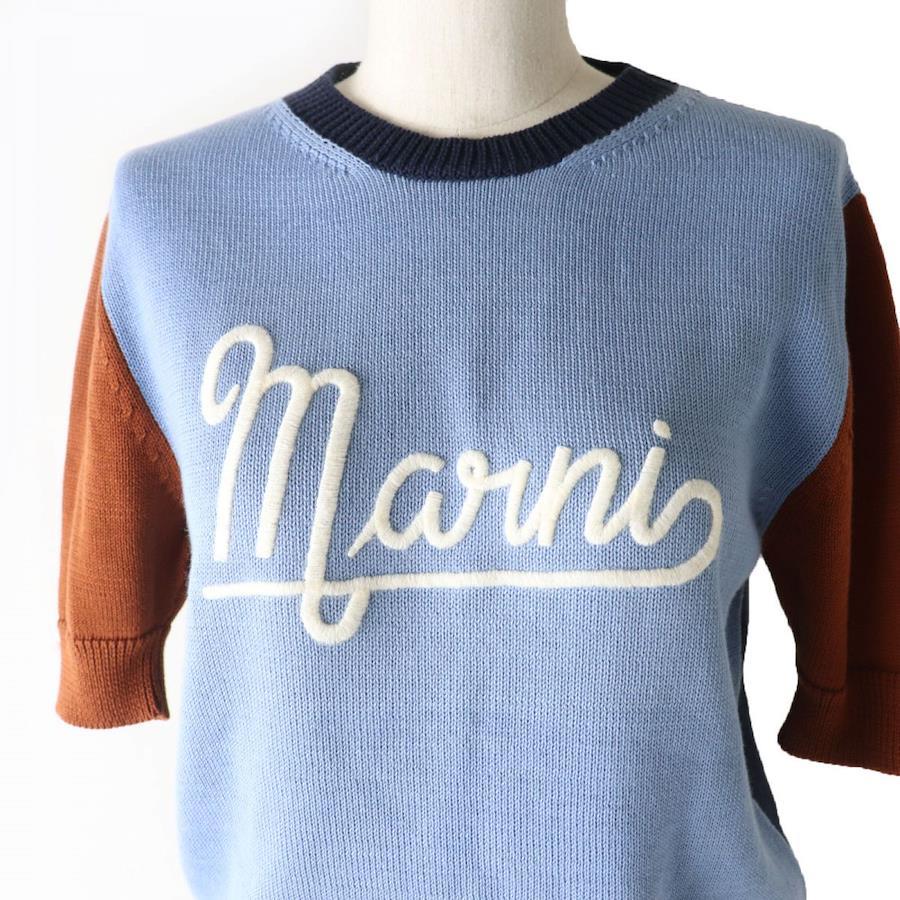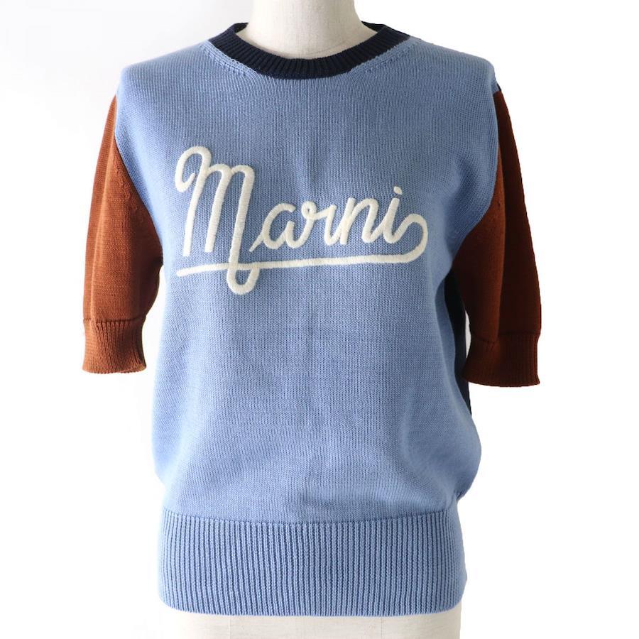 Excellent condition, authentic MARNI 22SS GCMD0318EQ logo-embroidered short-sleeved knit top, multicolor, size 42, made in Italy [pre-owned]