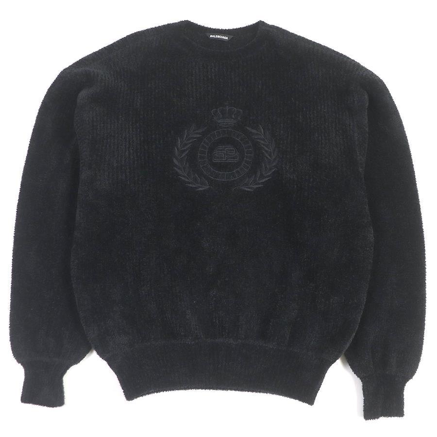 Excellent condition BALENCIAGA 2020 651106 BB emblem logo embroidered brushed pile knit sweatshirt, black, size S, made in Italy, authentic, men's [pre-owned]