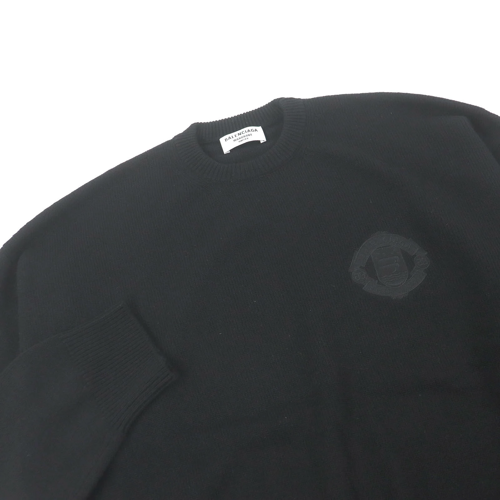 Excellent condition BALENCIAGA 2021 675352 100% cashmere WARDROBE UNISEX knit sweater with sporty logo embroidery, black, size XS, authentic, made in Italy, men's [pre-owned]