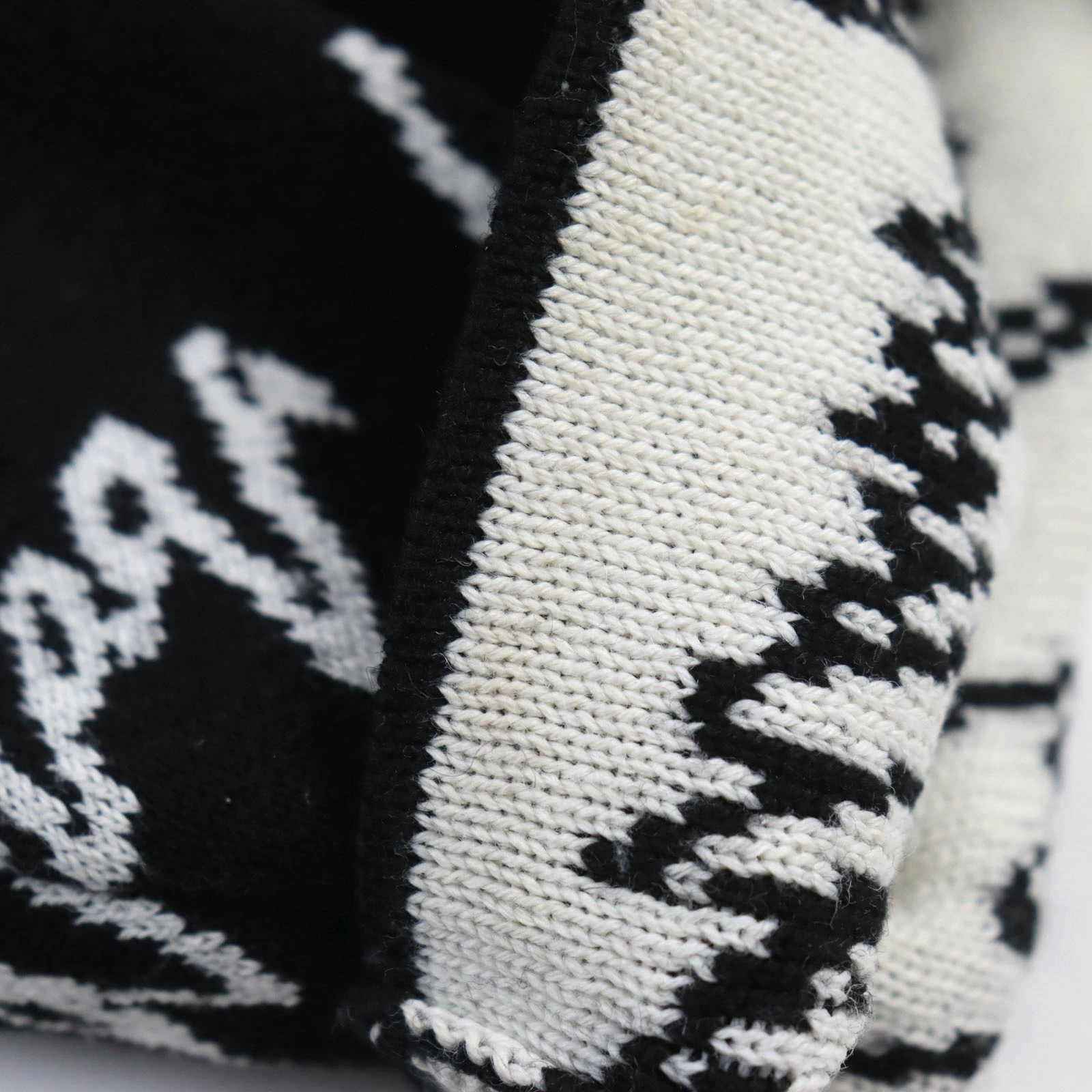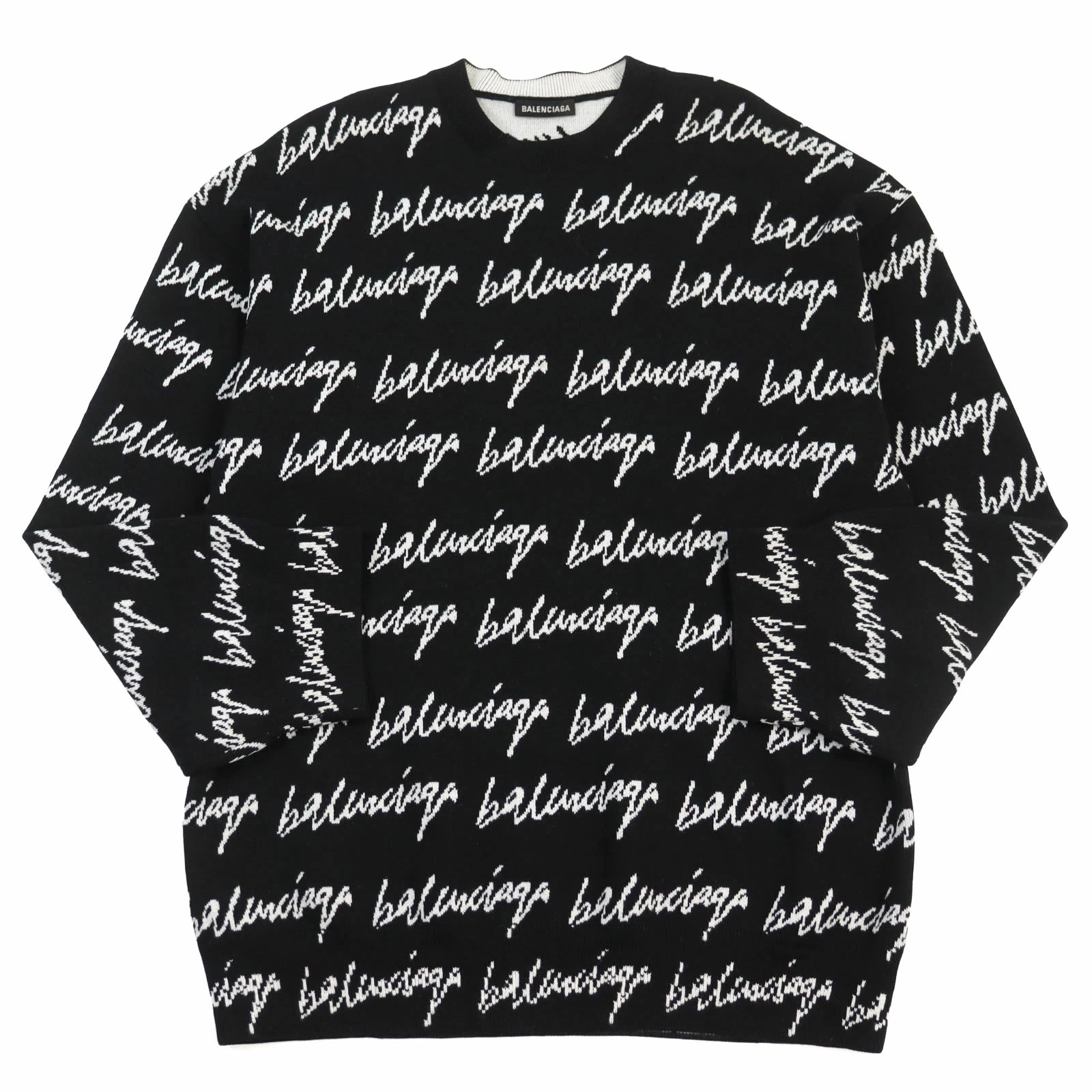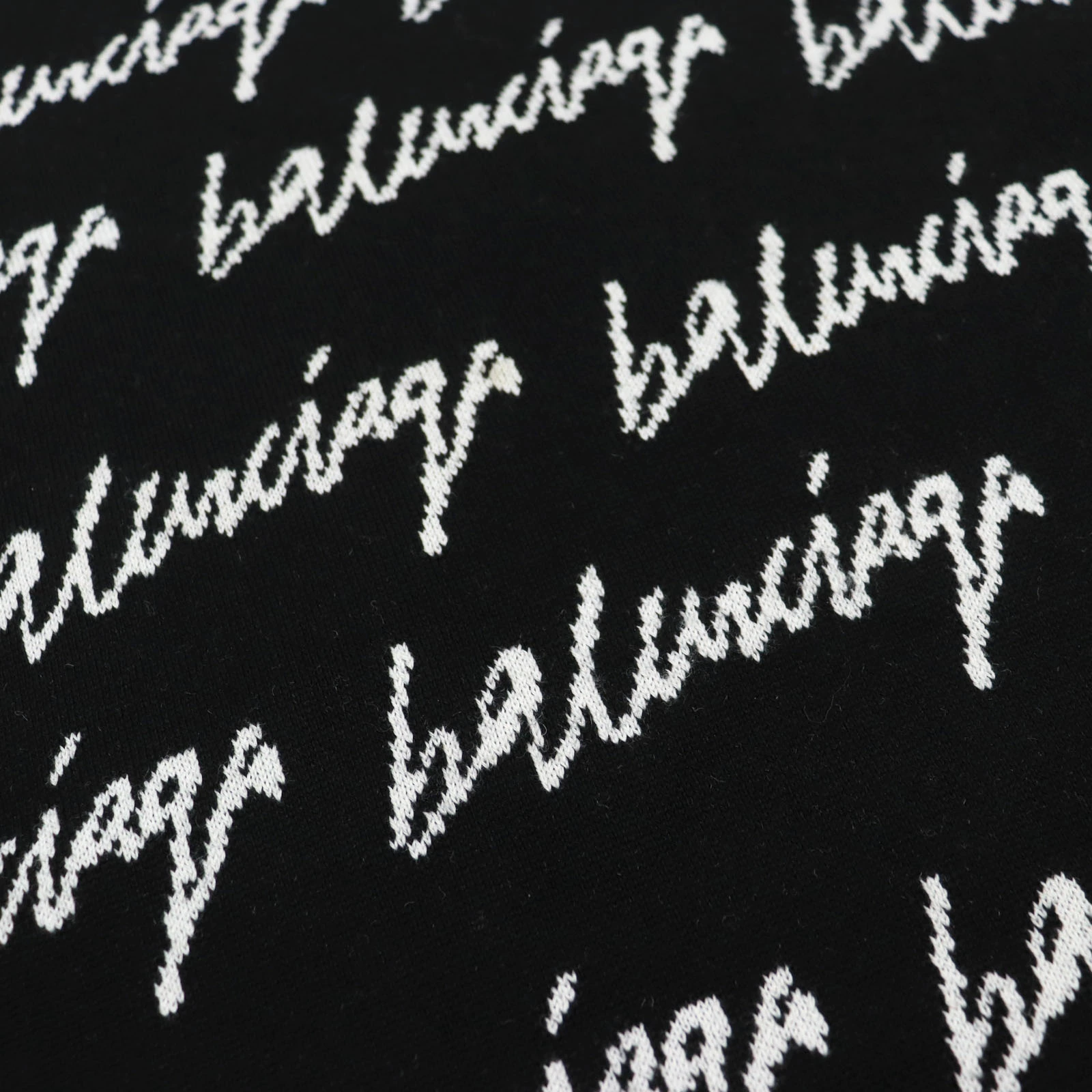 Excellent condition BALENCIAGA 20AW 625984 T3184 All-Over Logo Oversized Scribble Crew Neck Jacquard Knit Sweater, Black/White, Size S, Made in Italy, Authentic, Men's [Pre-owned]