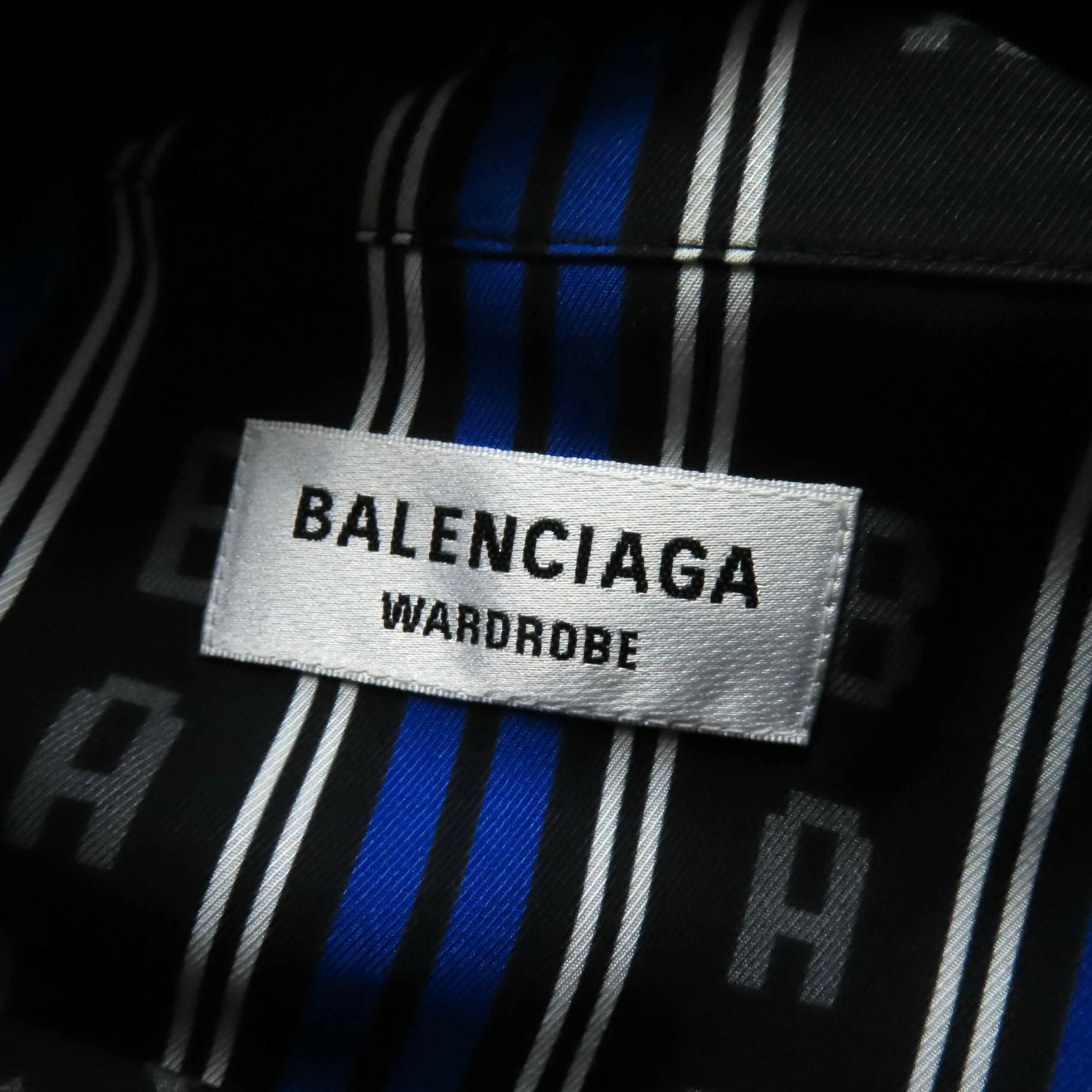 Excellent condition BALENCIAGA 20SS 658956 logo buttoned striped logo oversized long sleeve shirt, multicolor, size 34, authentic, unisex [pre-owned]