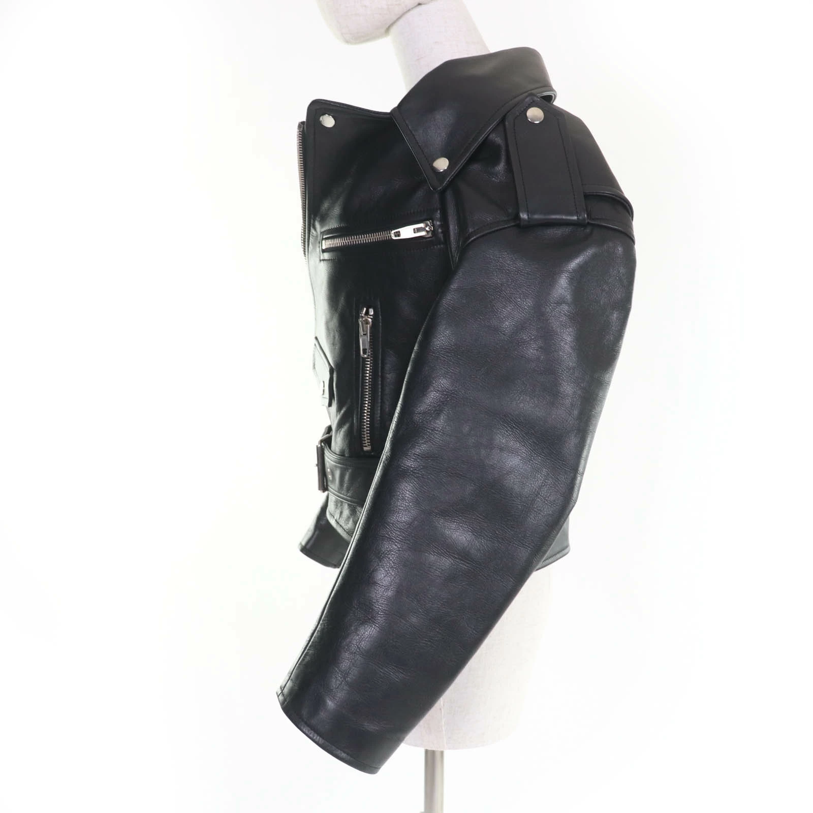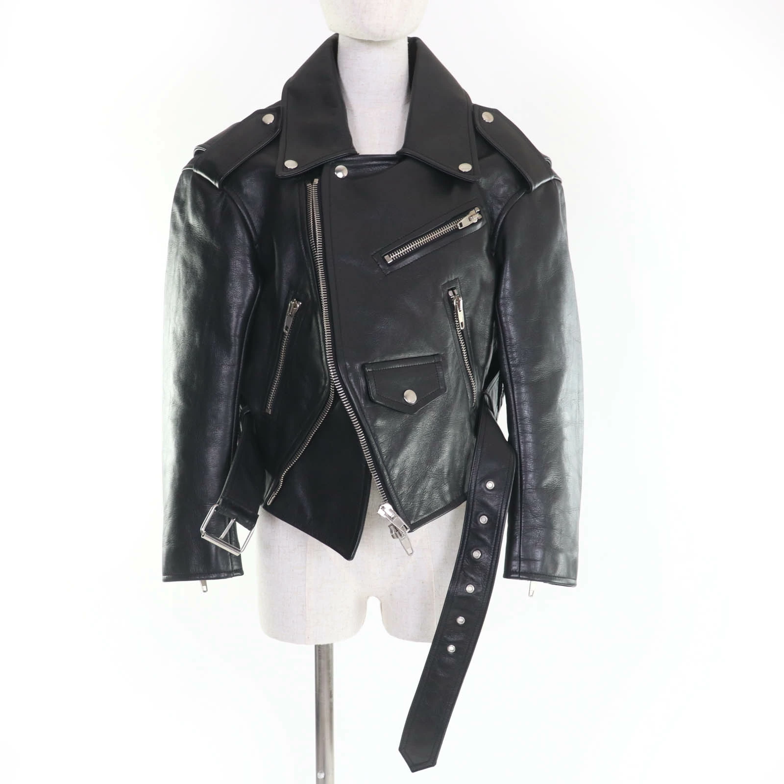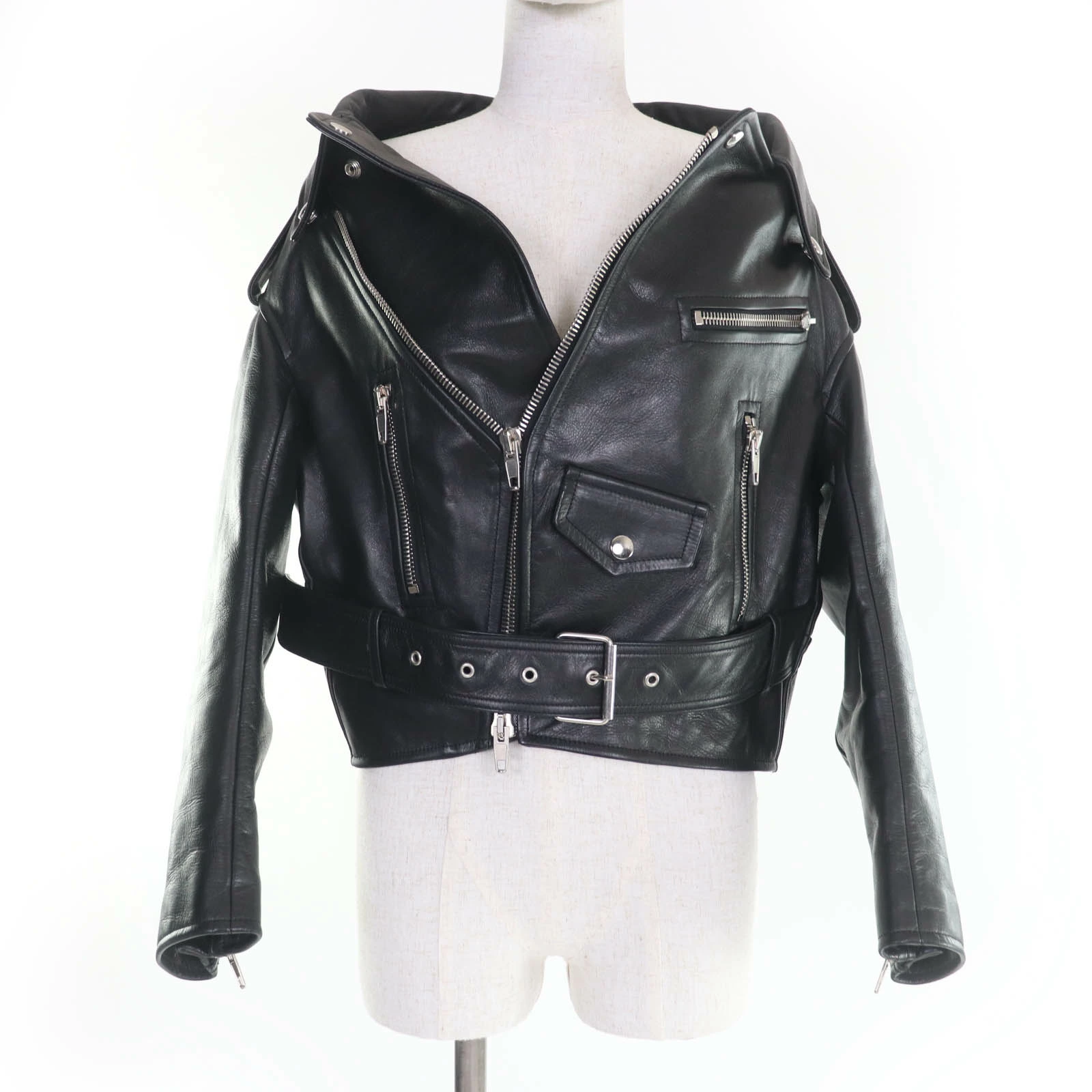 Excellent condition BALENCIAGA 446474 swing top leather biker jacket, black, size 34, authentic, women's [pre-owned]